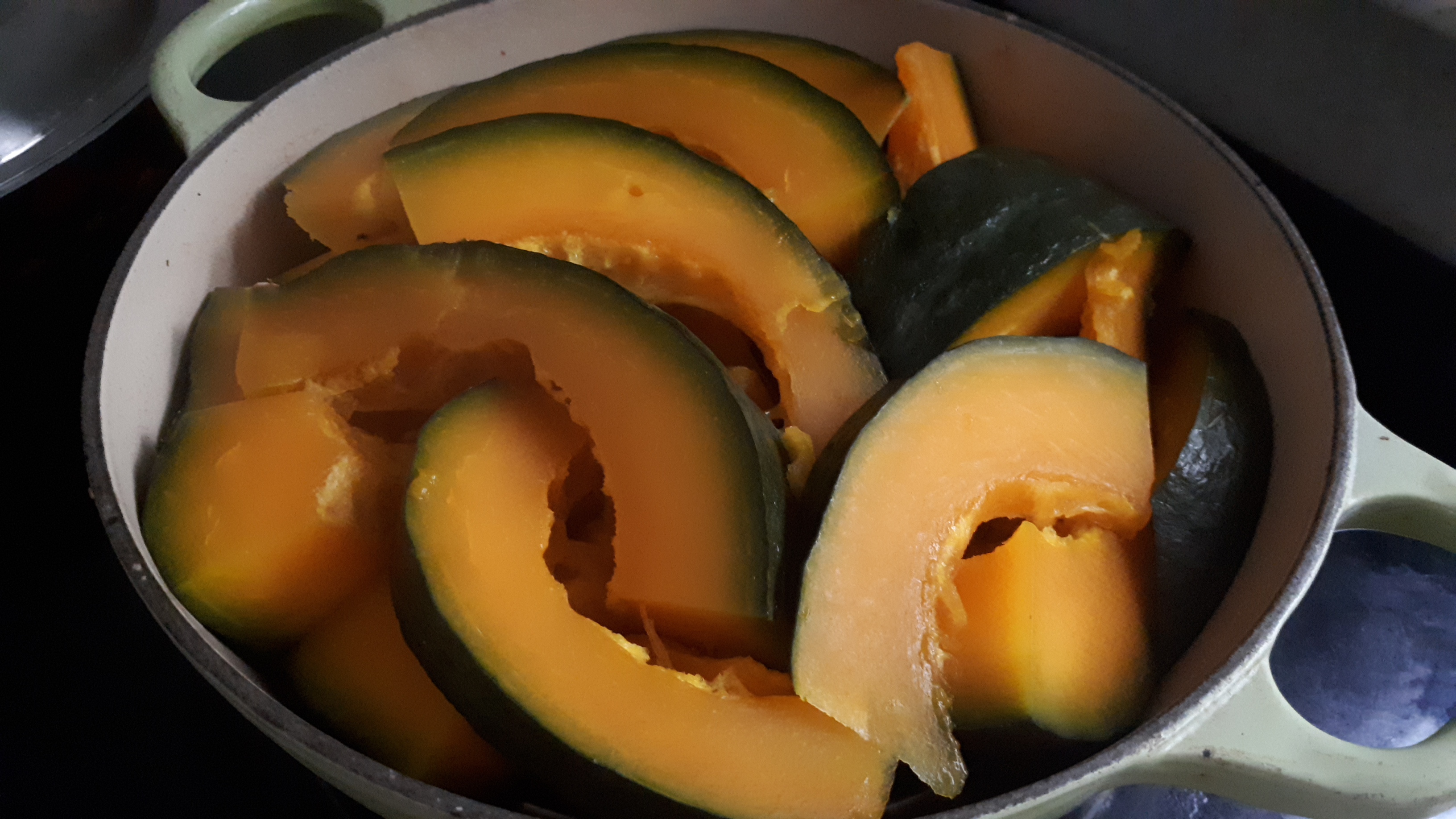 찜판을 안치고 절반의 단호박을 18쪽으로