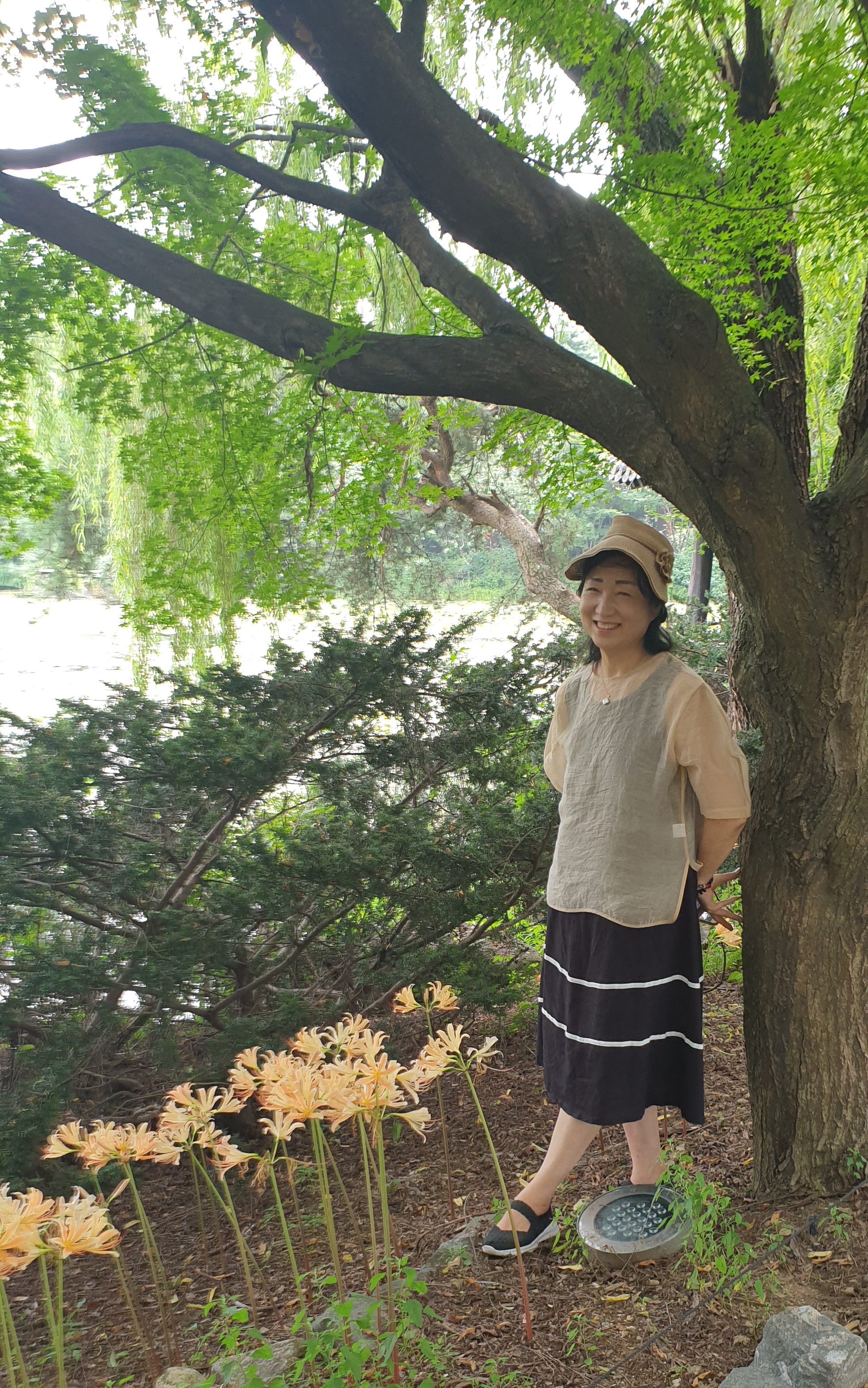 속에 생각지도 못하던 상아빛 상사화 핀 풍경~