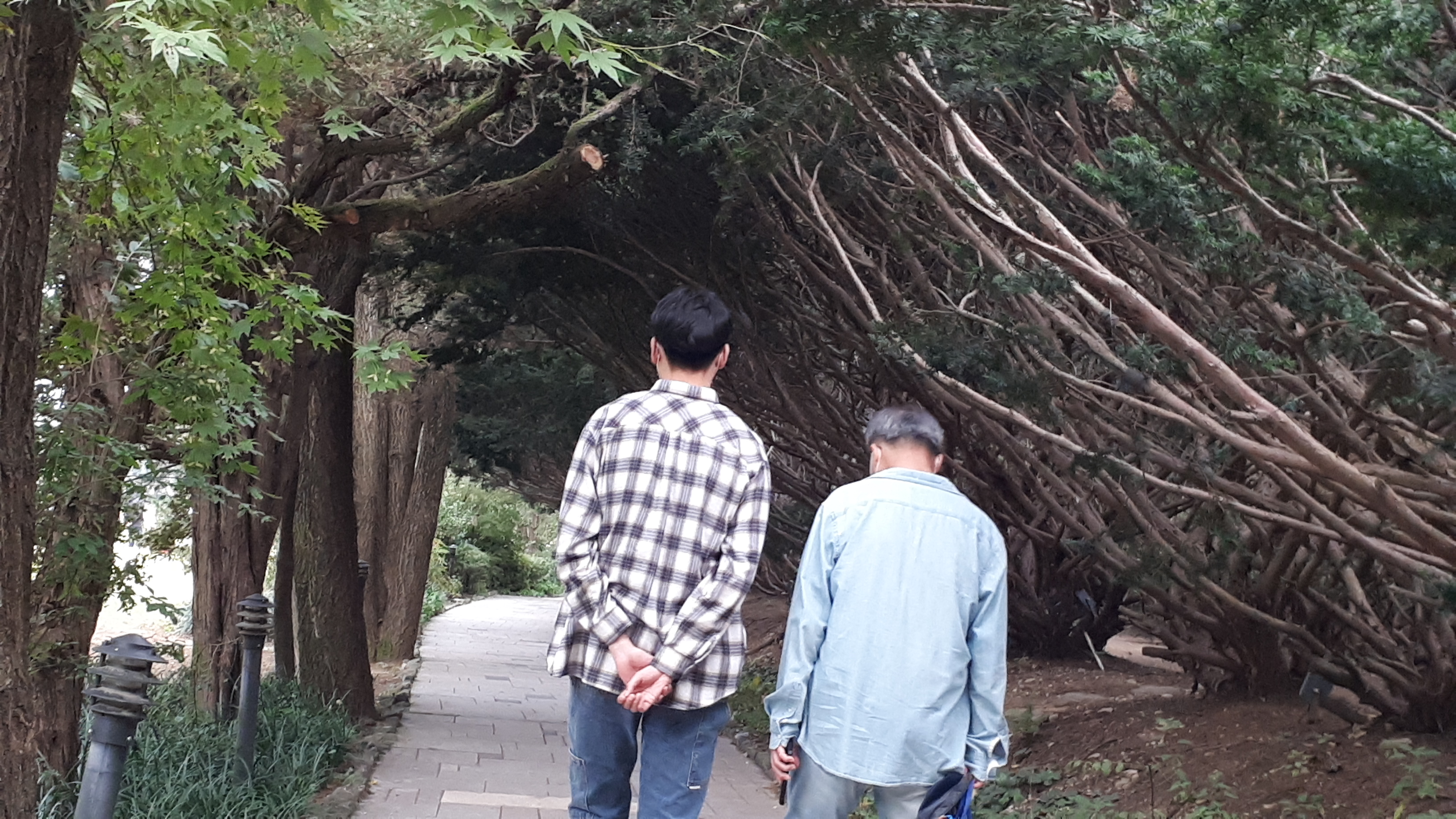 듬직한 아들들과 나란히 걷는 남편의 모습은