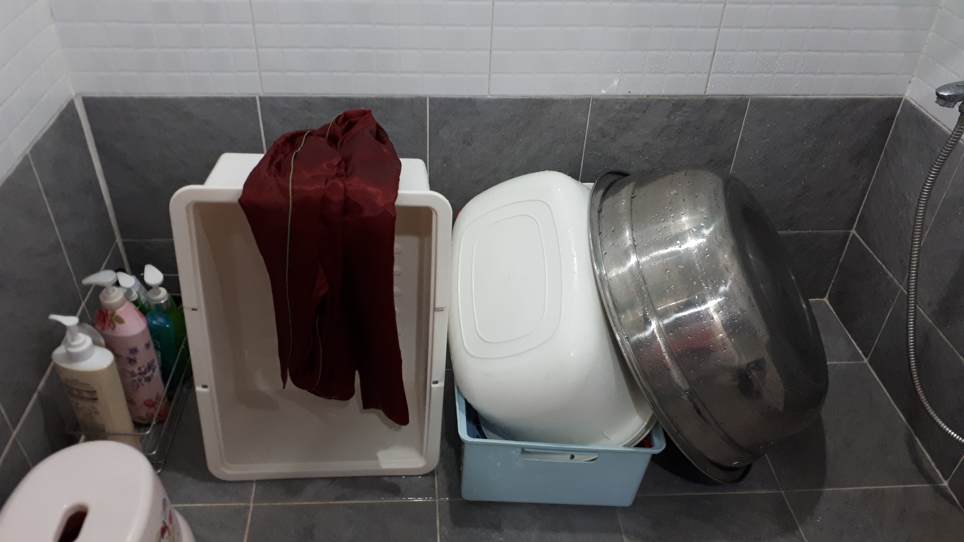 절인 배추를 씻을땐 2 통에 물을 받아 놓고
