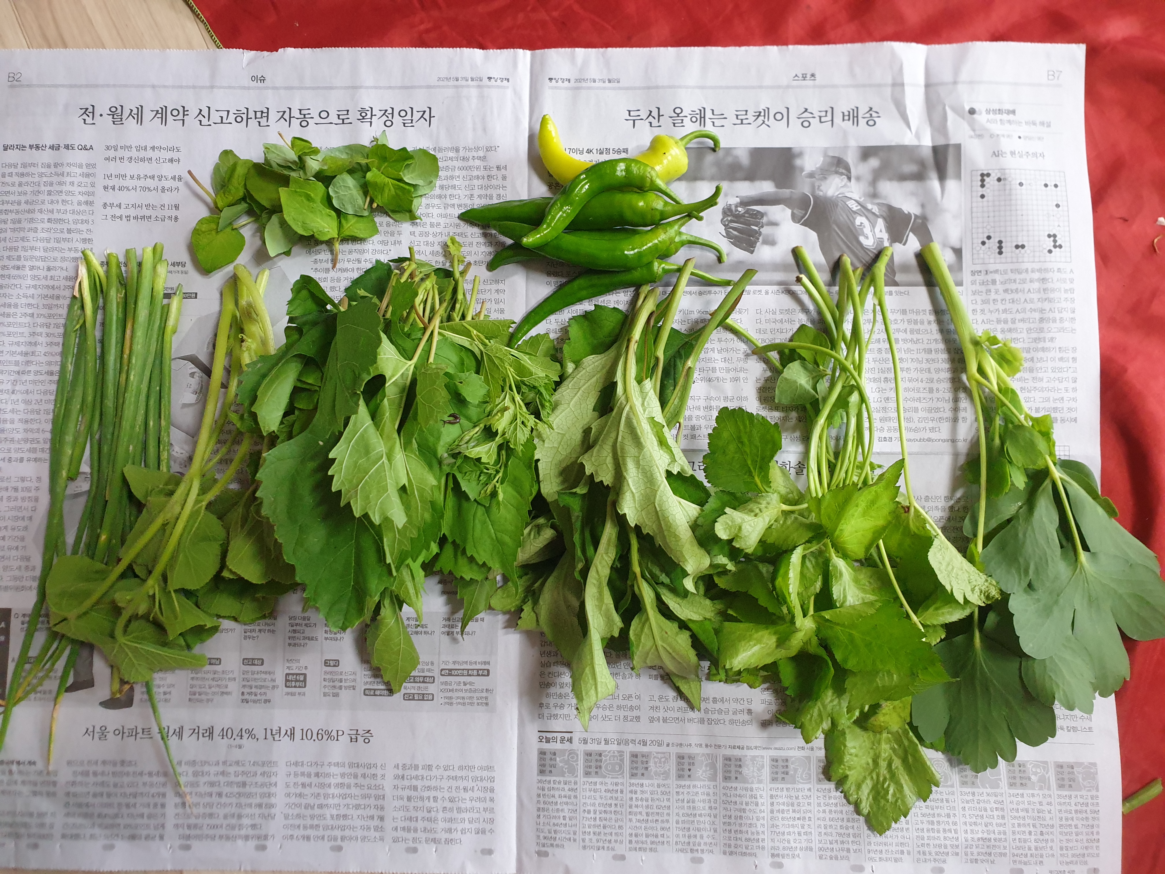 야채 몇가지와 호박순은 아욱처럼 된장국 끓여 드시라
