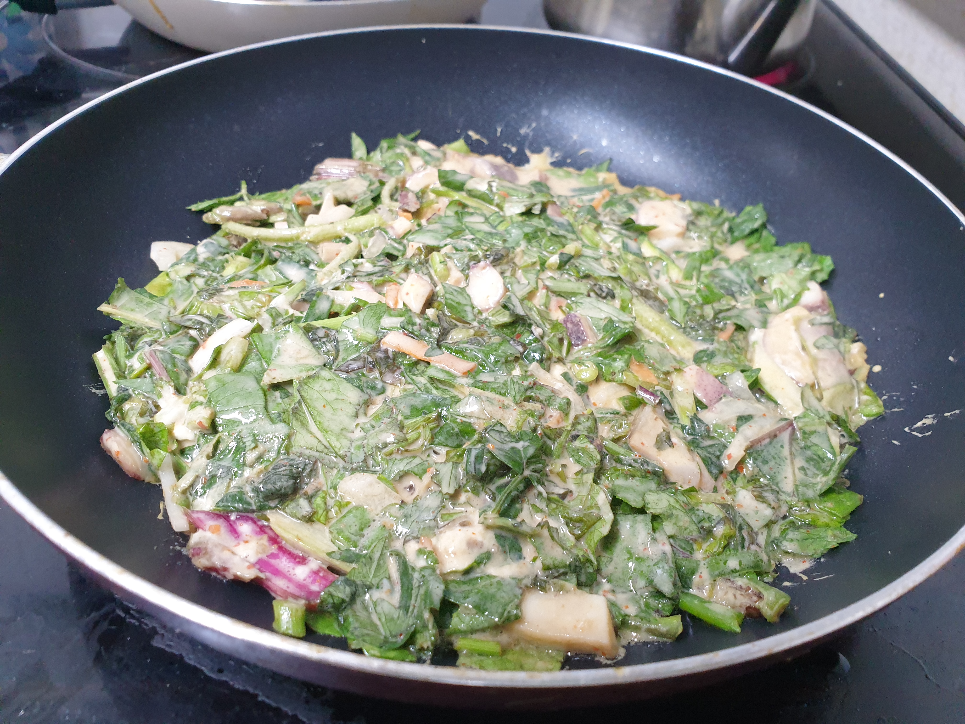 풀떼기 천지니 계란 2알에 맛난 깍뚜기 다 집어 먹고 남은