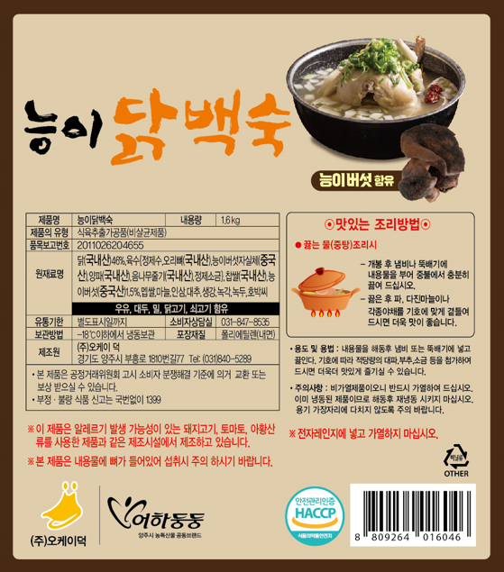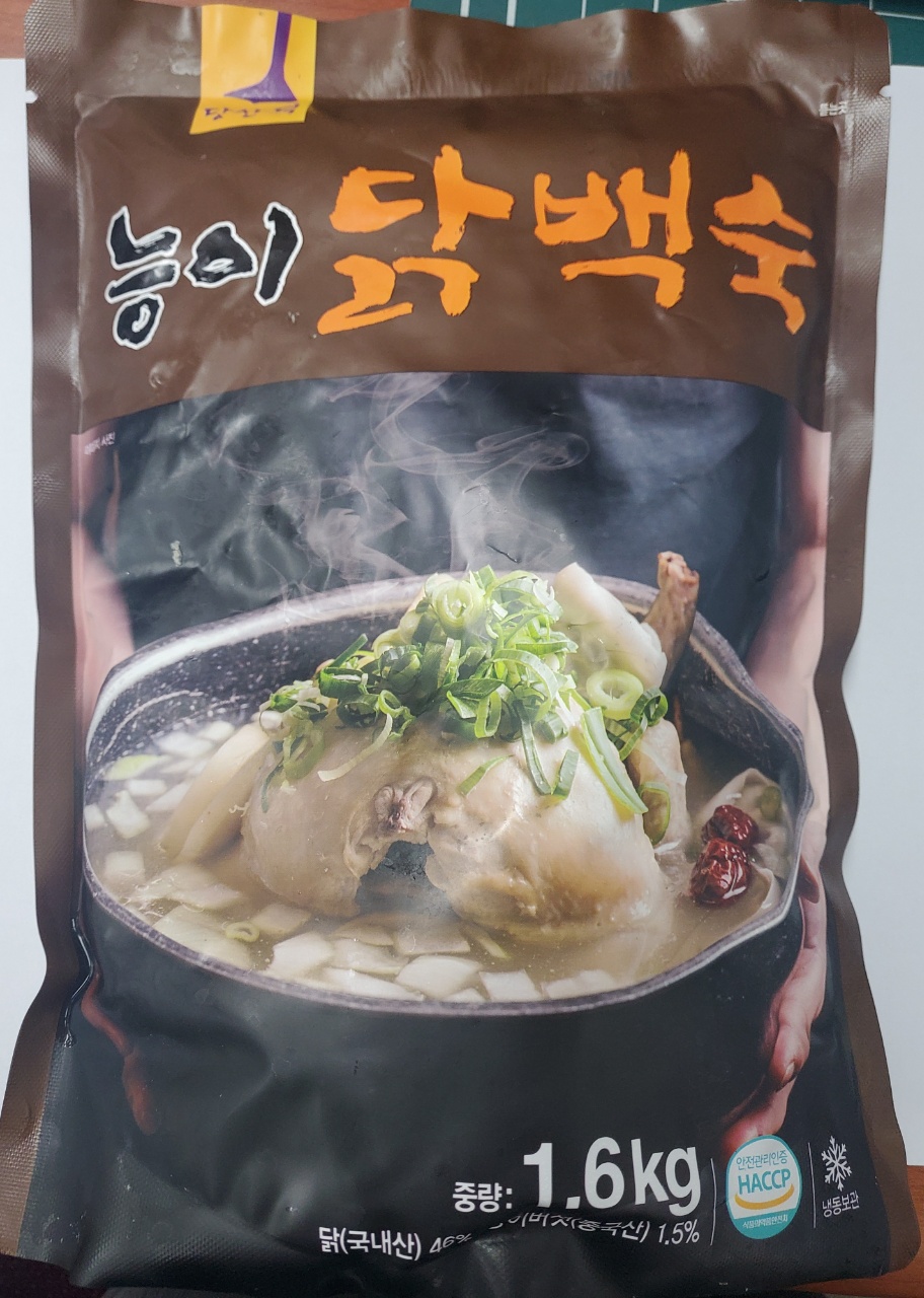 백숙은 무게 1.6kg 포장된 상품으로 2인분량