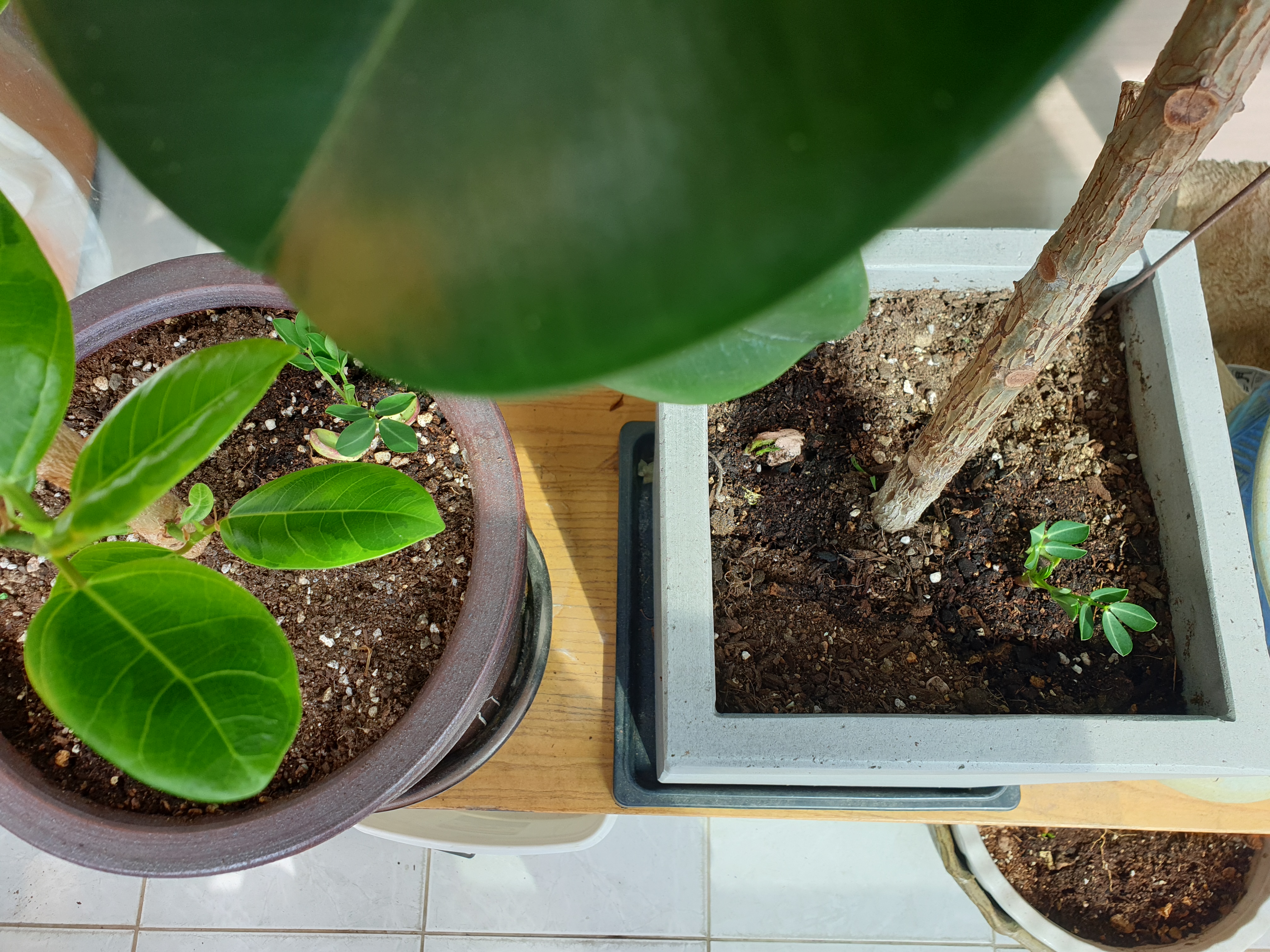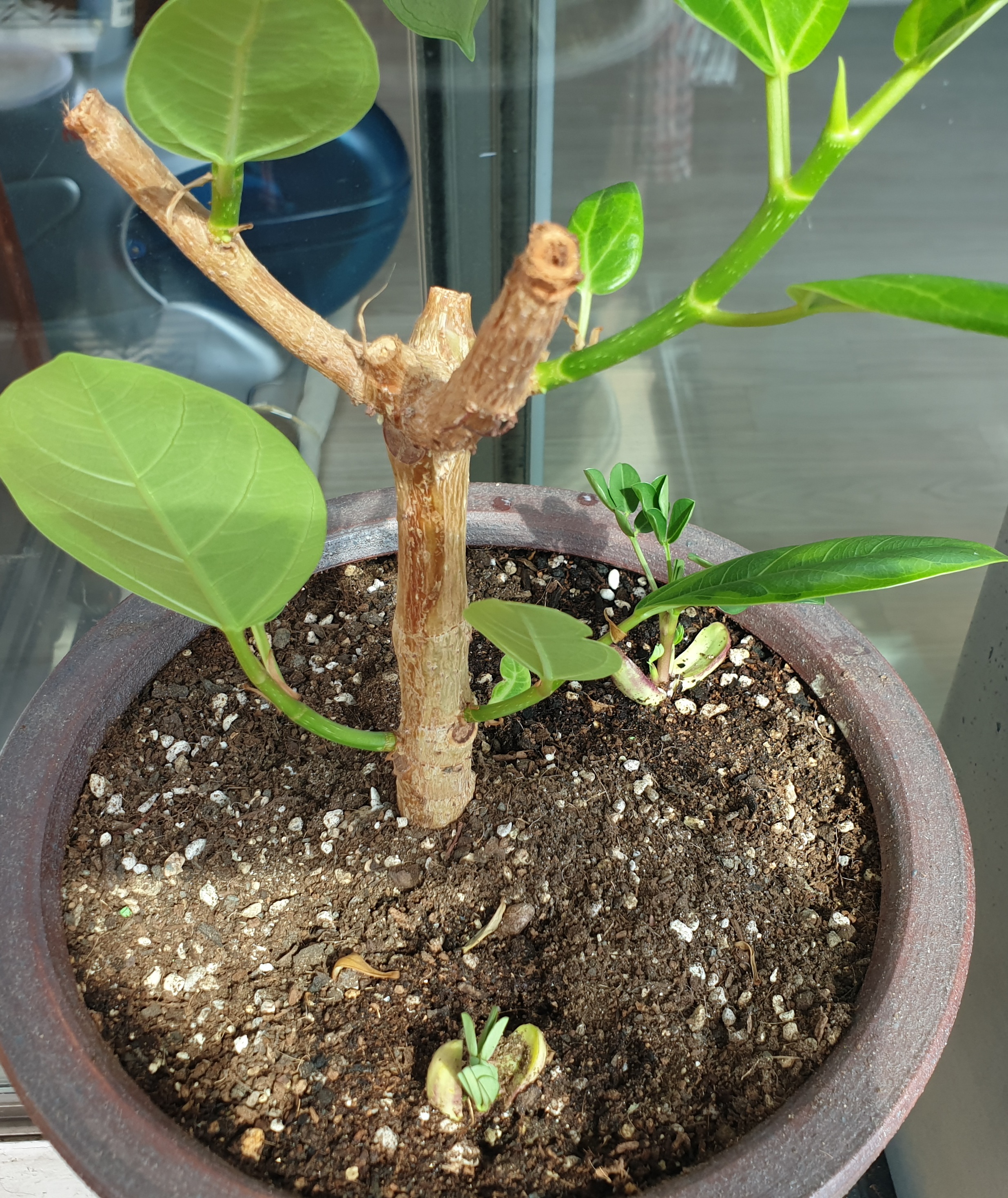 기사회생한 뱅갈 고무 나무 품에도 2촉을 묻어줬다