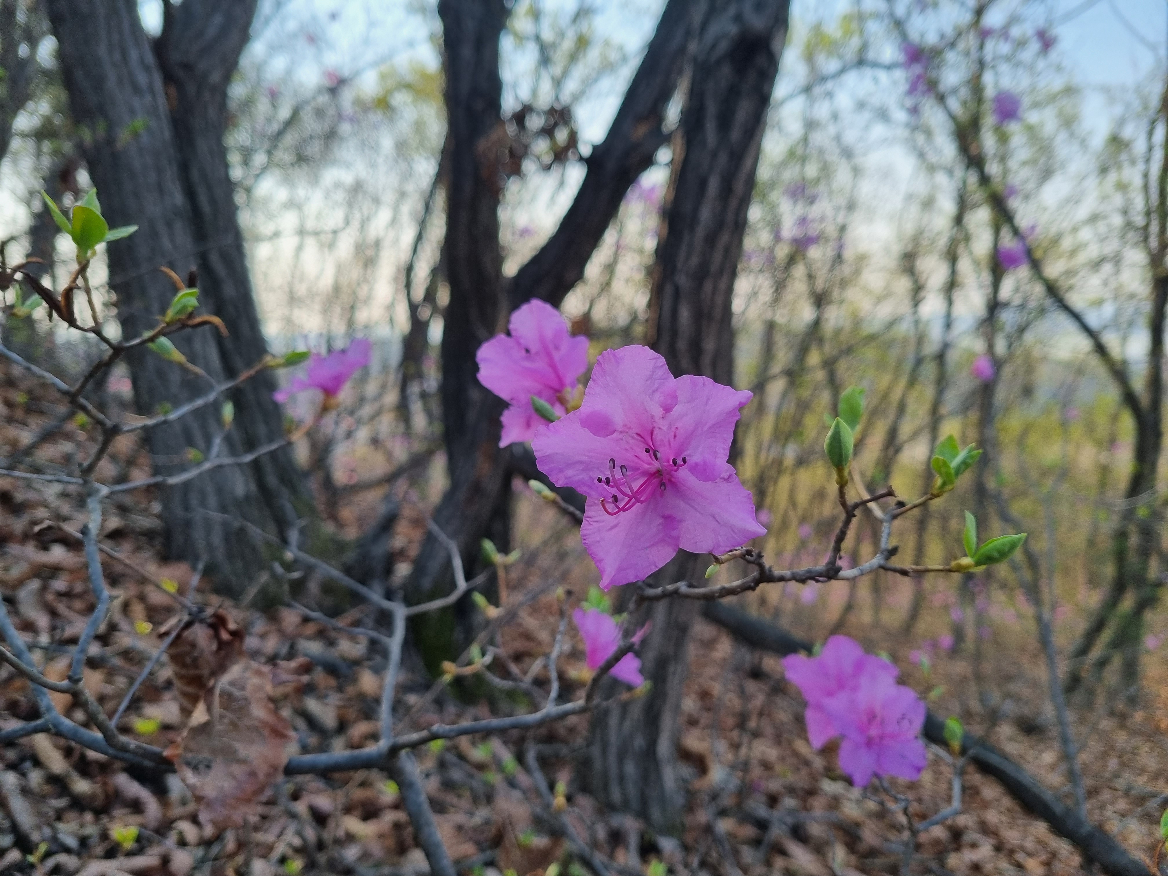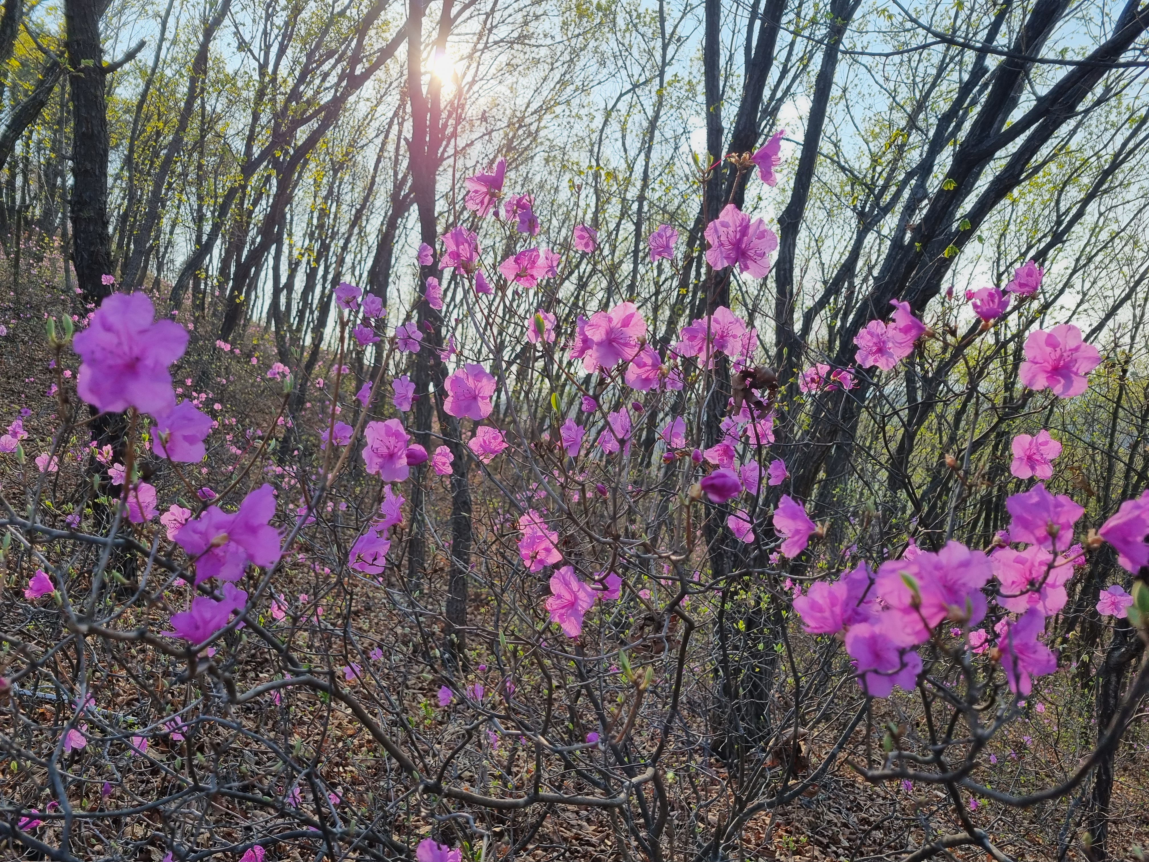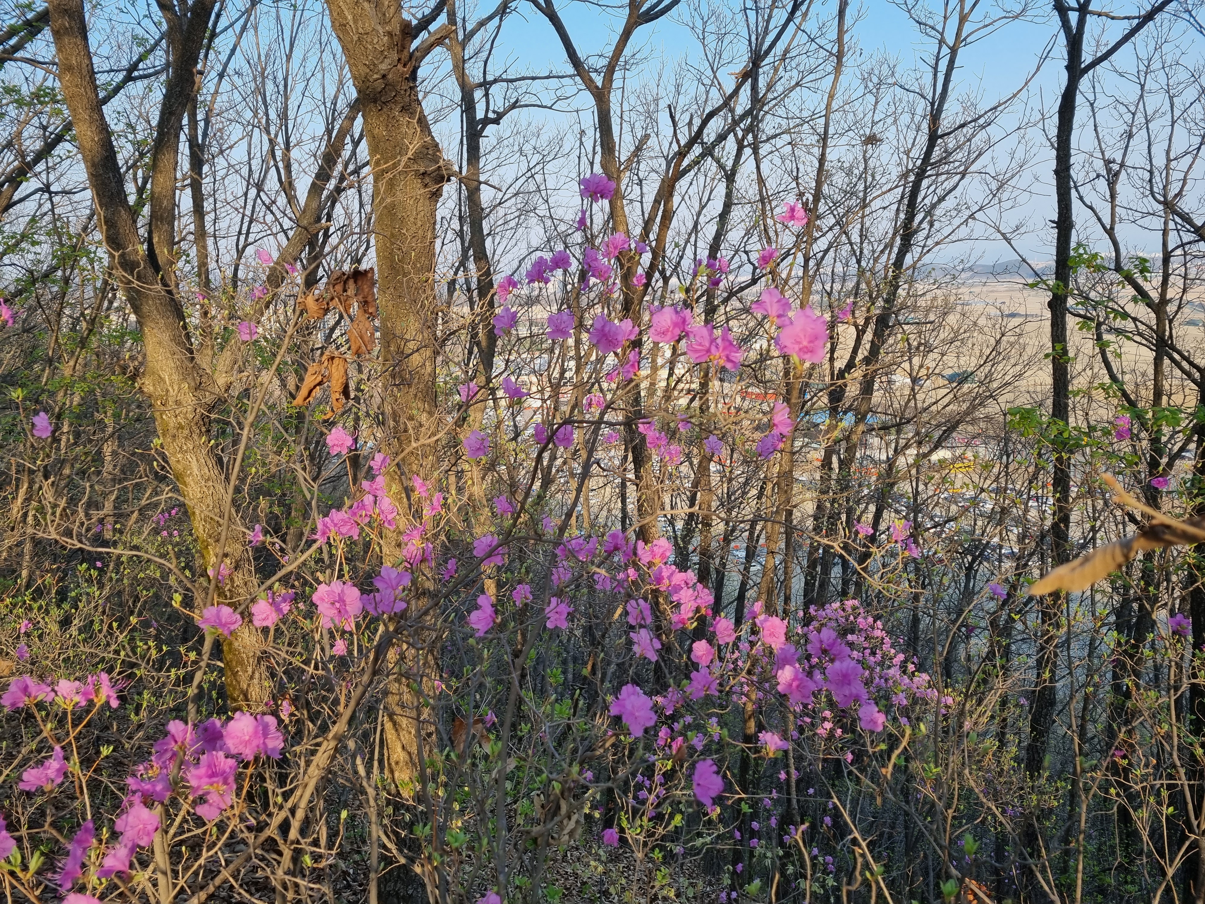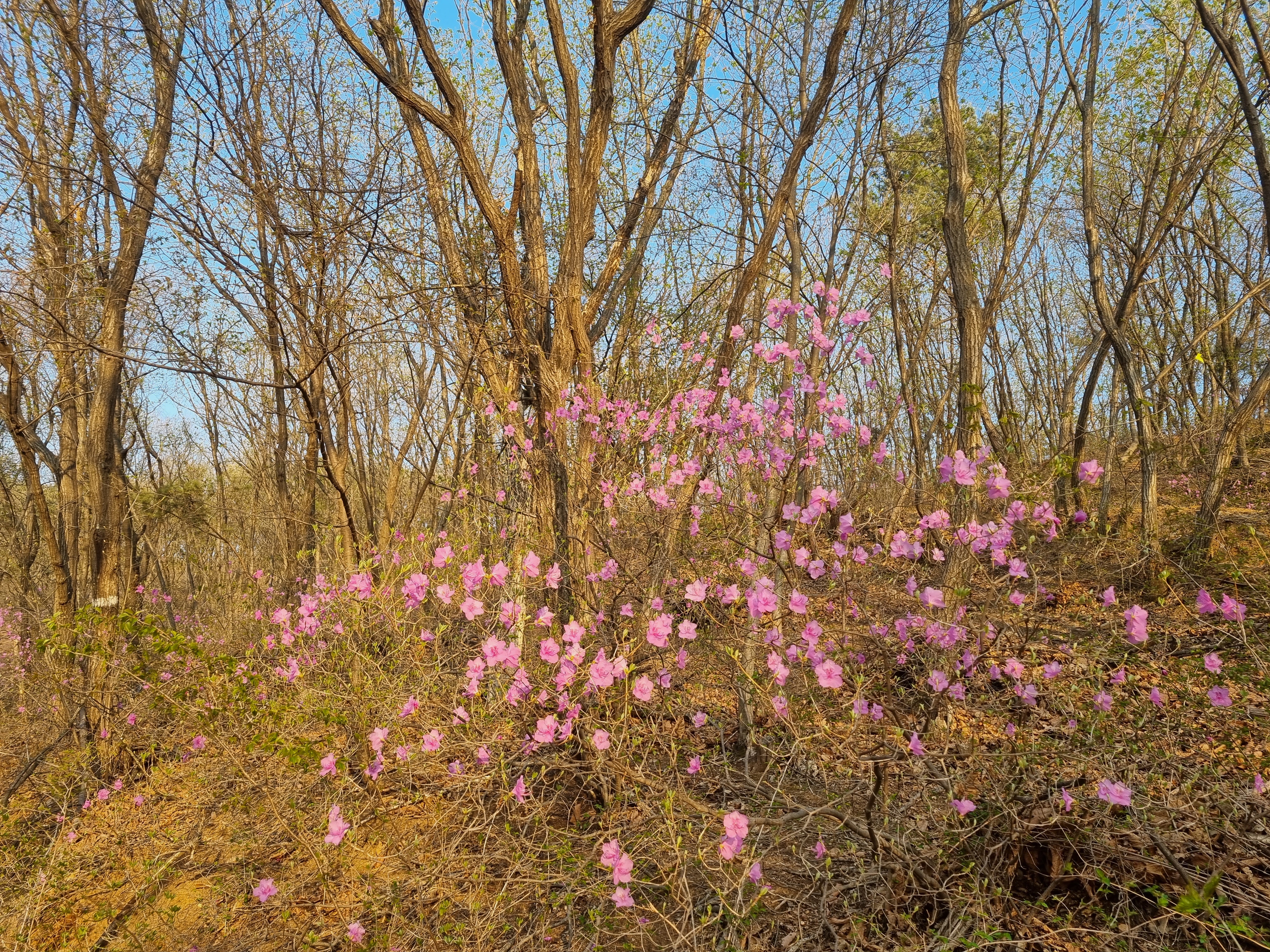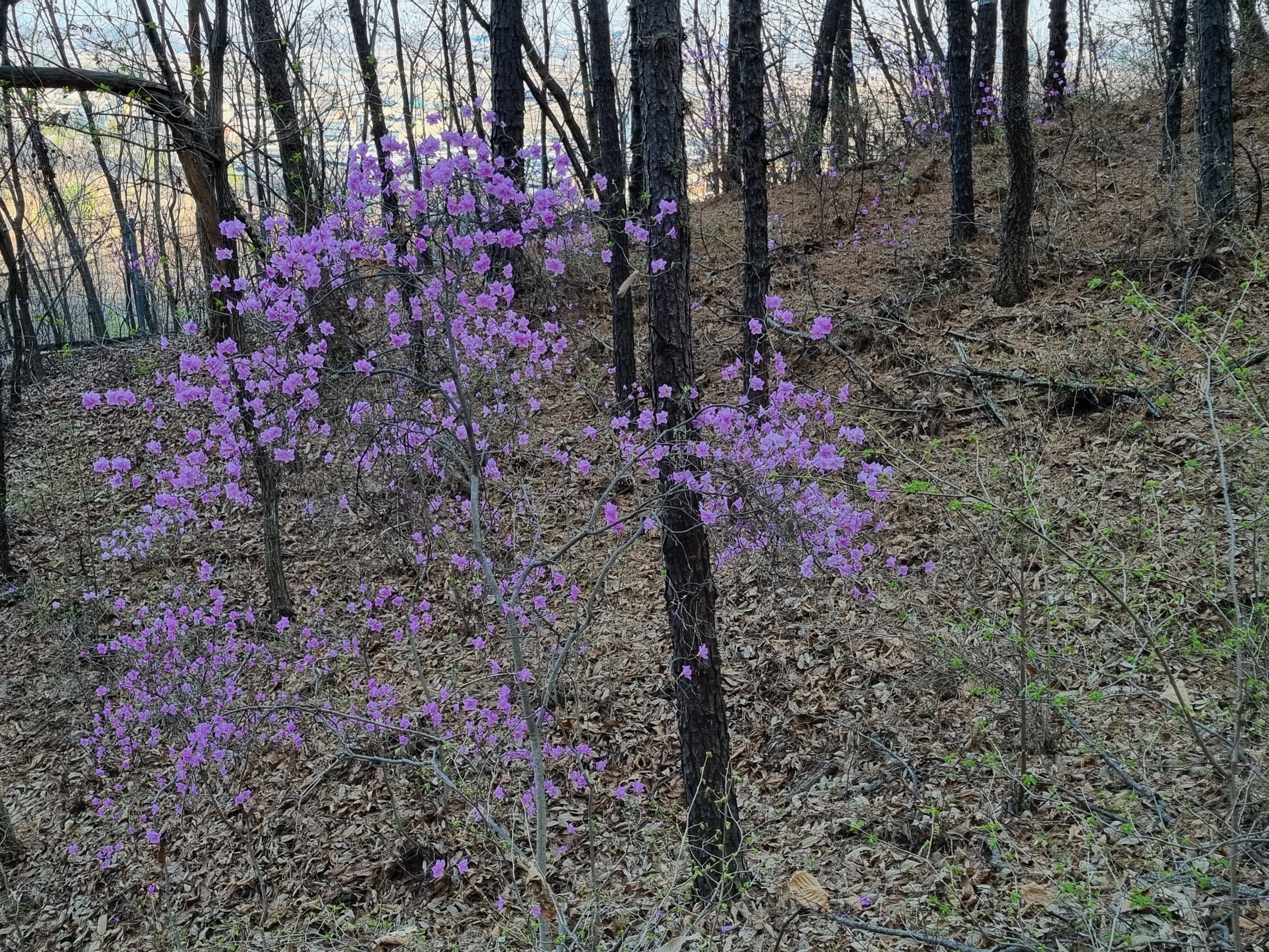 잡목들 사이에 진달래 빛깔이 참 곱다
