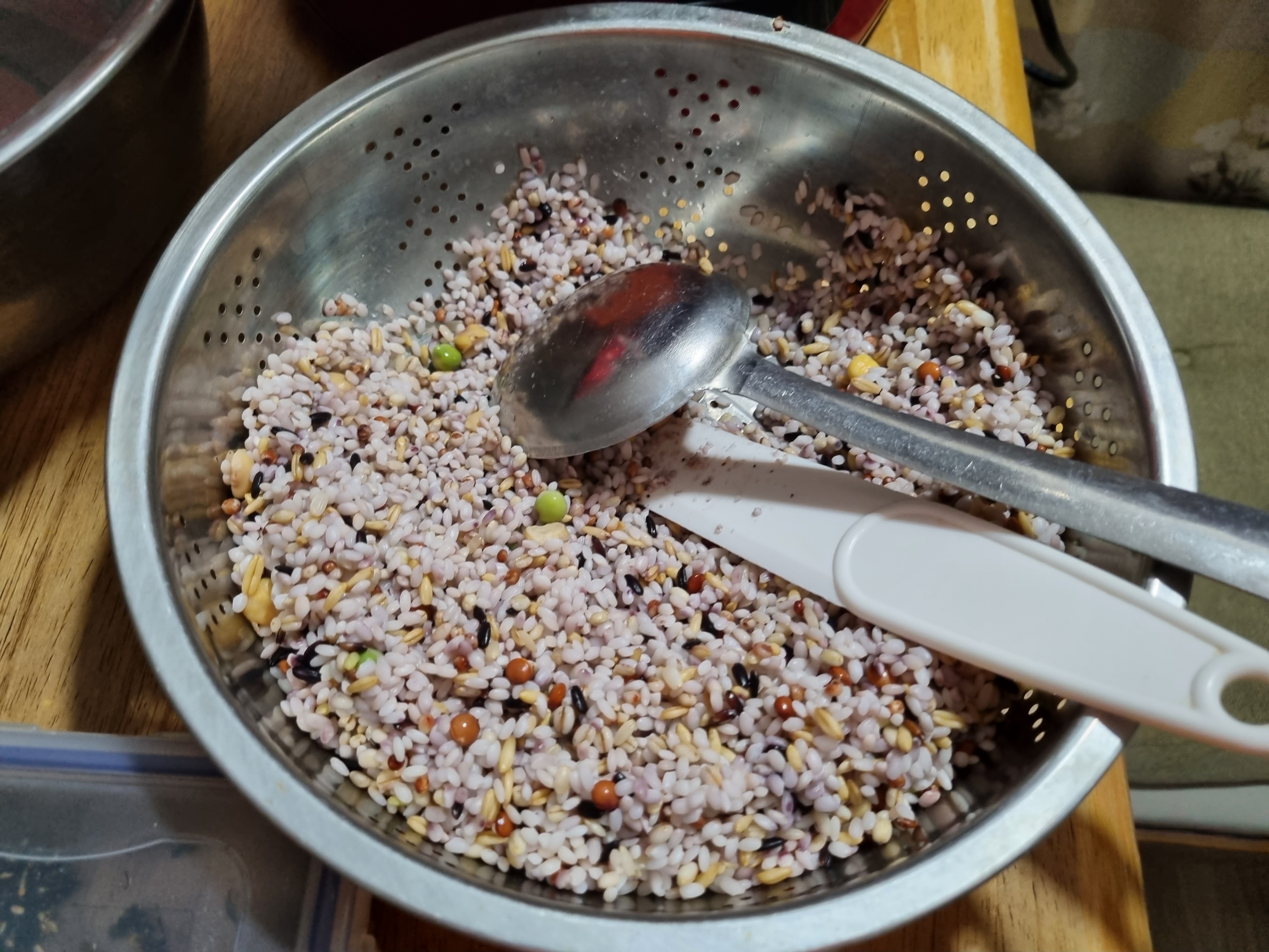 (평소 잡곡밥용으로 섞어 둔 병아리콩. 렌즈콩. 수수쌀.