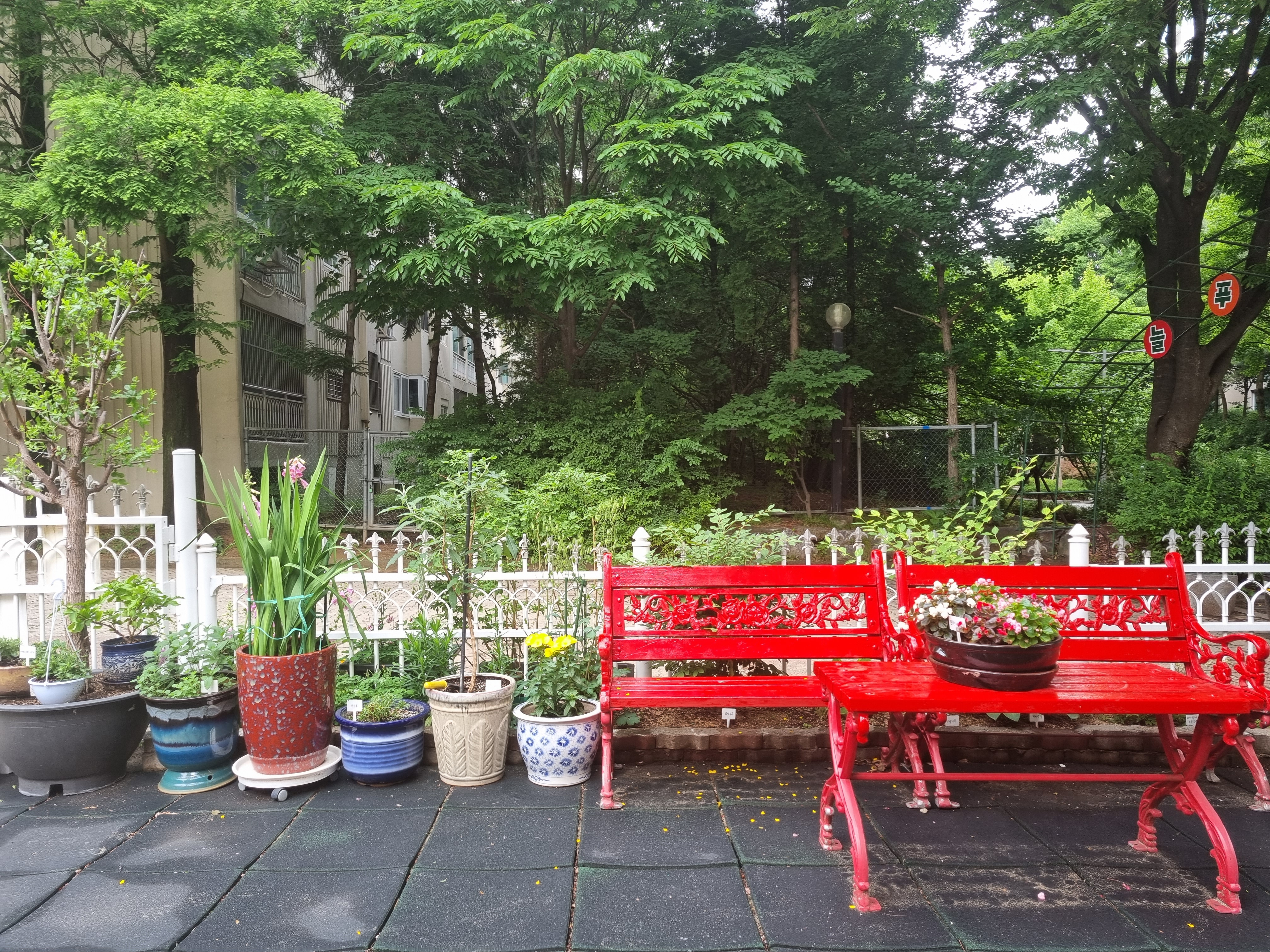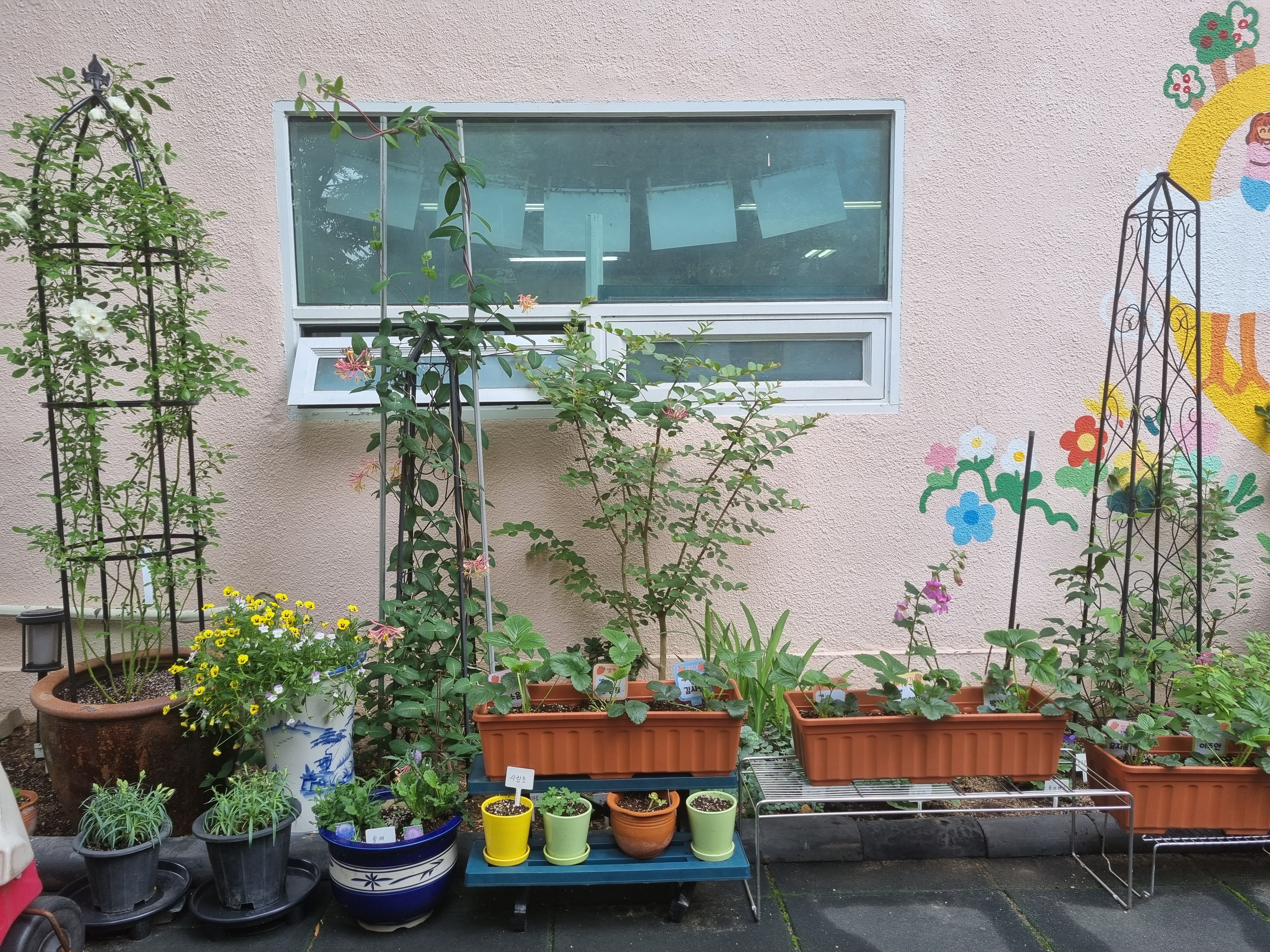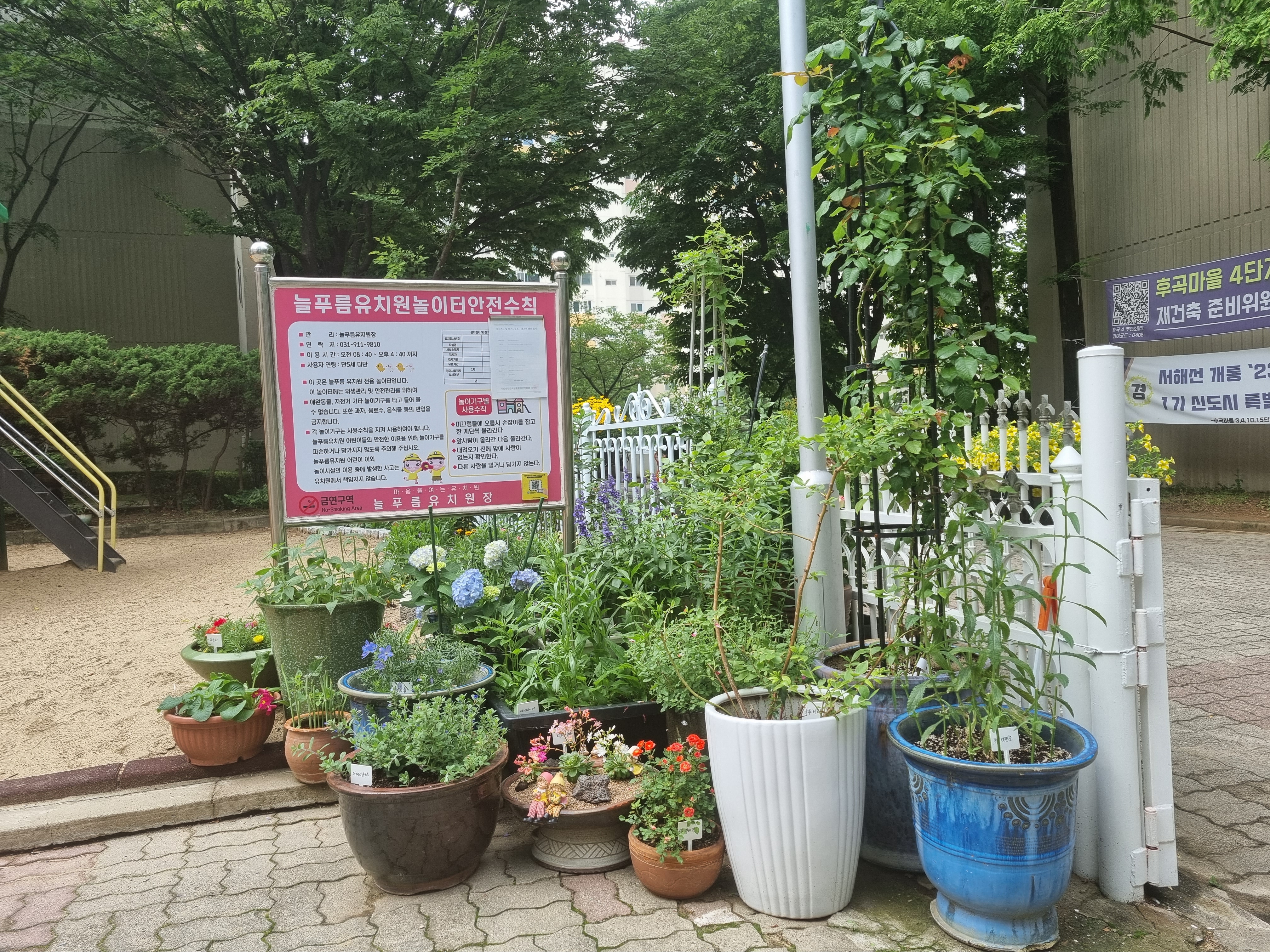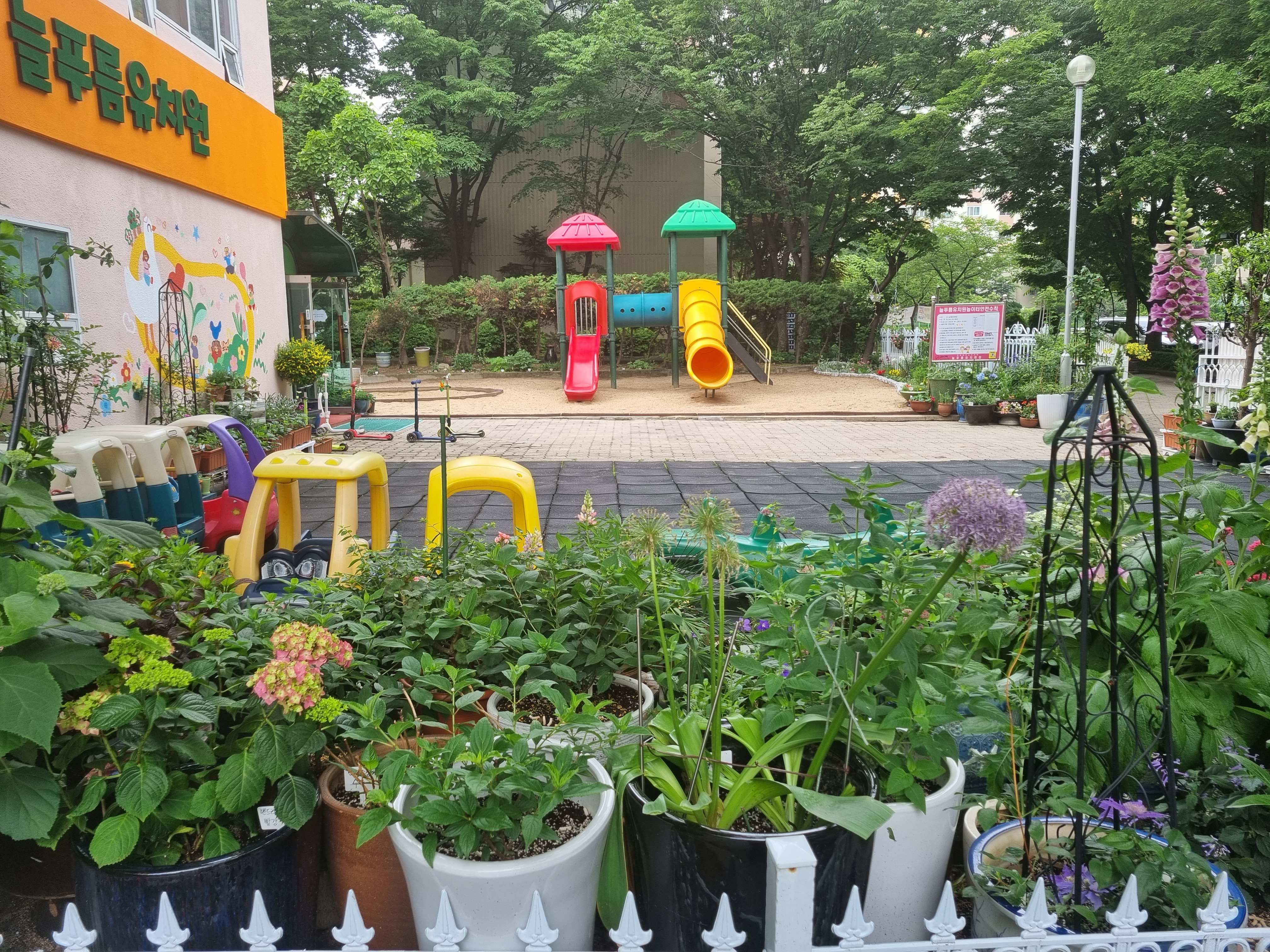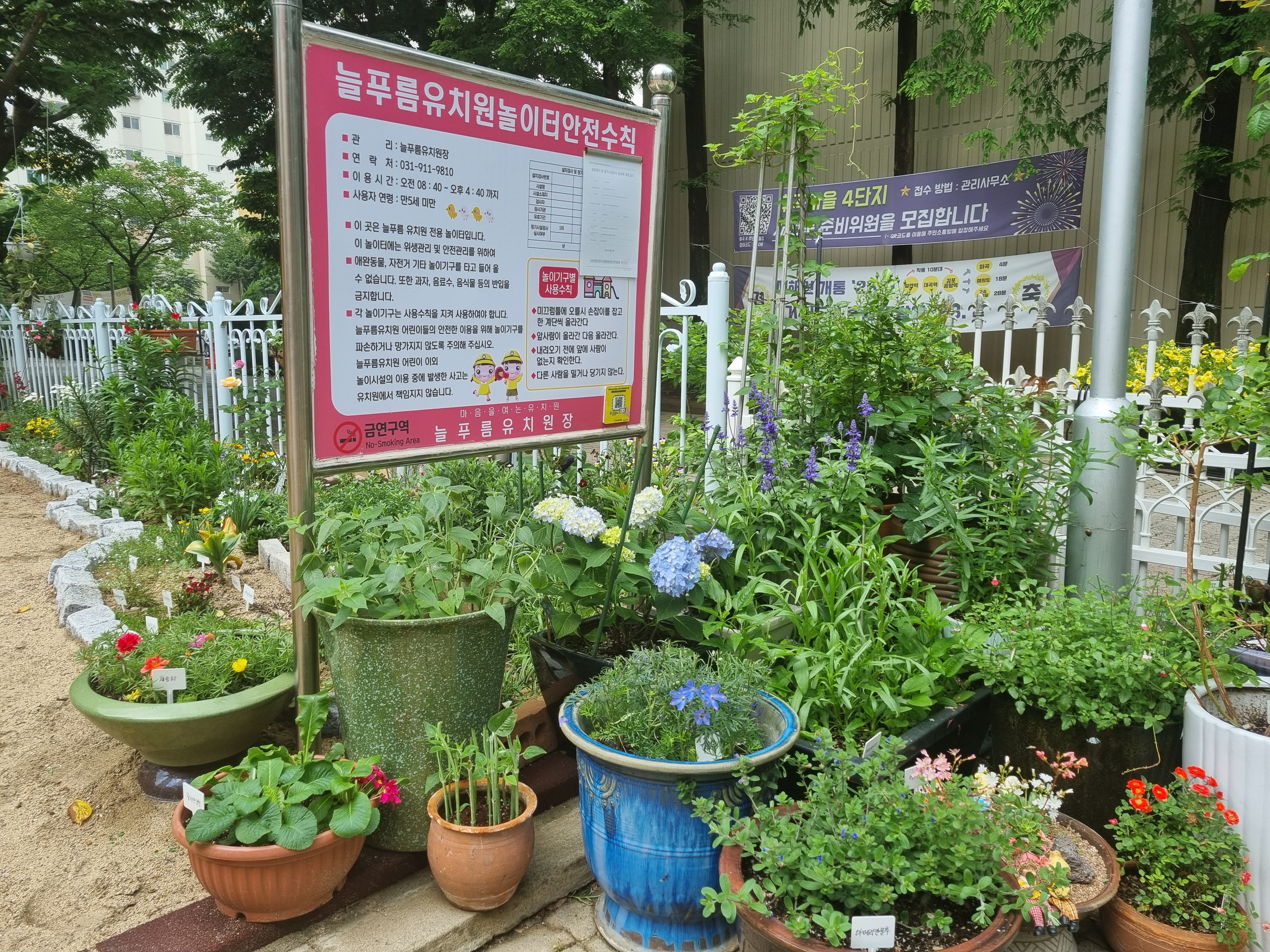 꽃밭으로 조성된 면적 그만큼은 원아들의 놀이 공간이 줄어들지 않았을까?