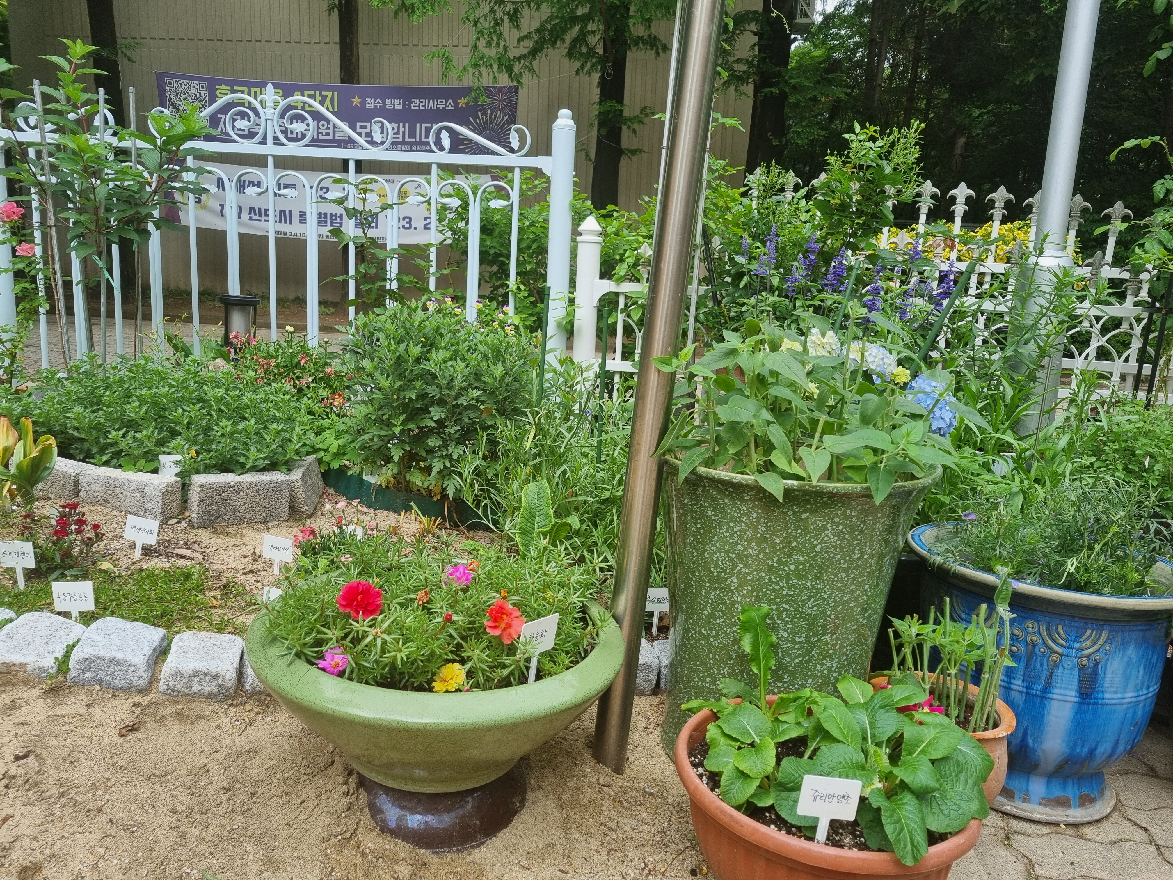 꽃밭을 만들어 지나는 사람들의시선을 끈다