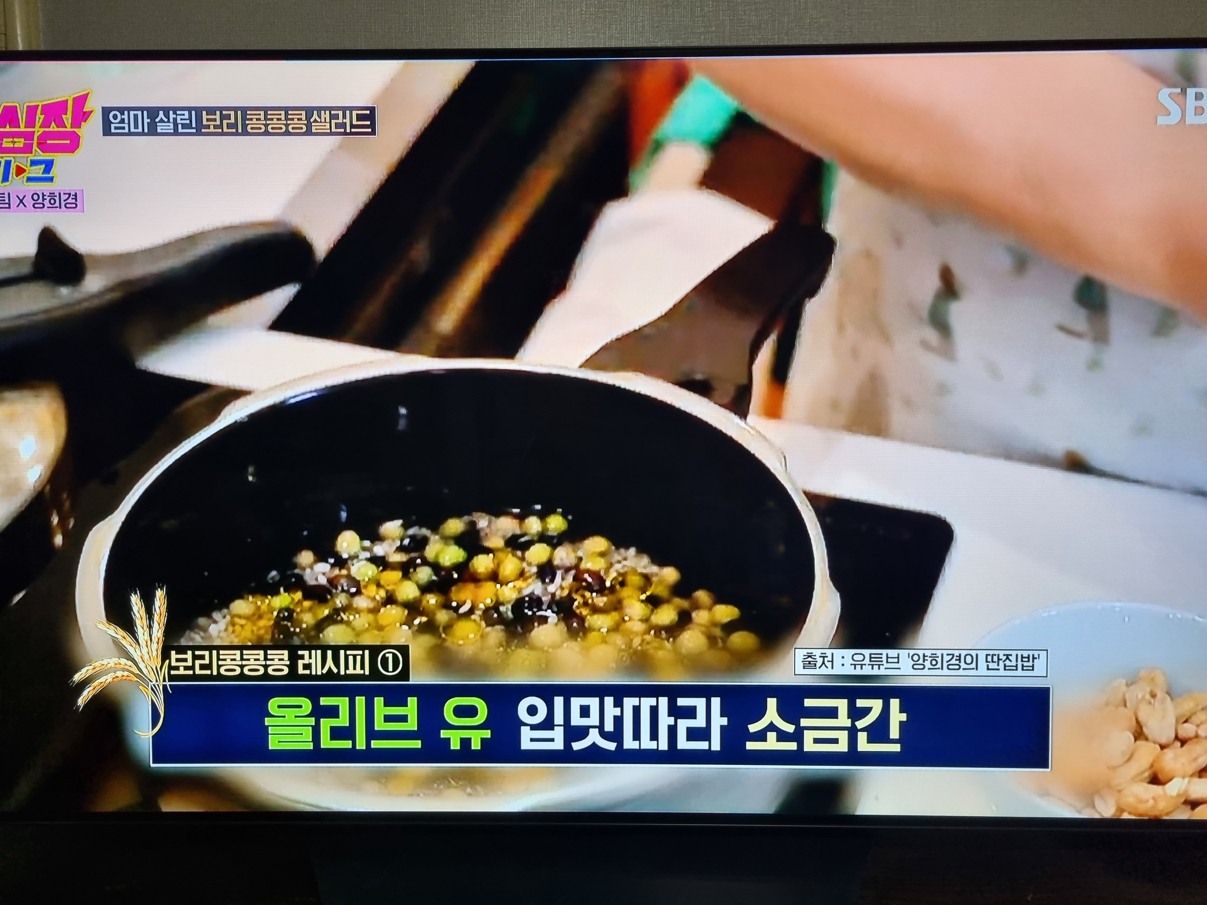 충분히 팅팅 불린 보리 쌀. 콩류를 올리브유를 넣고 2번 익혀