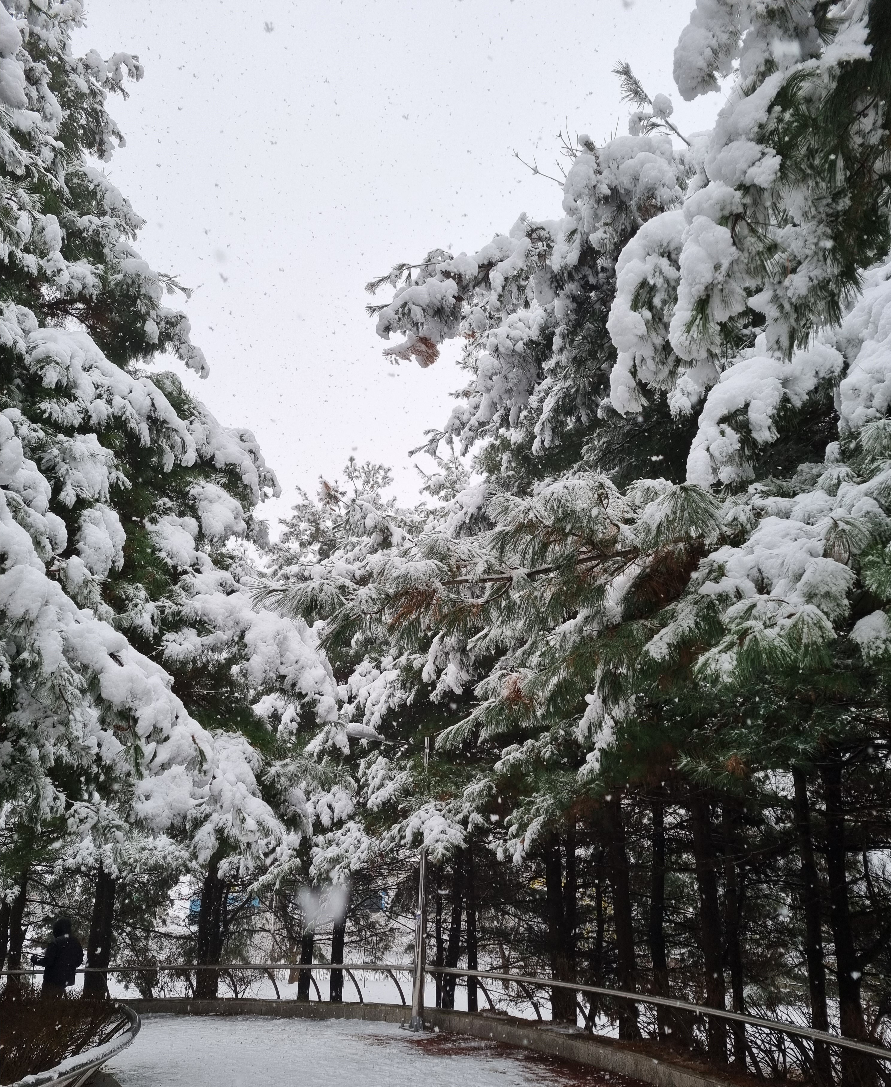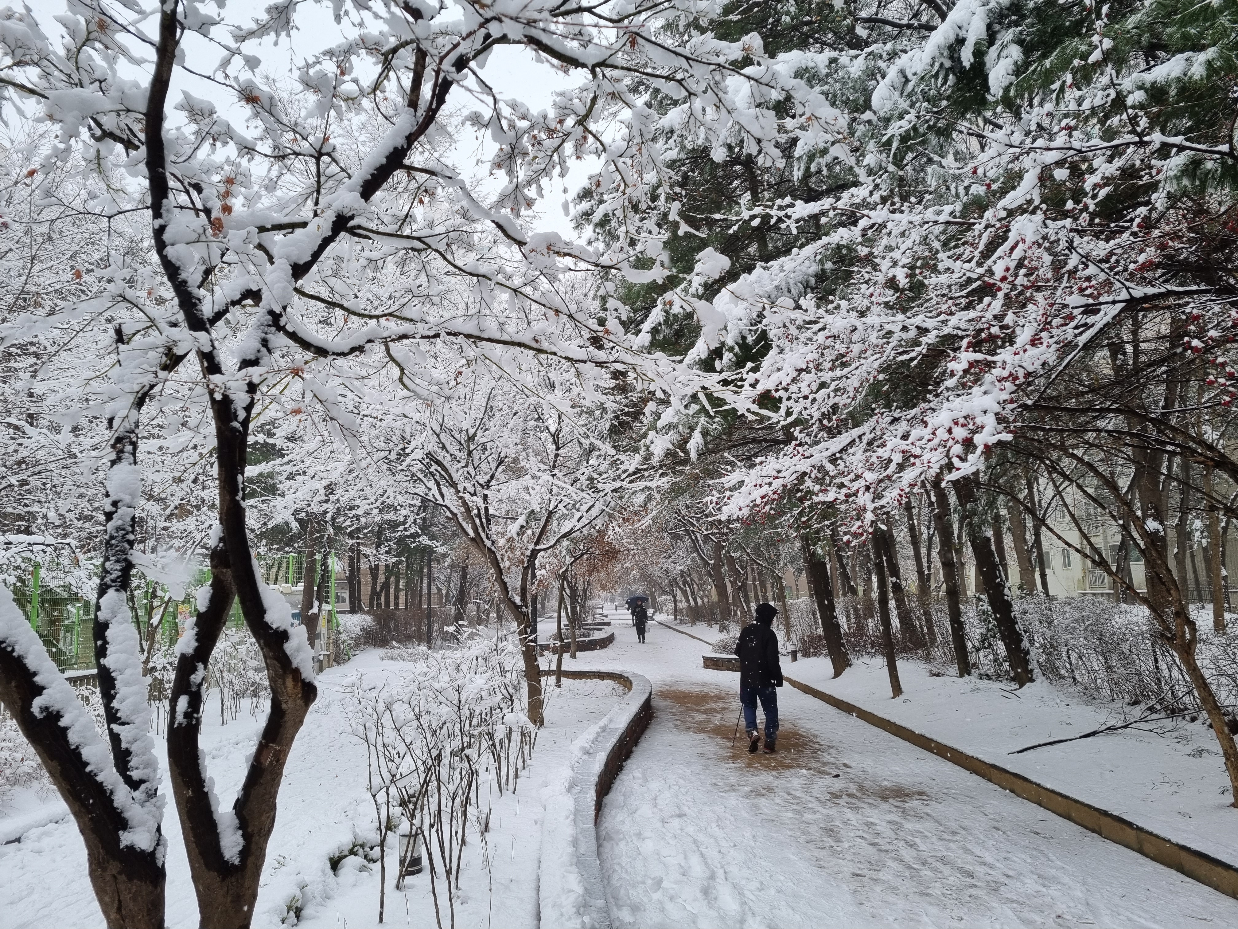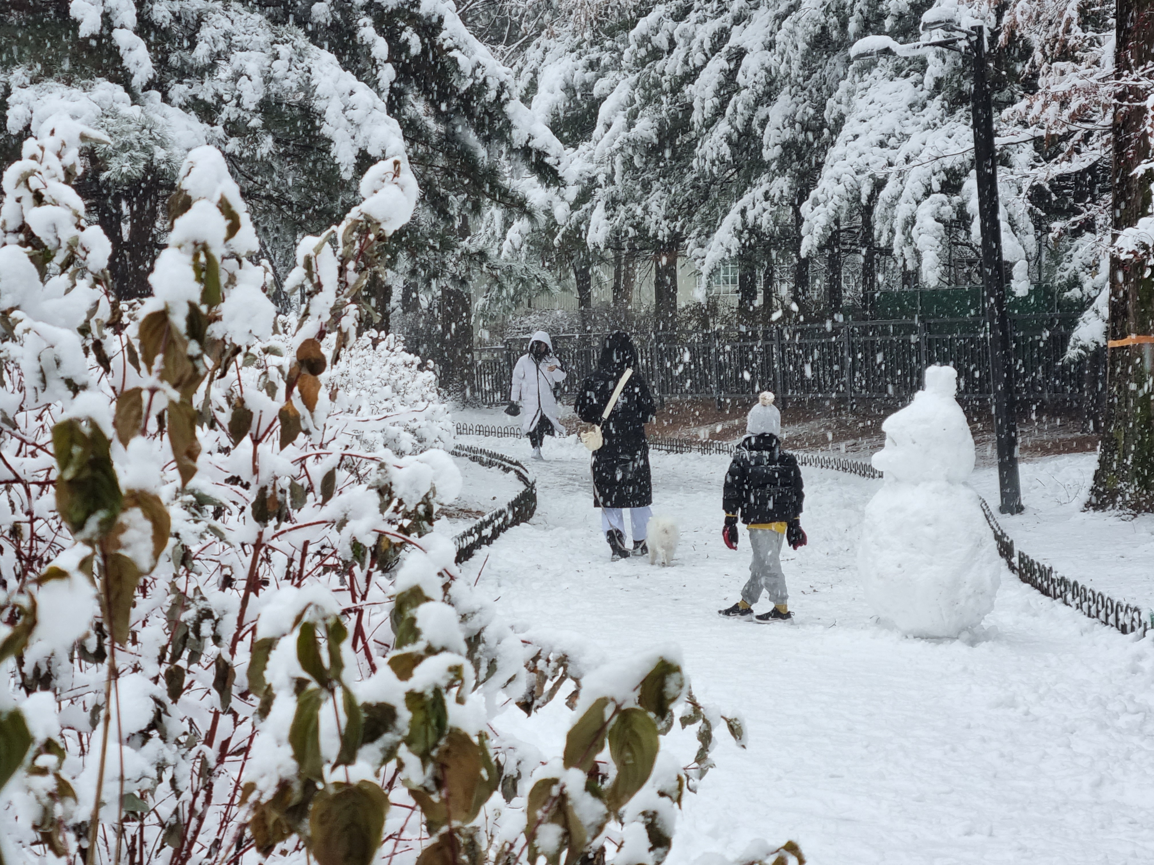 습설로 나무들이 축축 늘어지고 휴일을 맞은 아이들은