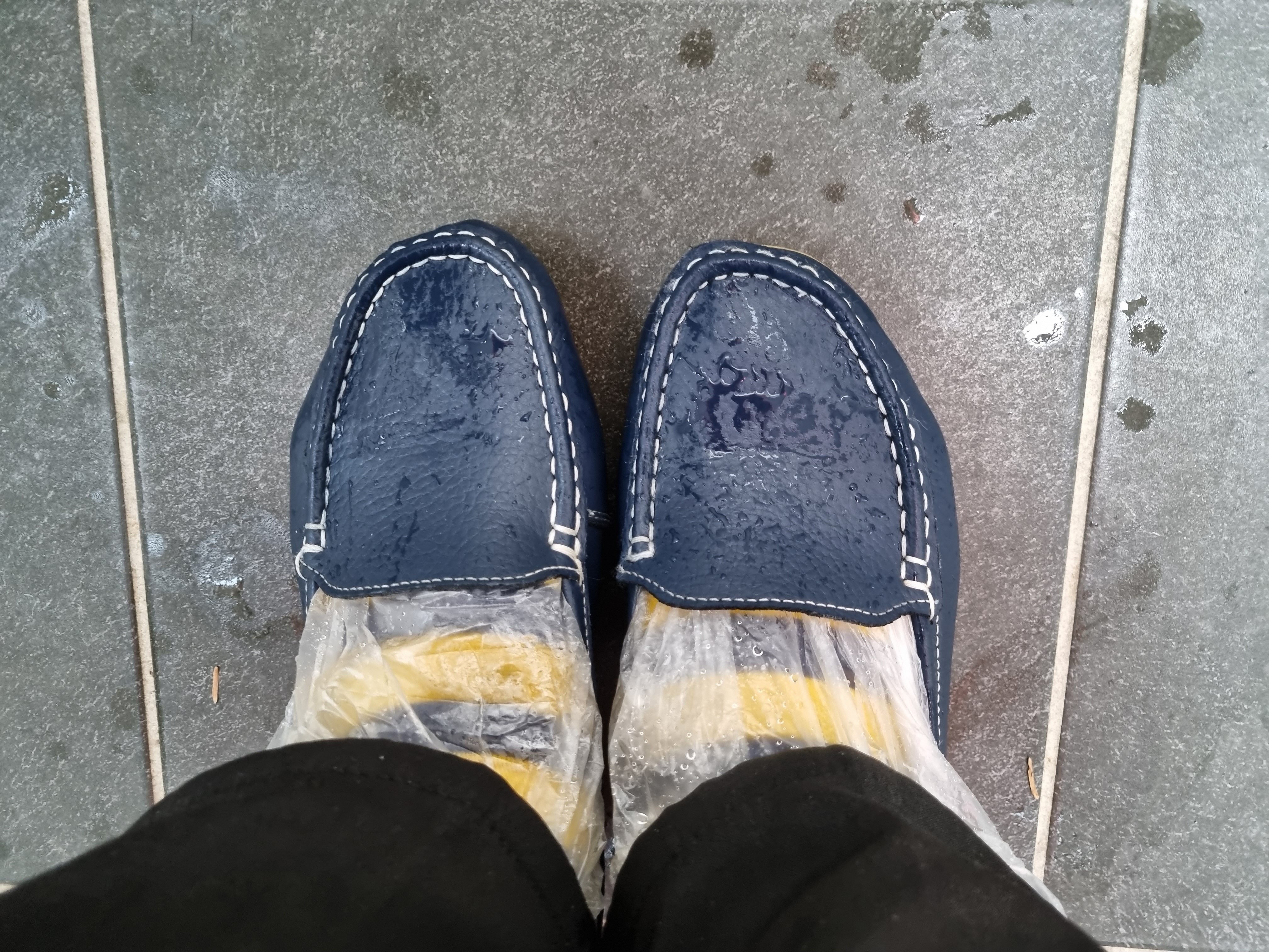 신발을 고를 새 없어 양말 신고 비닐 덧씌워 보행이 편한 신발을 신고 다녀왔다