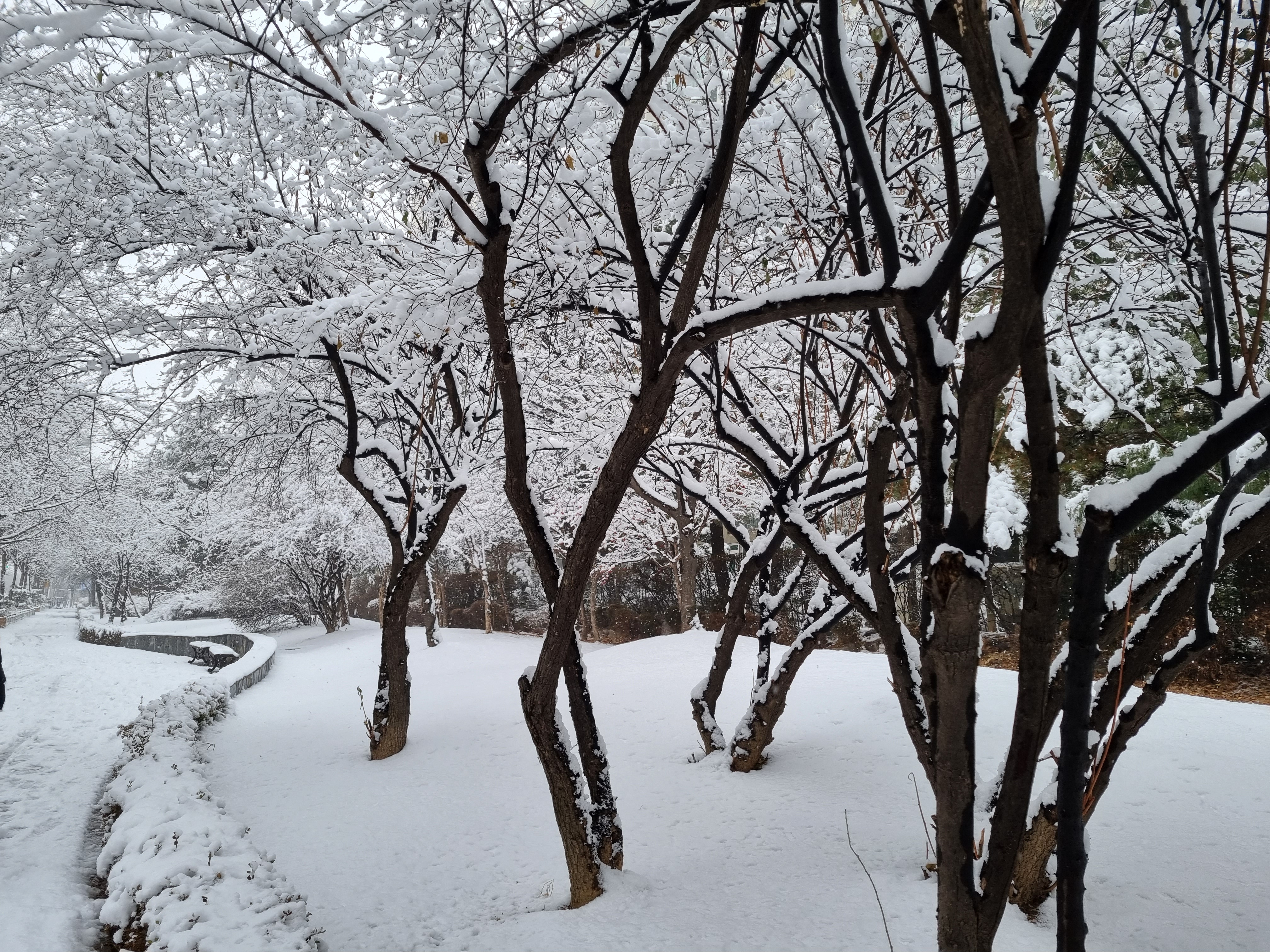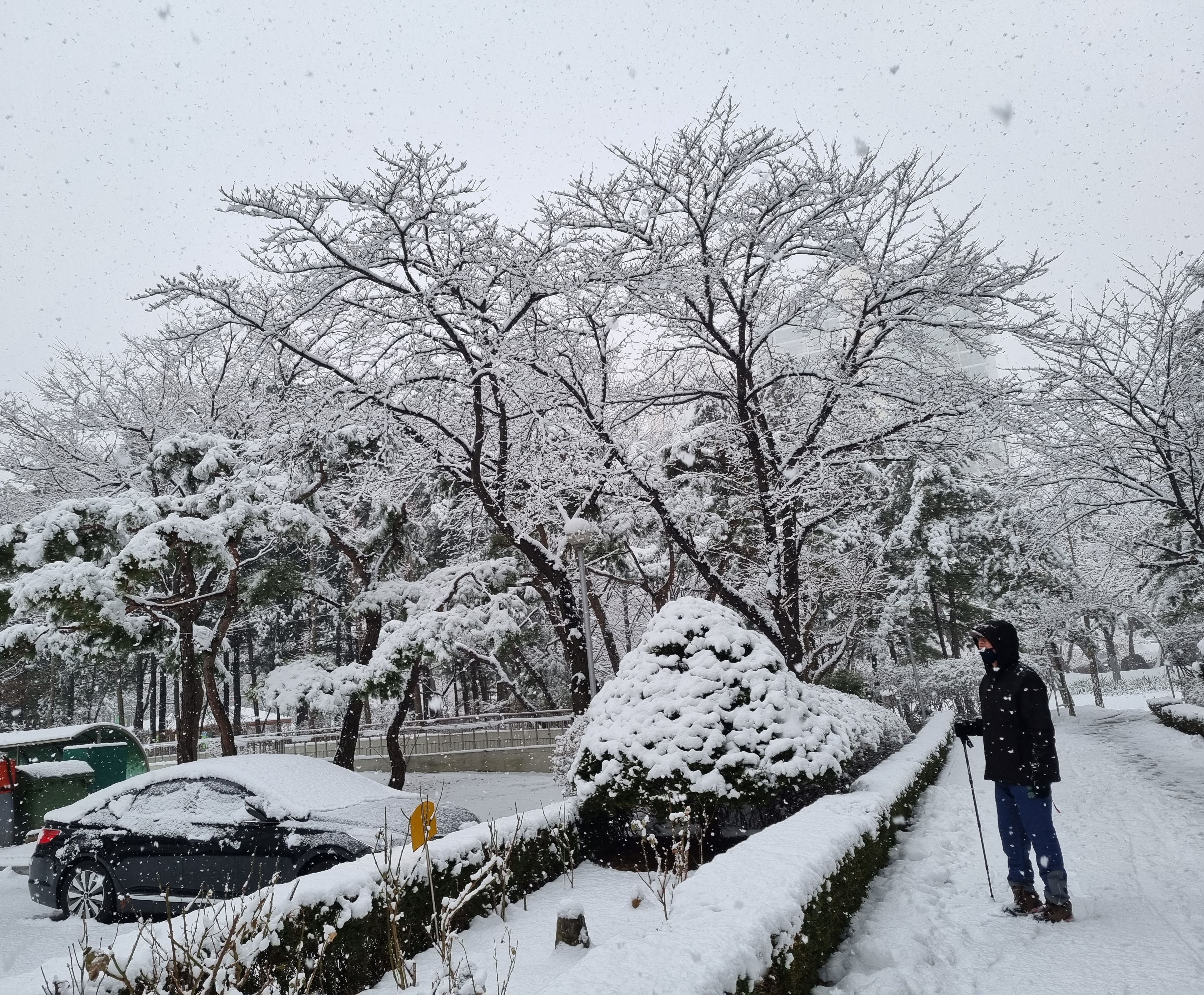 내 경우엔 20년전 기록적인 폭설 이후 처음 접하는 실하게 내린 설경은 장관이다