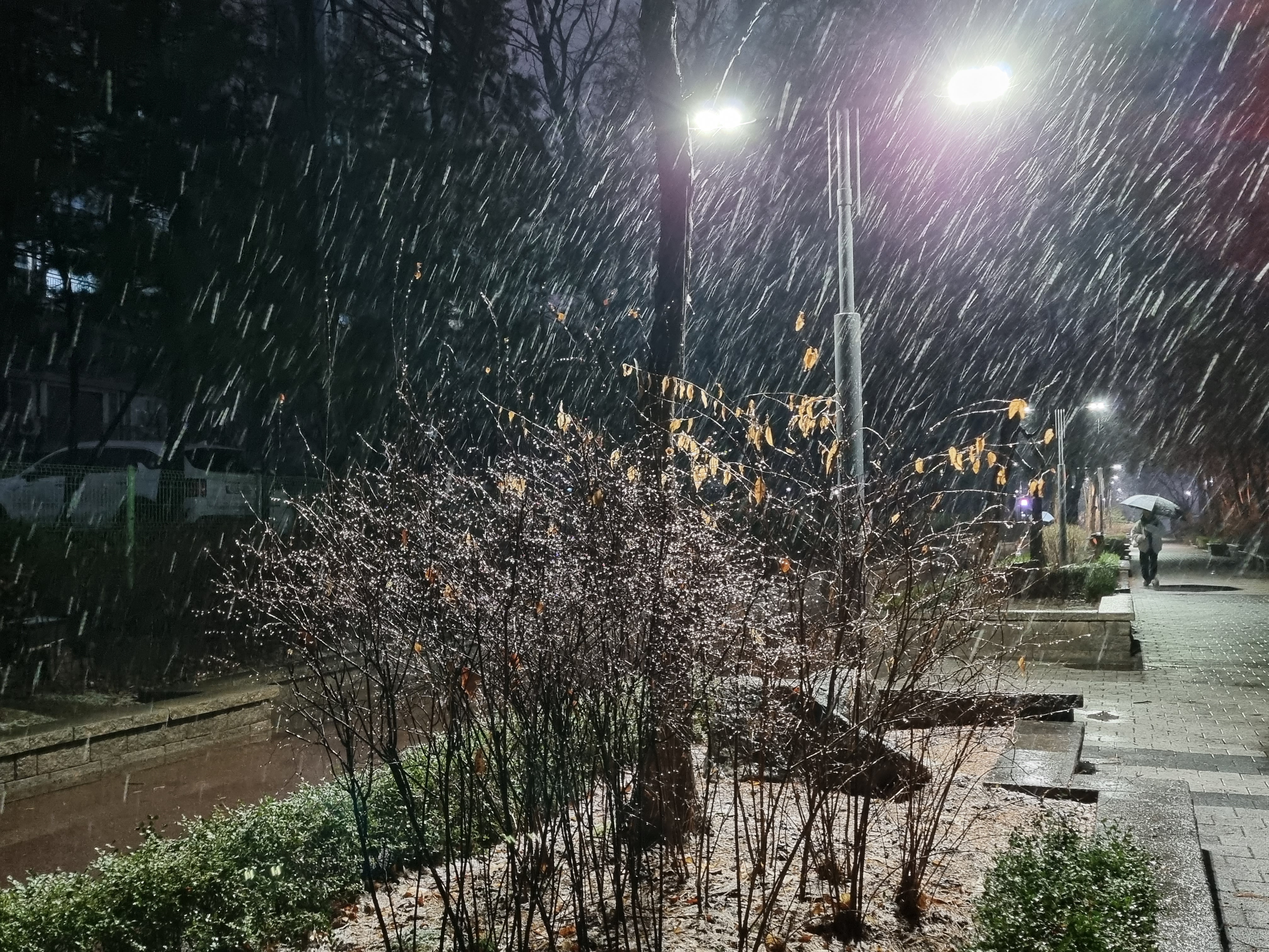 아침부터 비가 내리다가 진눈깨비 오고 눈이 내린다