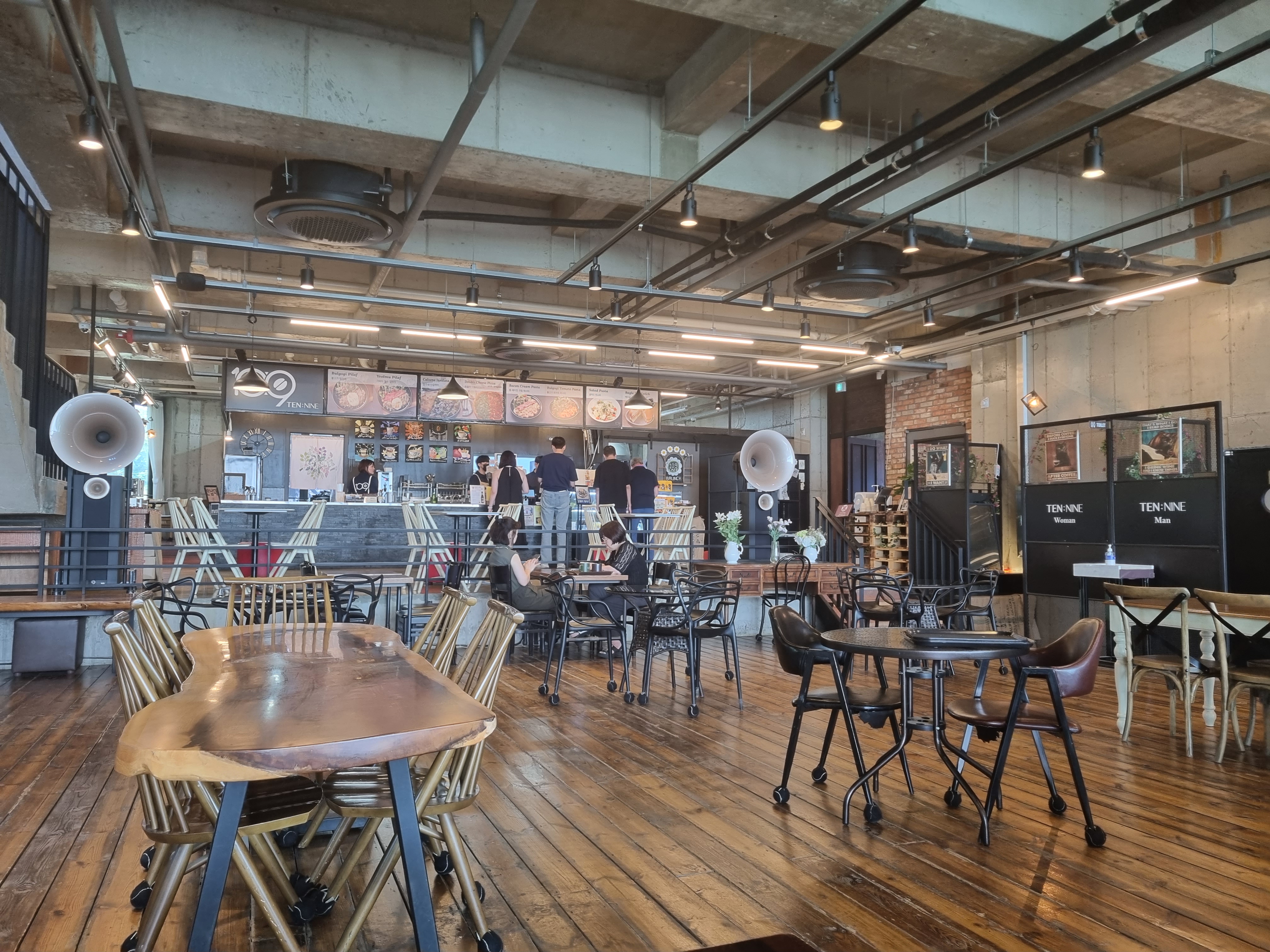 계산하고 시원한 장소에서 오랫만에 4인 가족 둘러 앉아