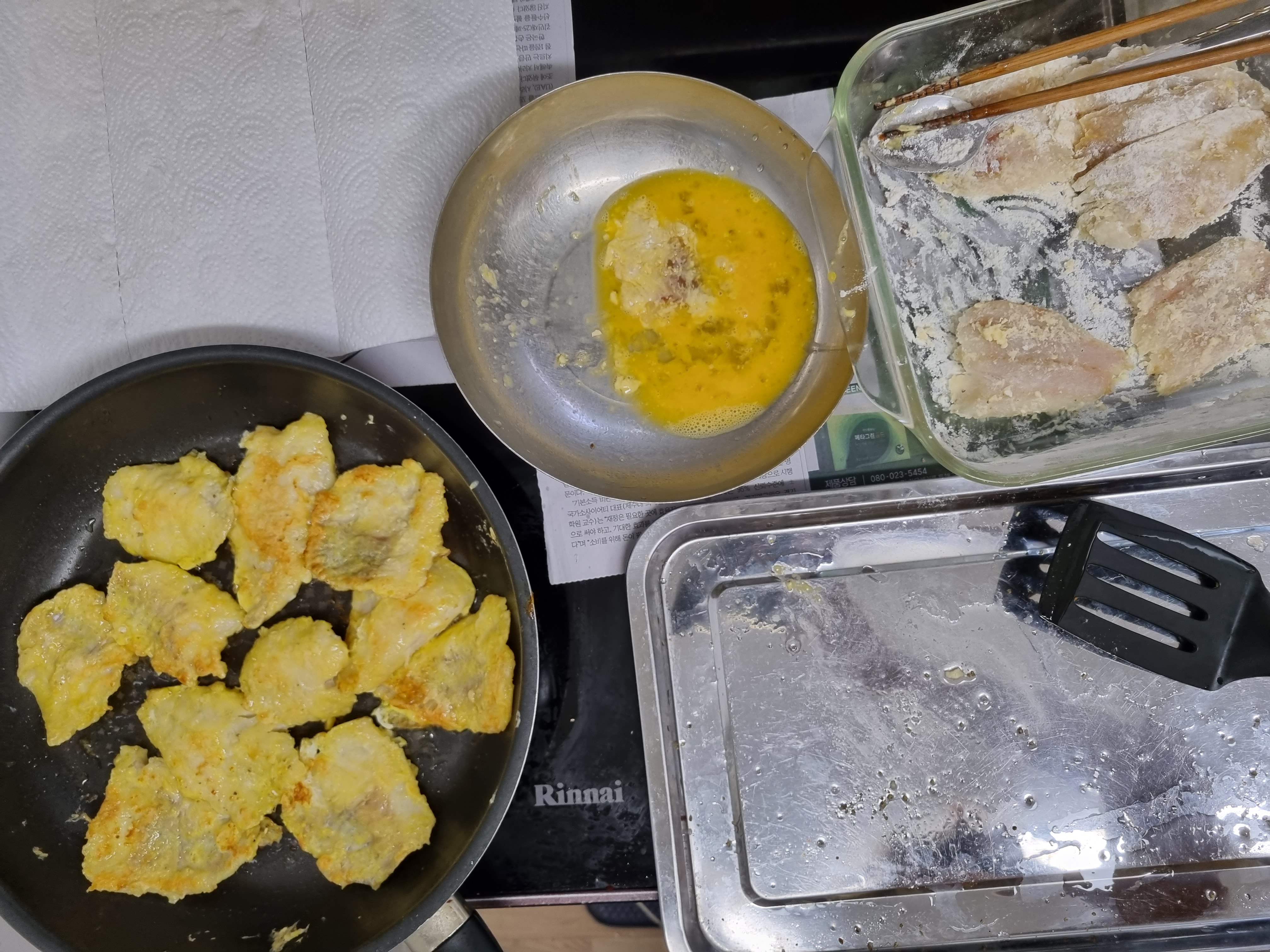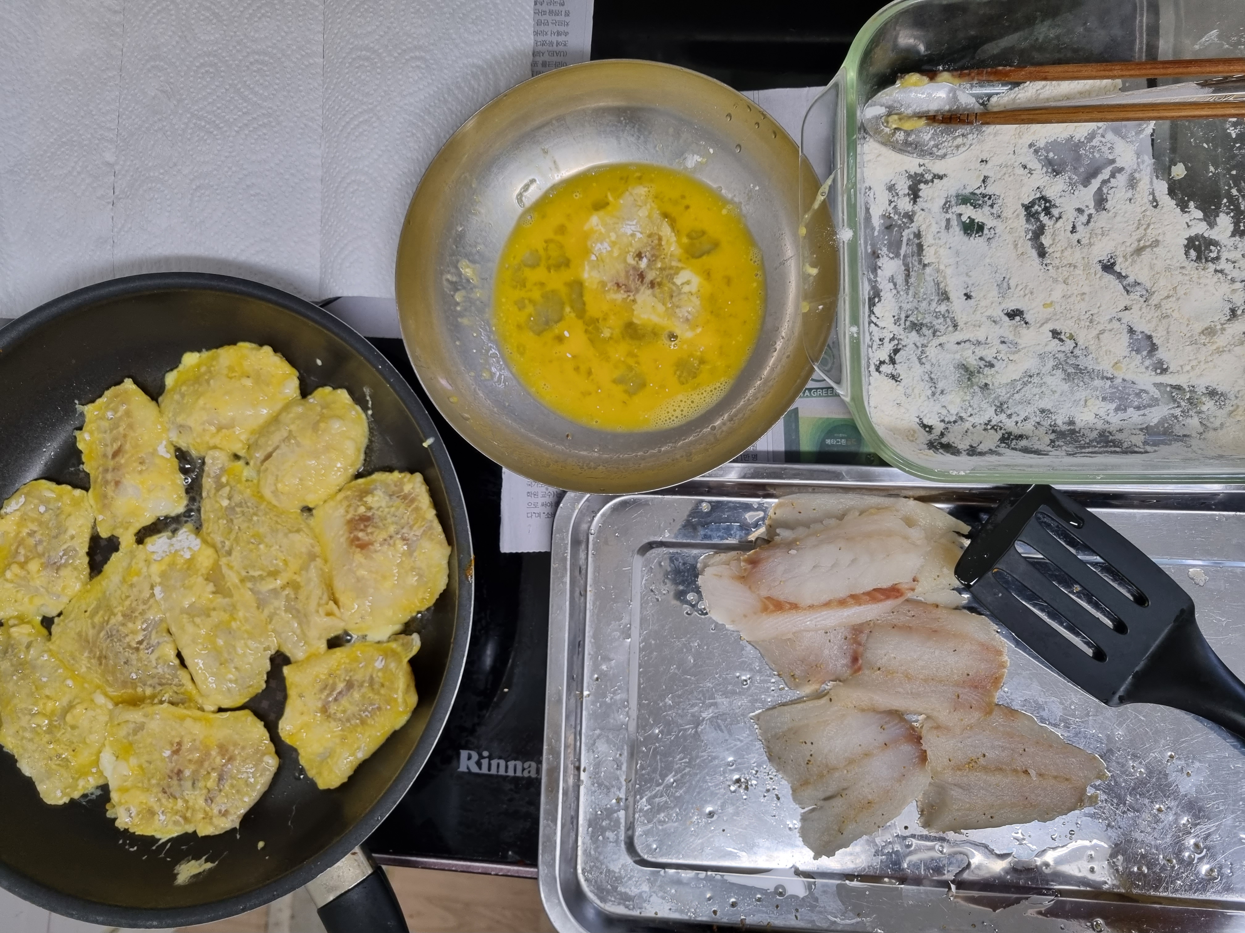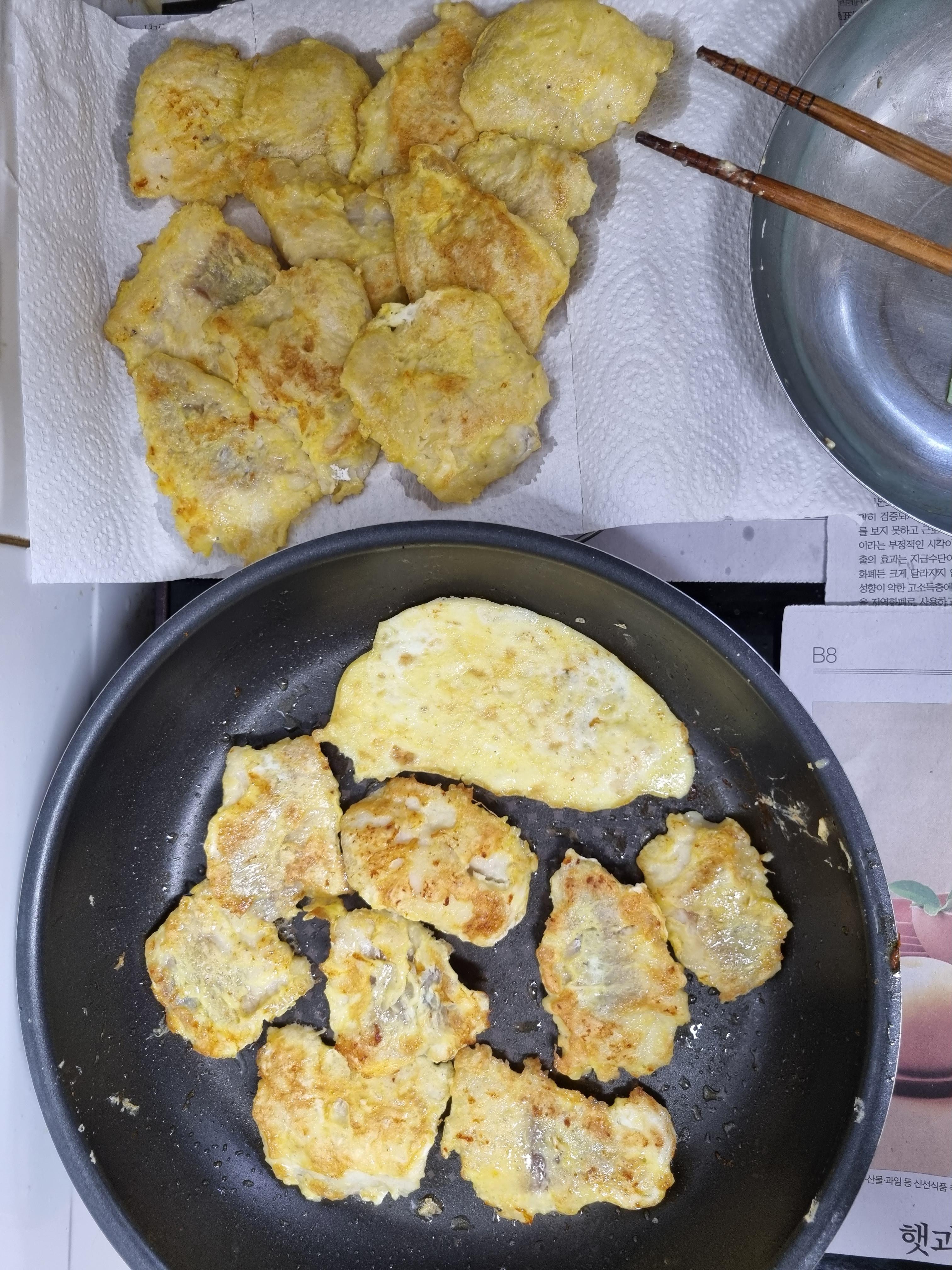 남편은 출근전 생선전을 부쳐야 하는 내게 미안했던지