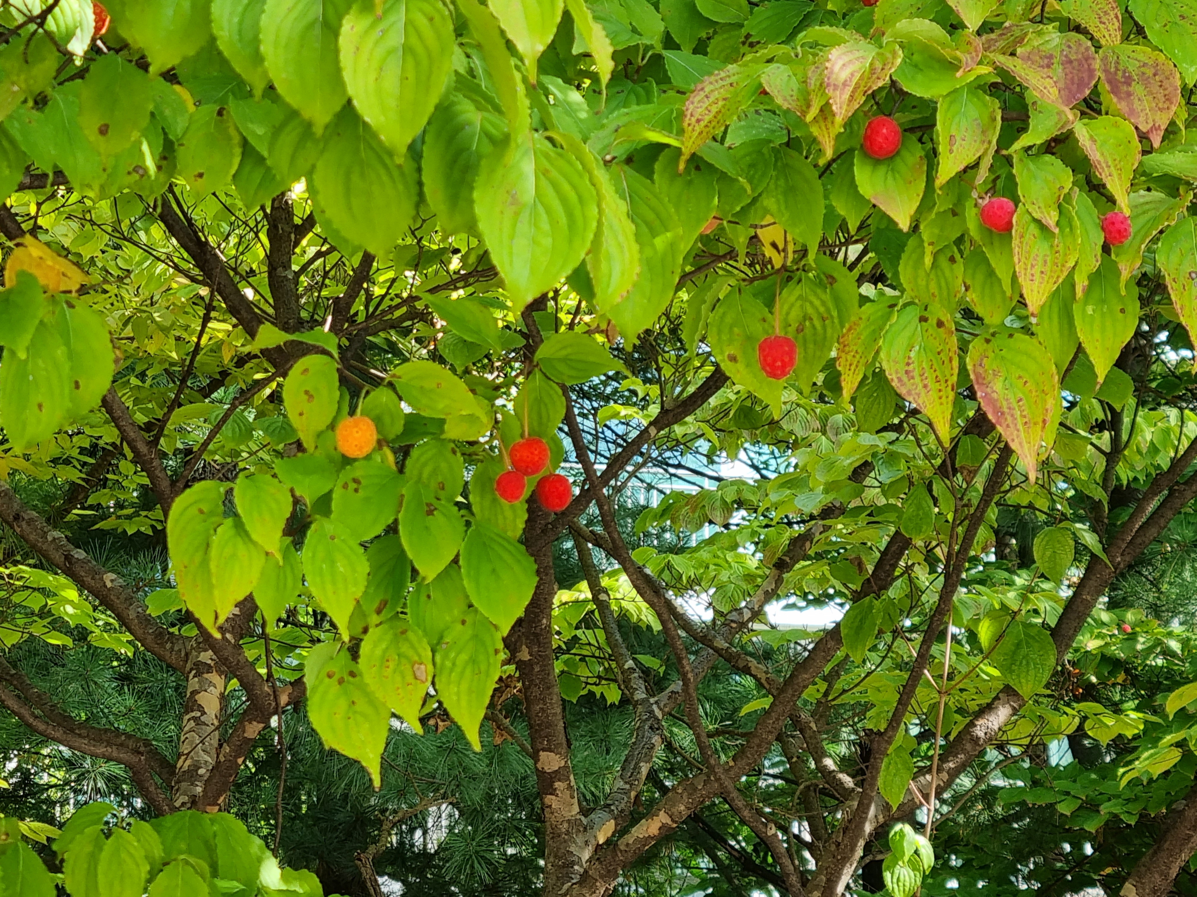 산딸 나무 열매도 선명한 붉은 빛을 띄며 점차 익어 가고있디