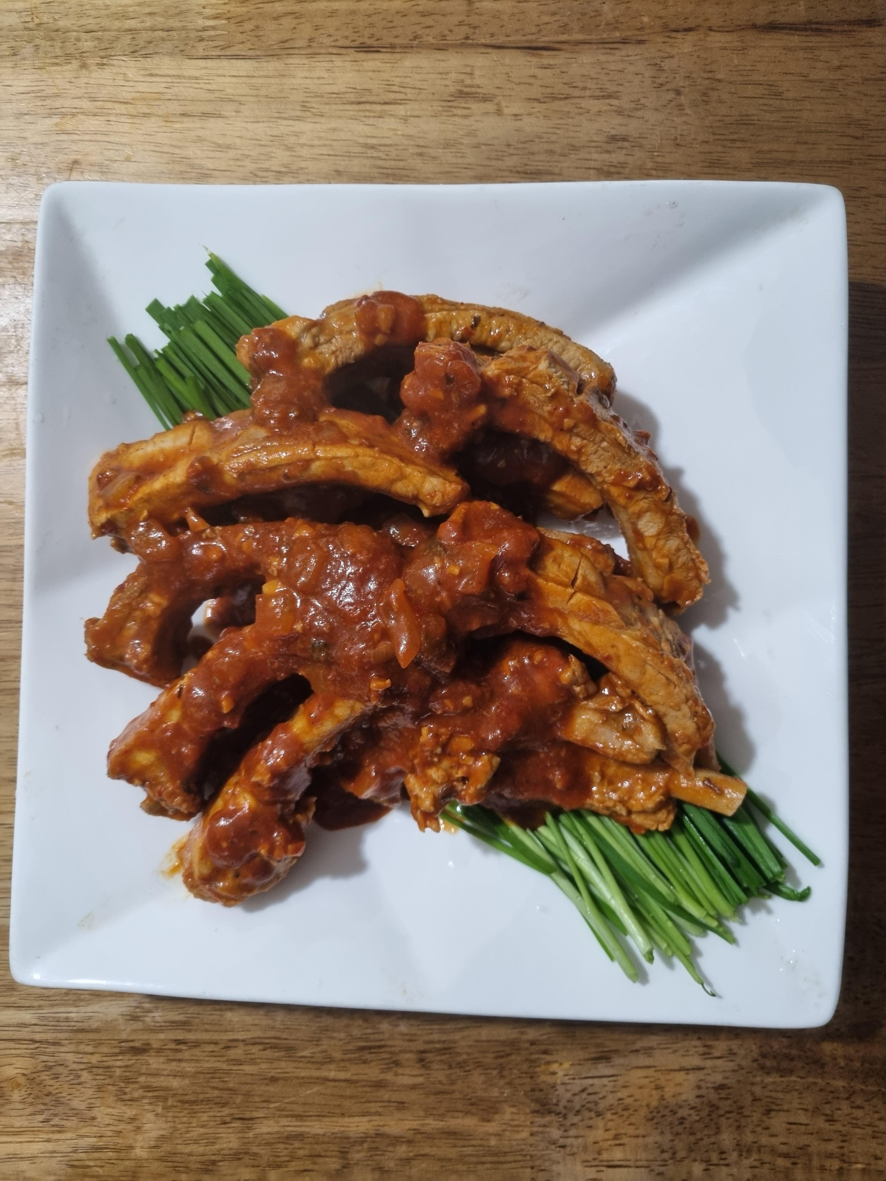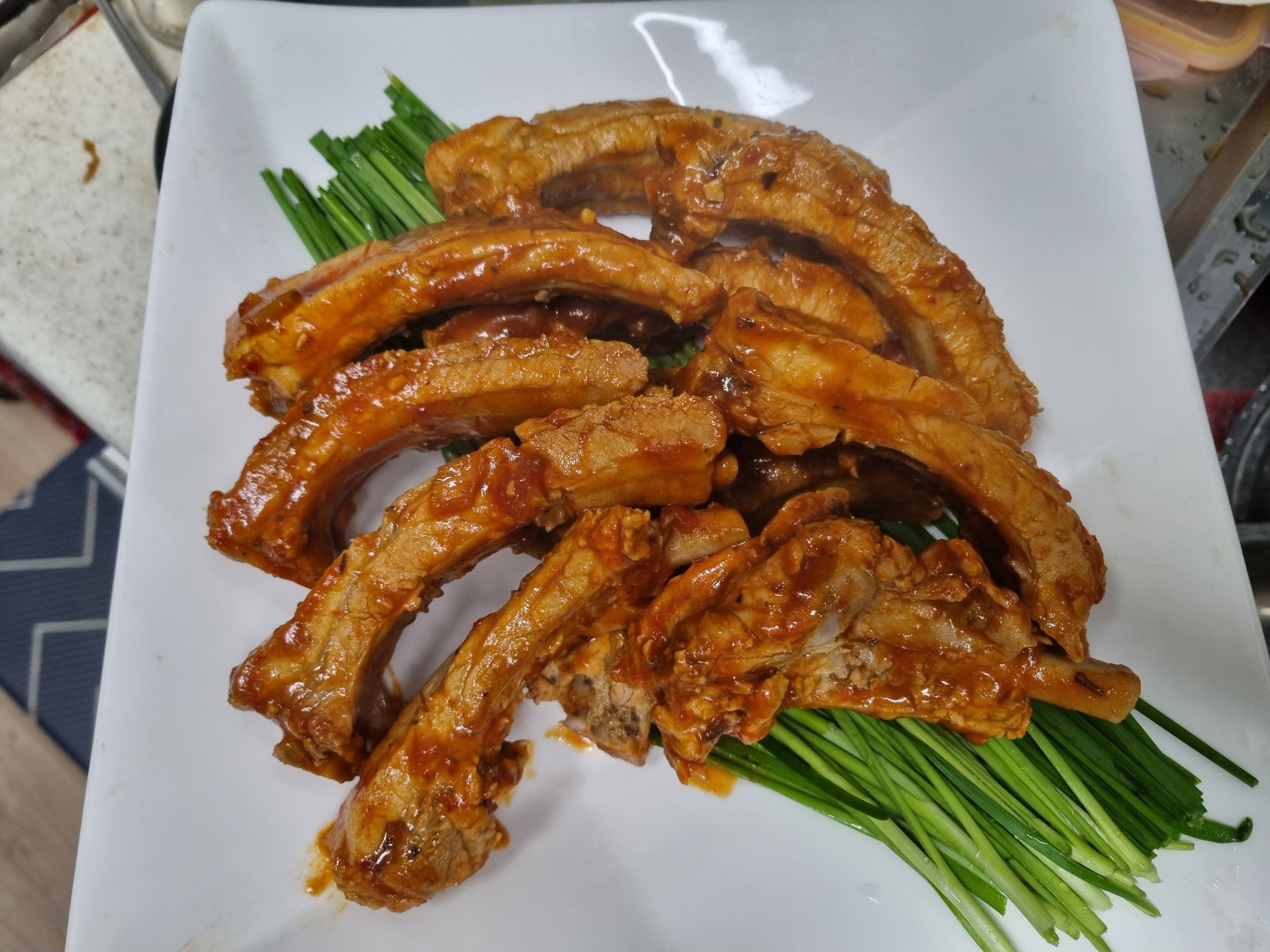 마트에서 장을 보던 중 제법 살집이 있는 돼지 등 갈비를 만났다