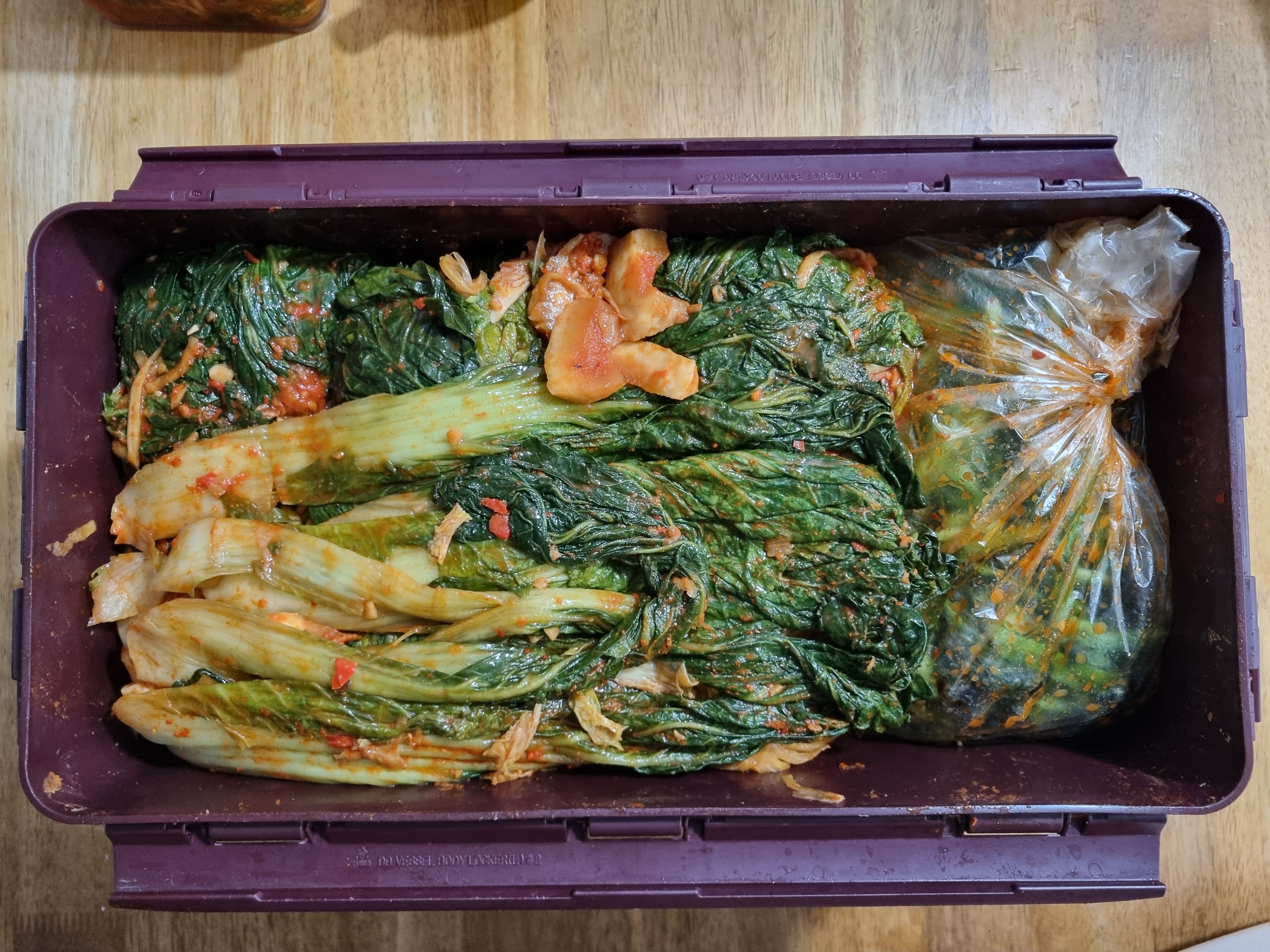 갓과 쪽파를 꺼내 함께 버무려 넣으면 김장이 될테다