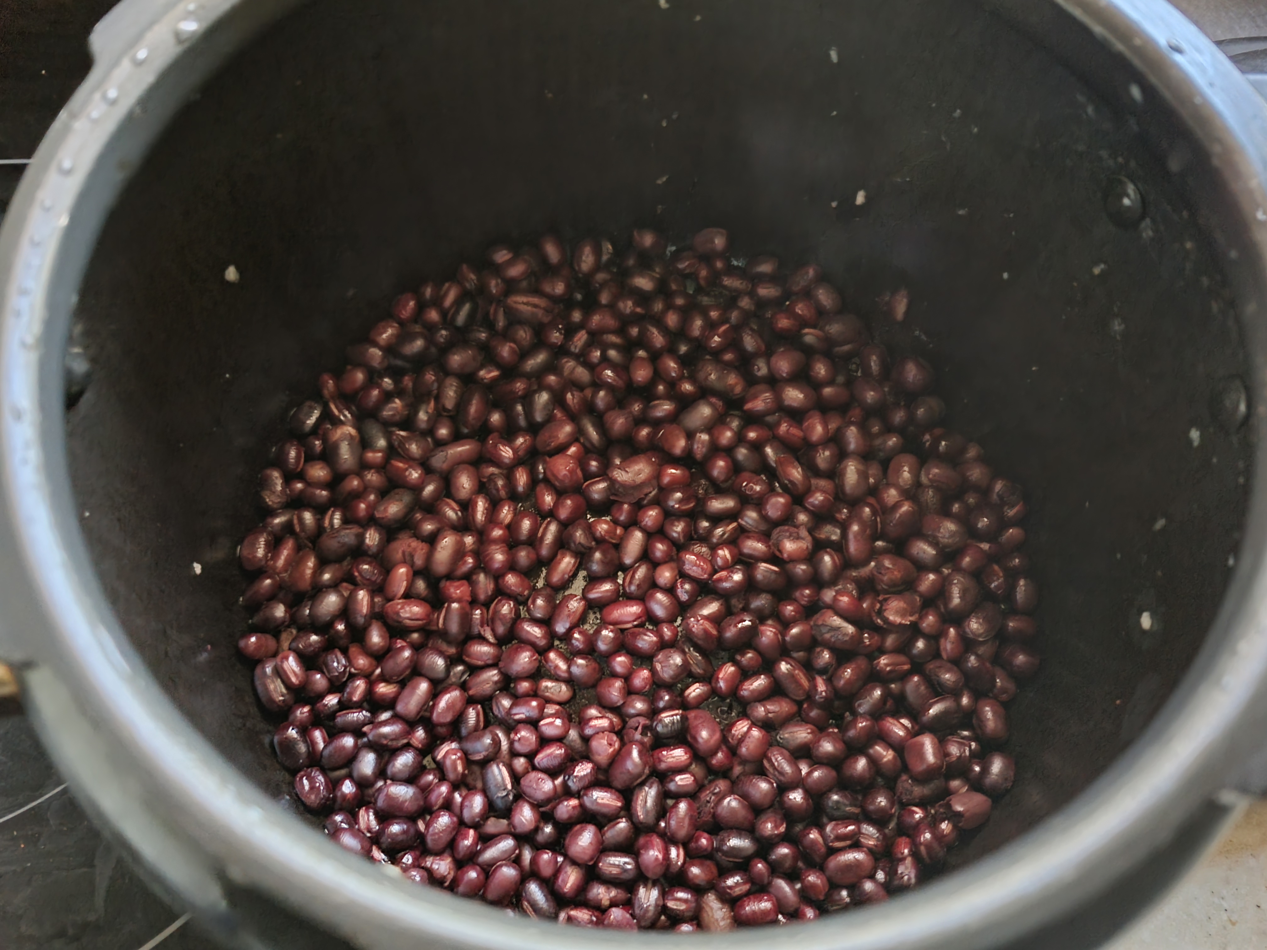 딸랑이 압력 솥에 안쳐 추 움직임 후 5분중 불 가열해 익혀뒀다