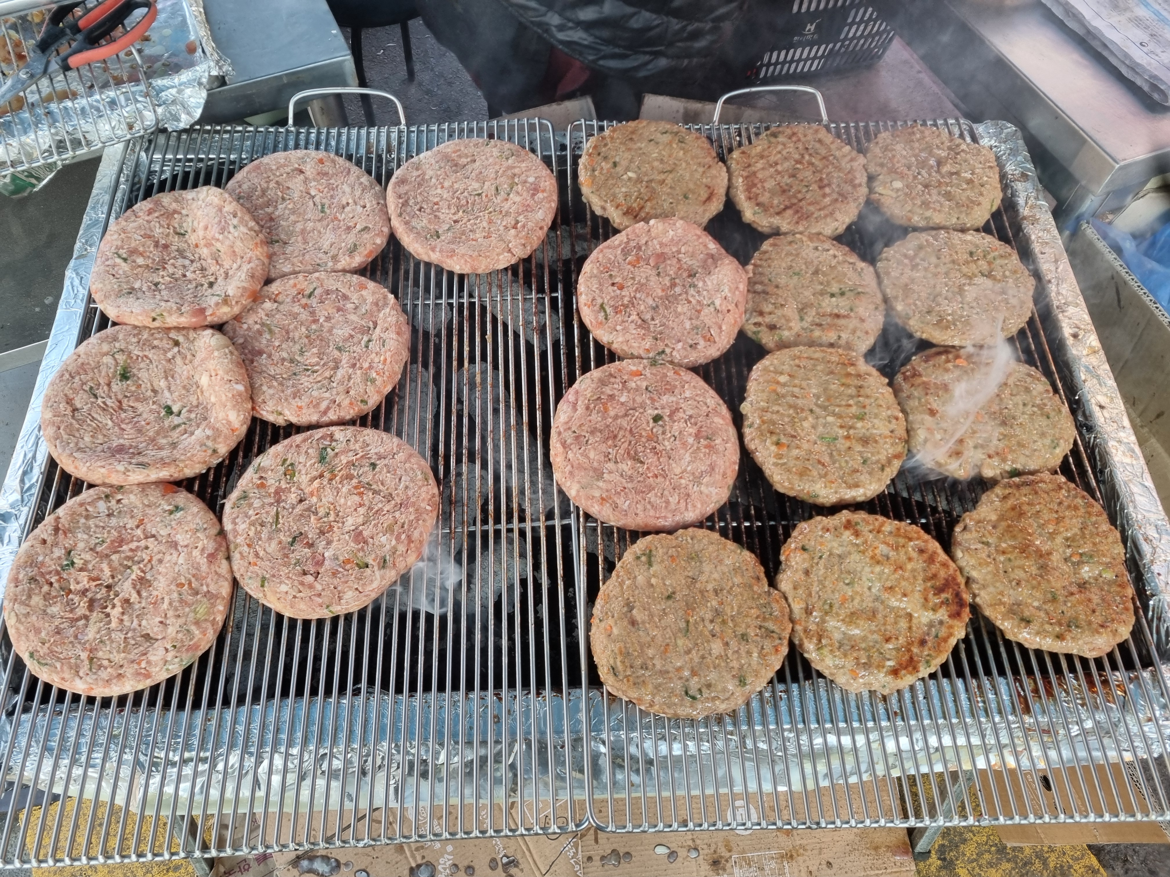 마트 앞에 난전에서 판매하고 있는 돼지고기 대형 동그랑땡