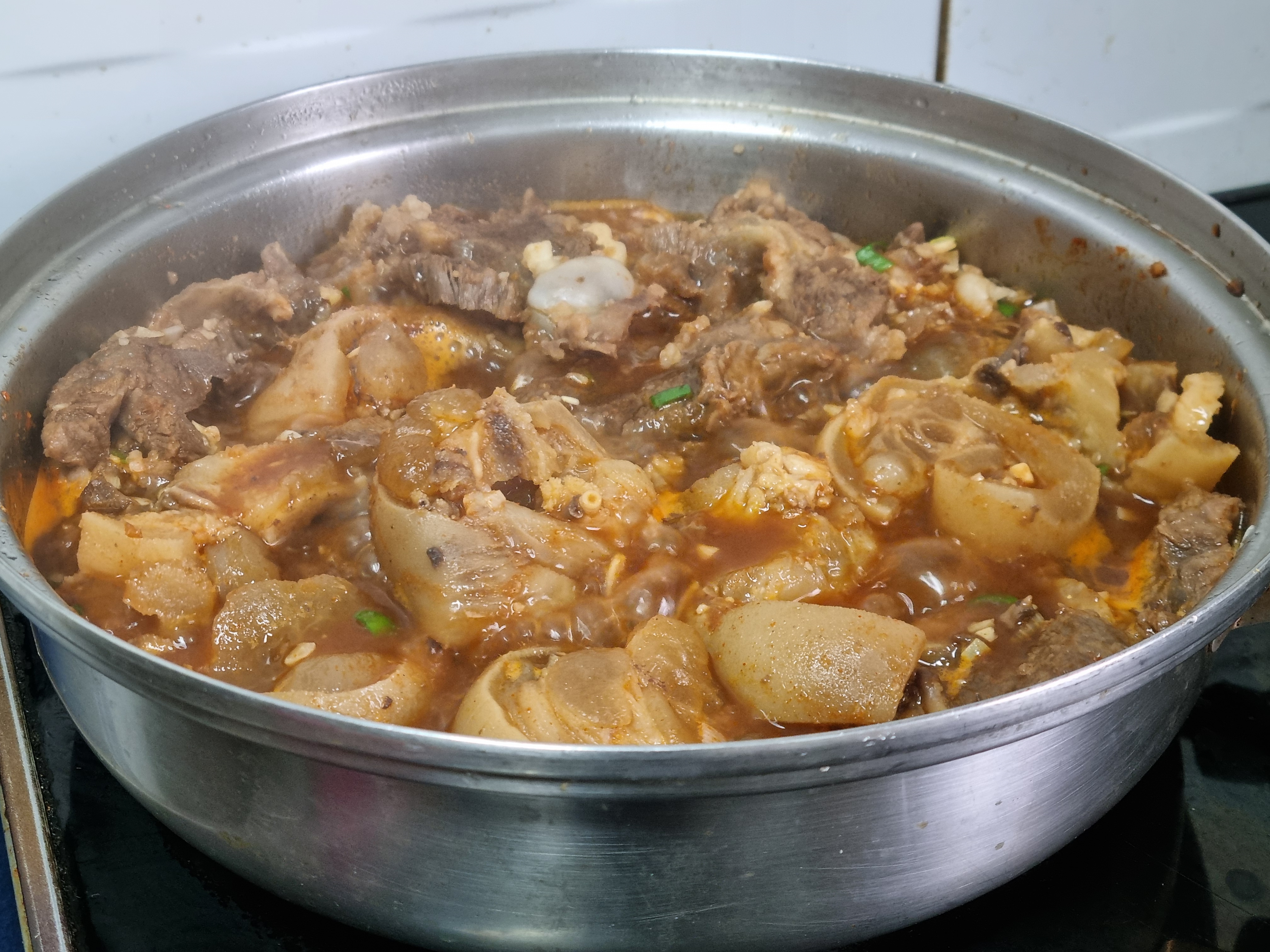 끓여 식은뒤 기름 걷어내고 족찜 까지 마치고 나니