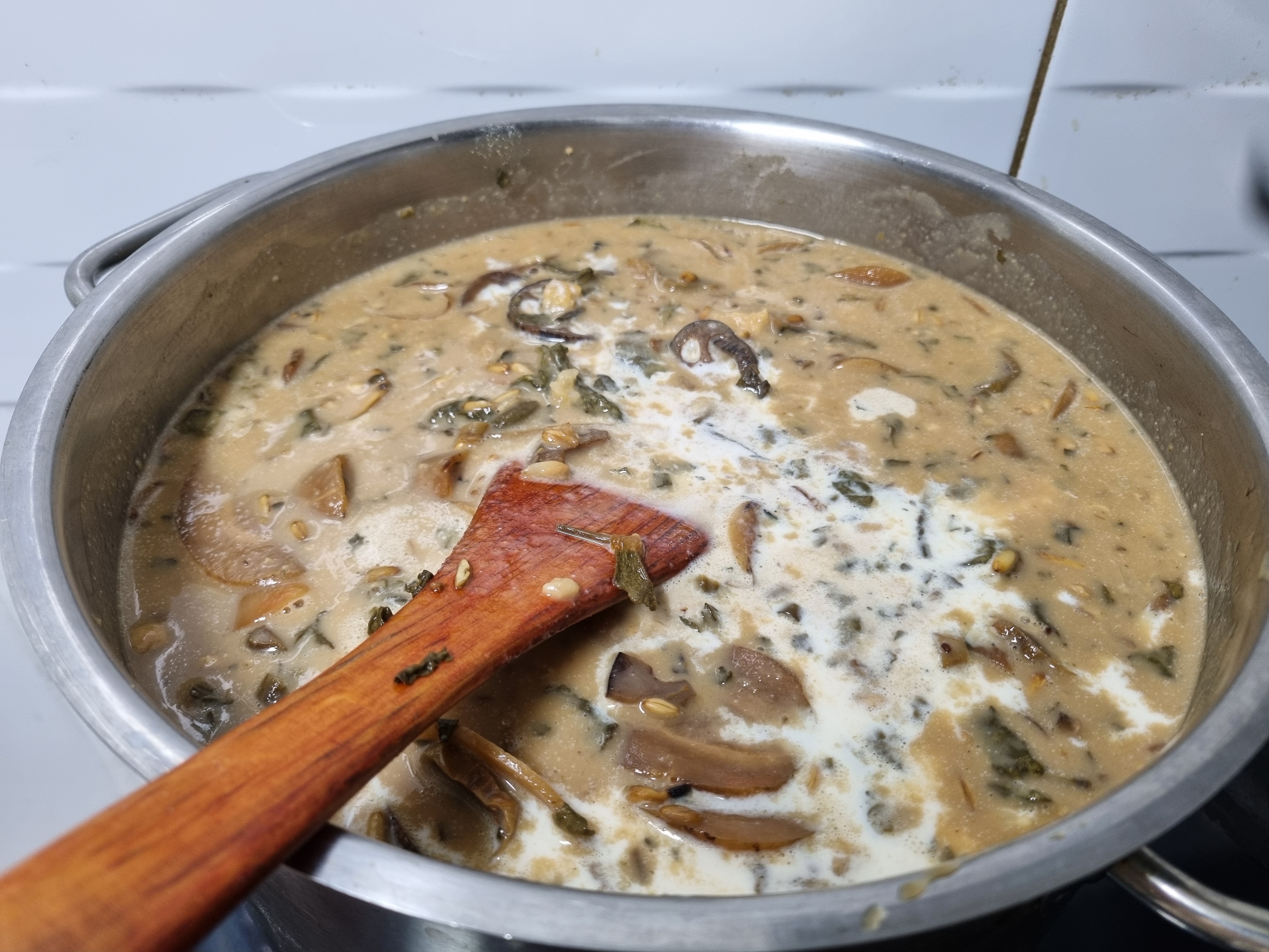 우유 1.2리터. 양송이 스프 분말 150g. 누룽지 100g을 더해