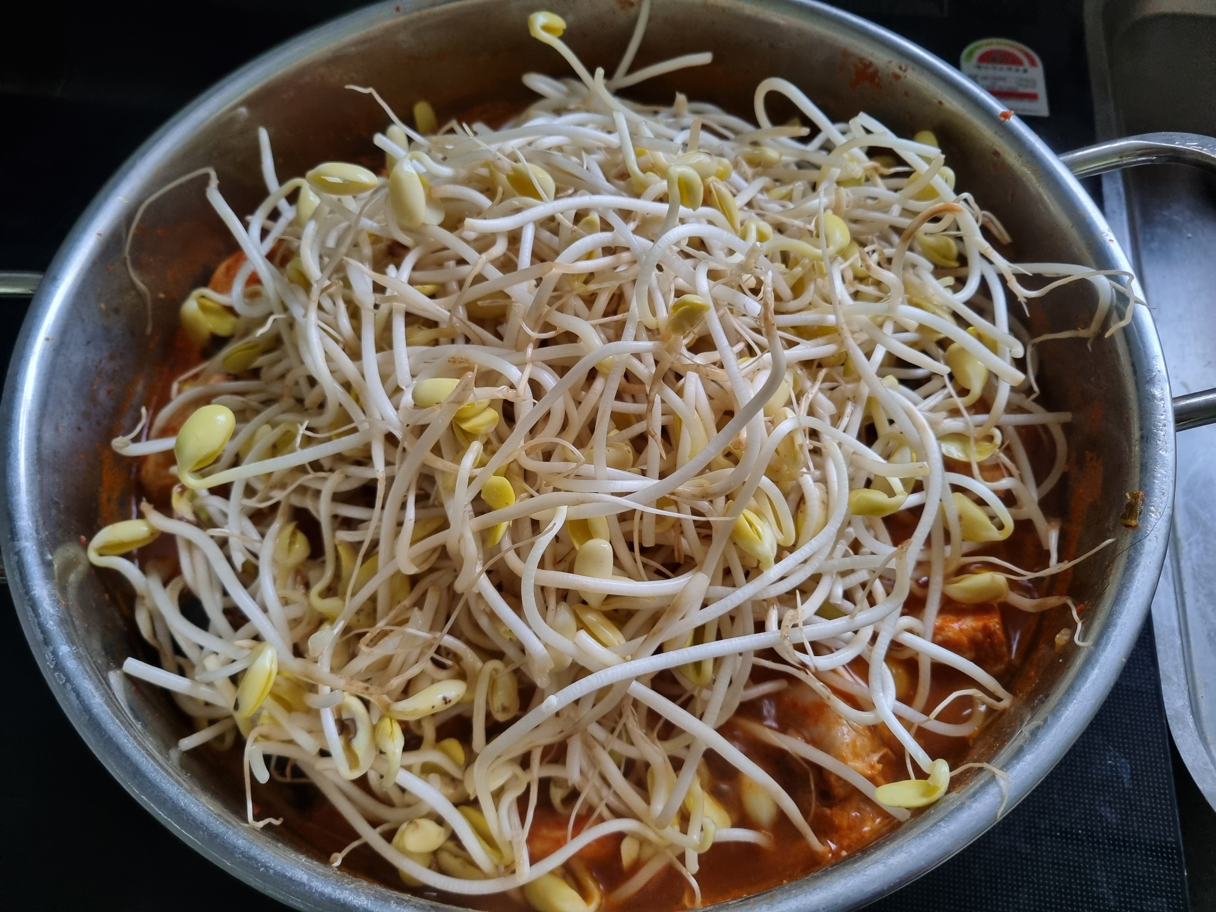 (콩나물을 넣고 3분쯤 더 끓였다)