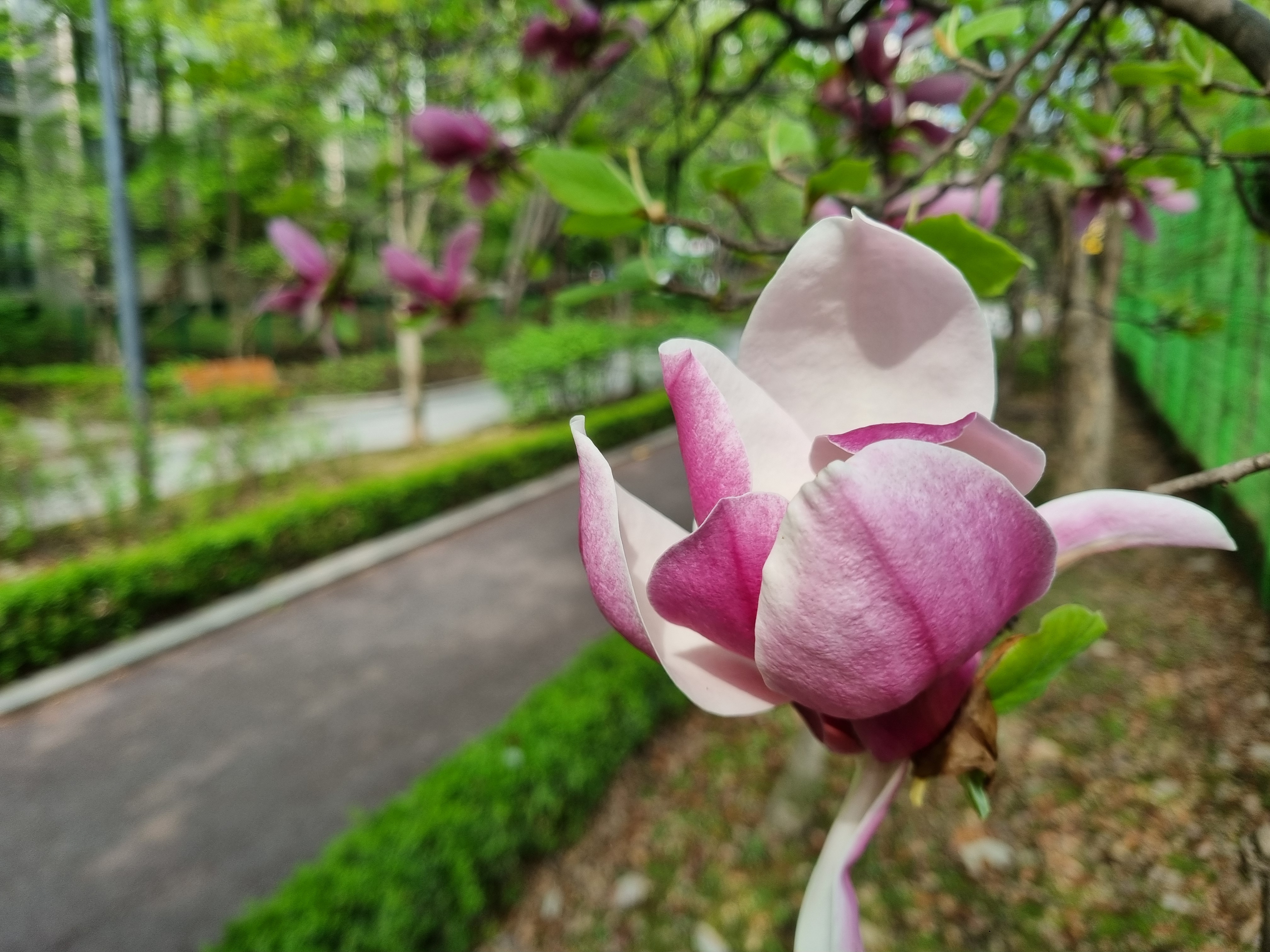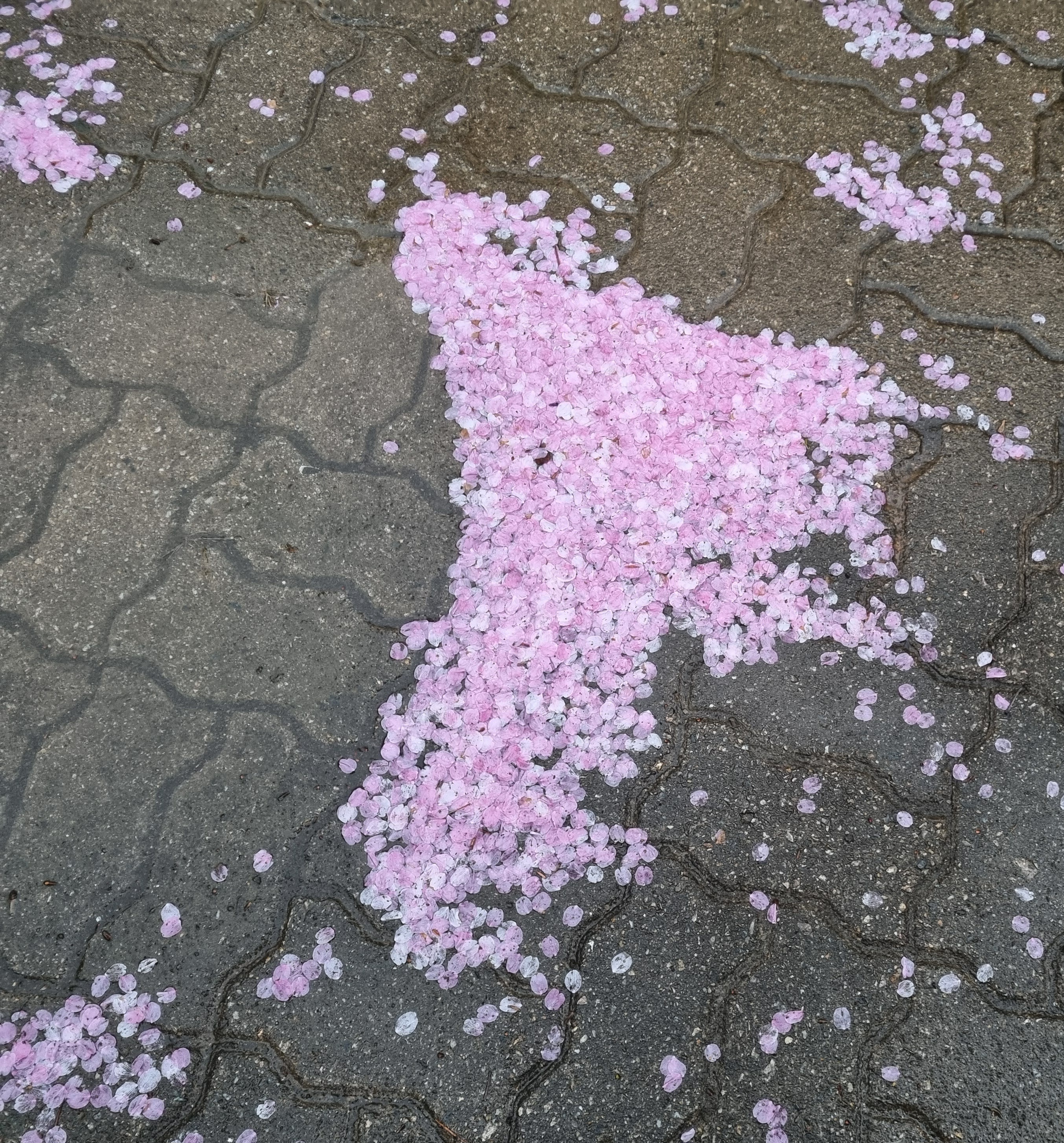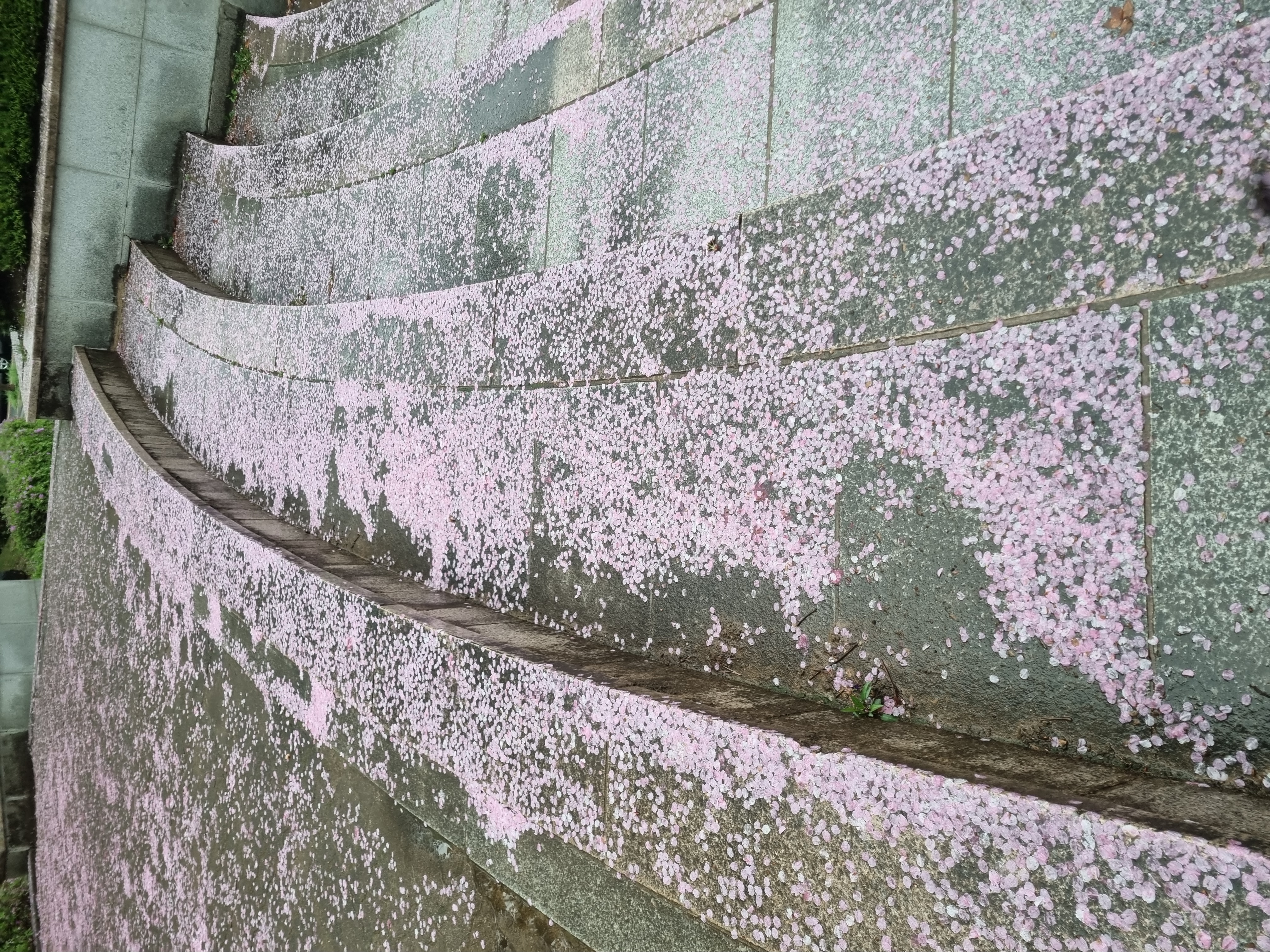 비 그친뒤 오른 공원 바닥엔 곱디 고운 벚꽃 잎들이