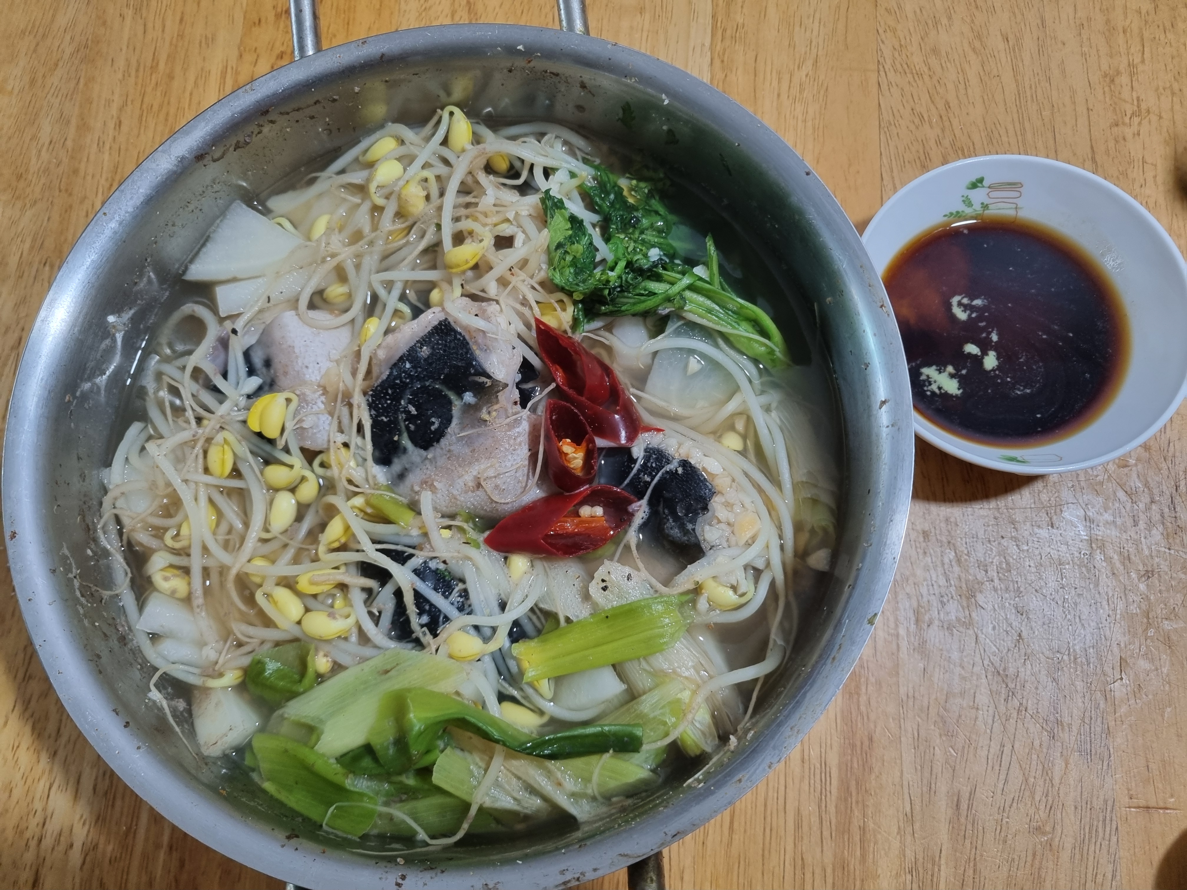 콩나물. 무. 미나리(쑥갓)을 넣고 끓임 된단다