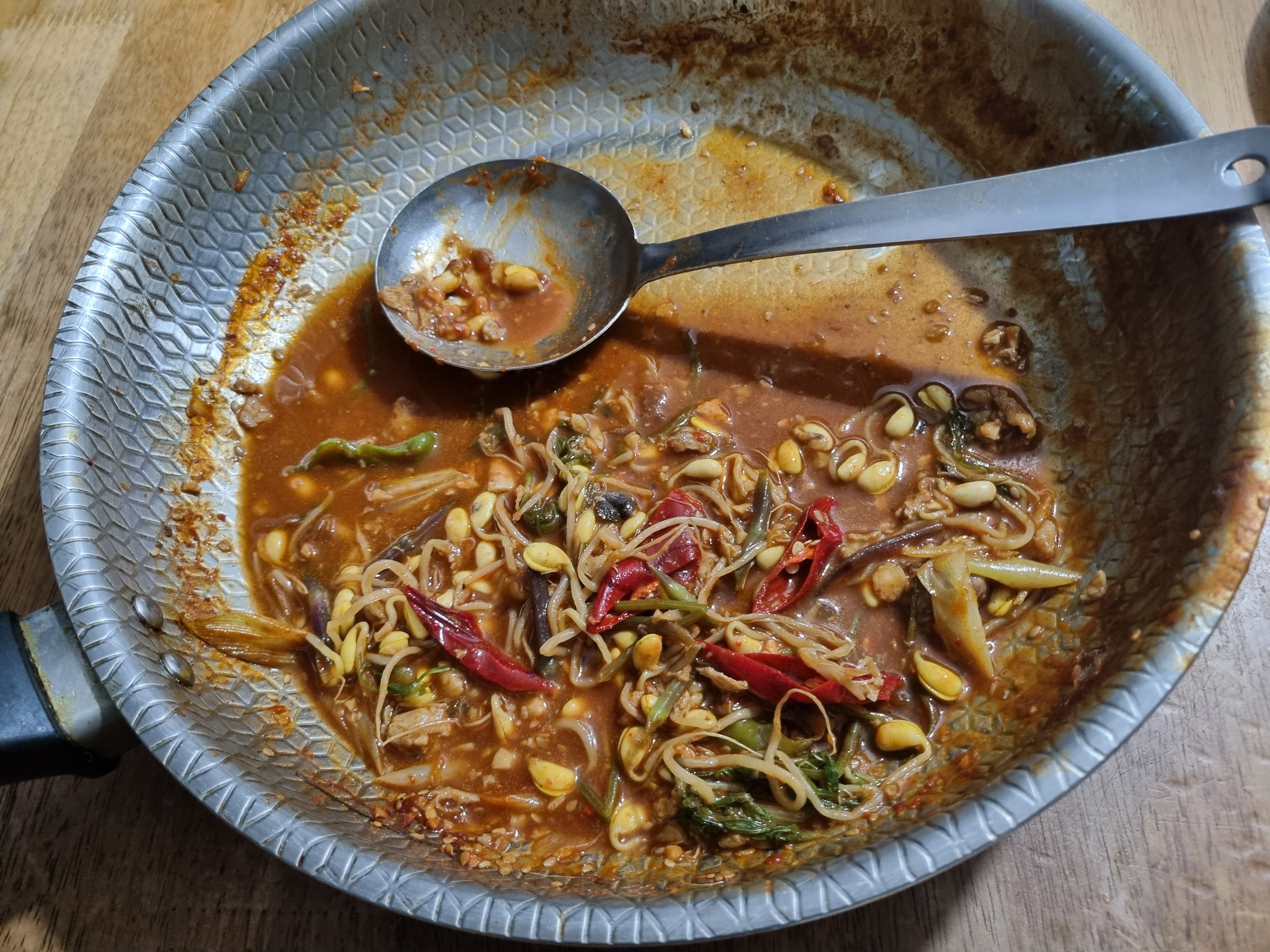 녹말 푼 양념장을 부어 한소끔 끓여 완성했다