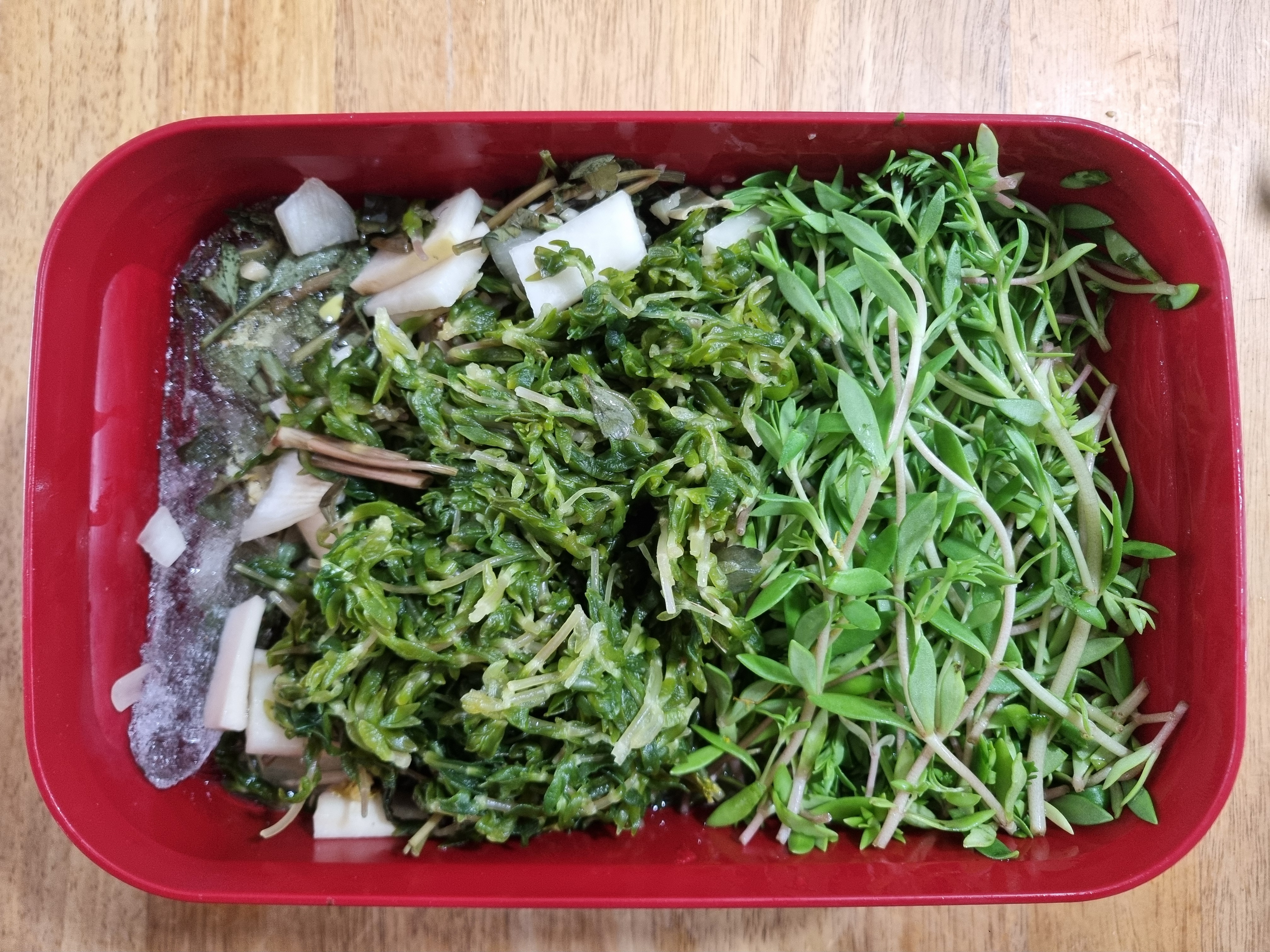돌나물. 돌갓. 민들레. 씀바귀. 달래 여유롭게 채취한 걸 묻으며 올해의 날라리 김치가 진즉에 시작됐다