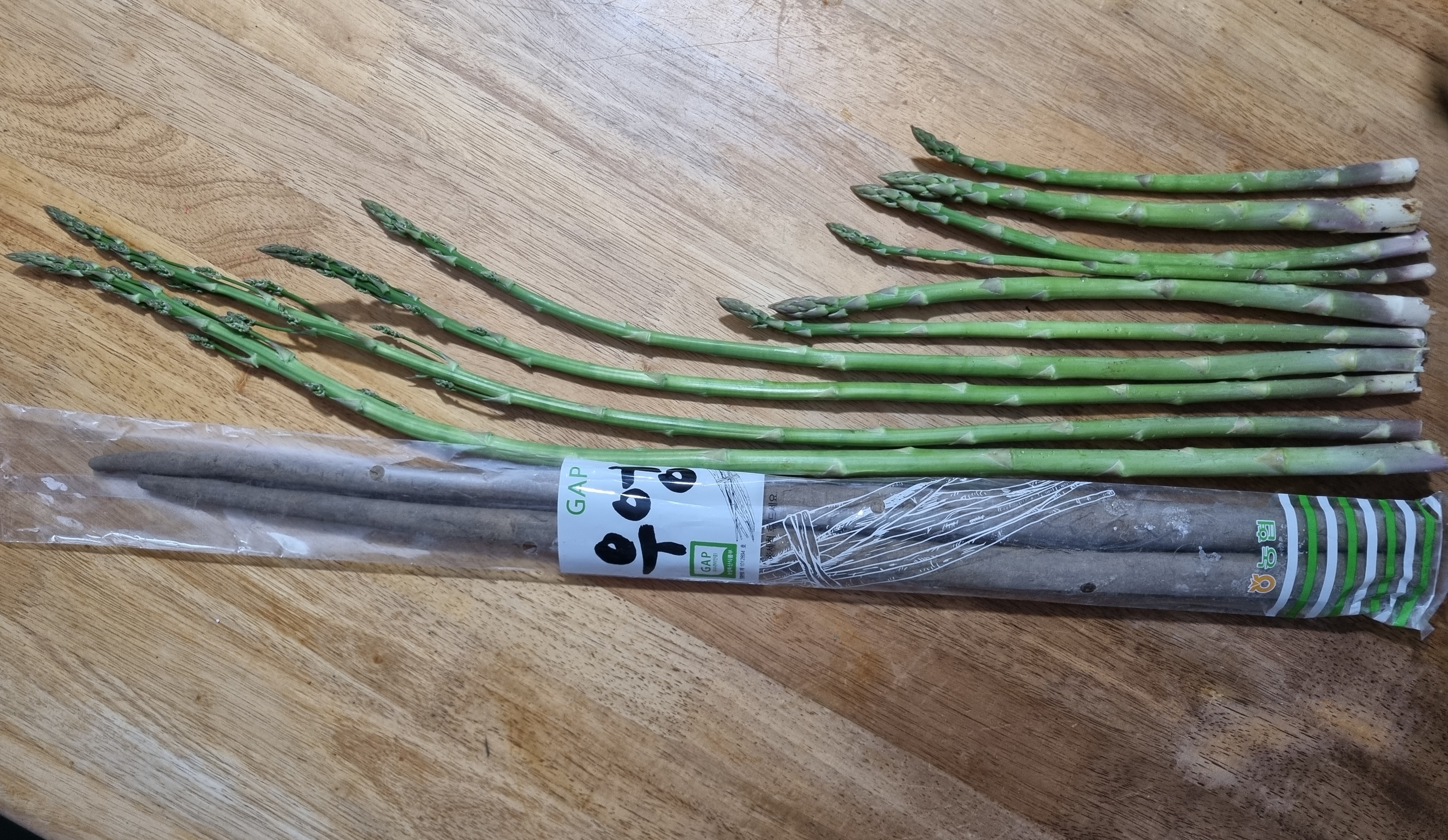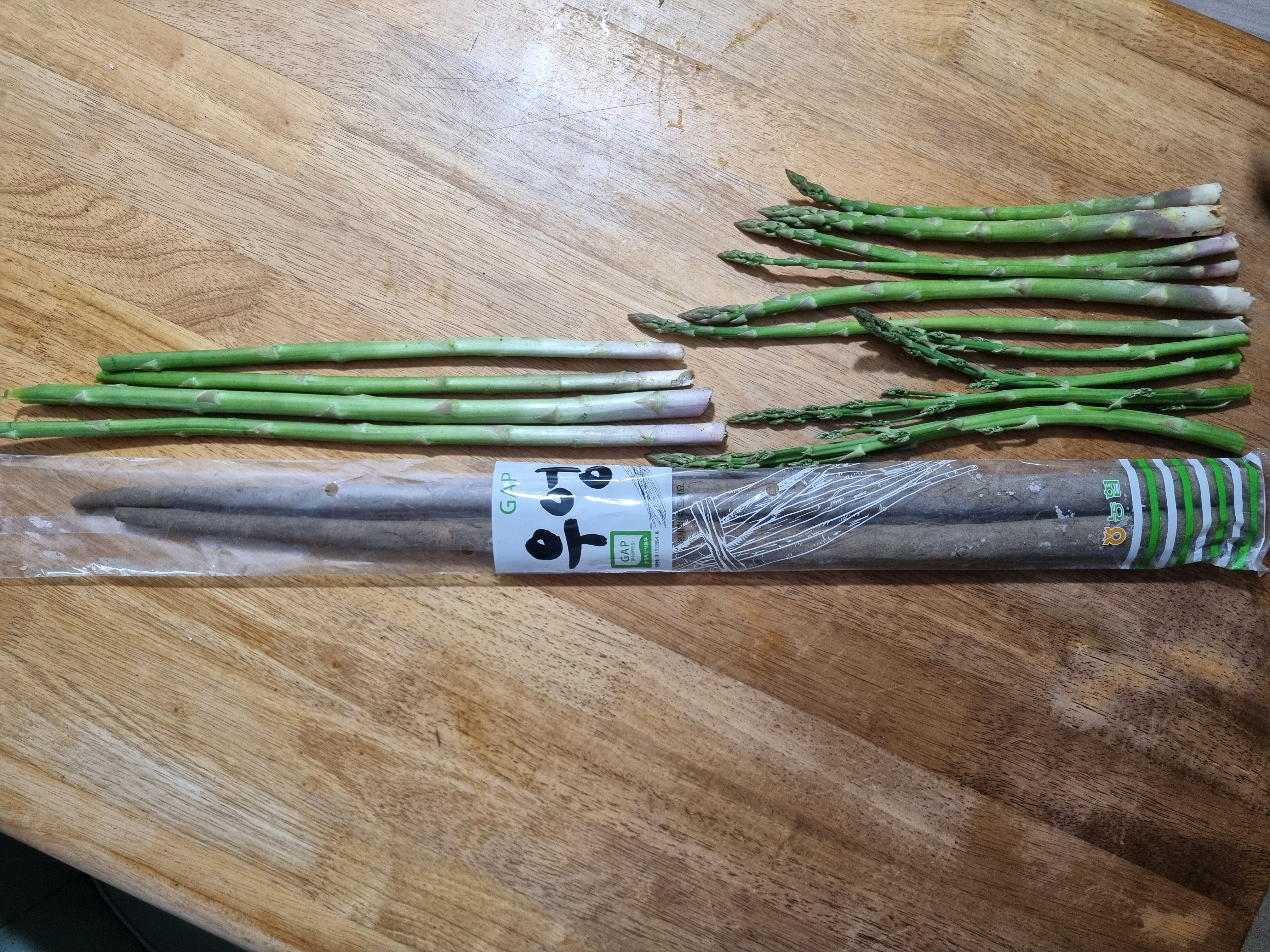 5일만에 딴 아스파라거스는 그간 억세도록 높이 자랐다