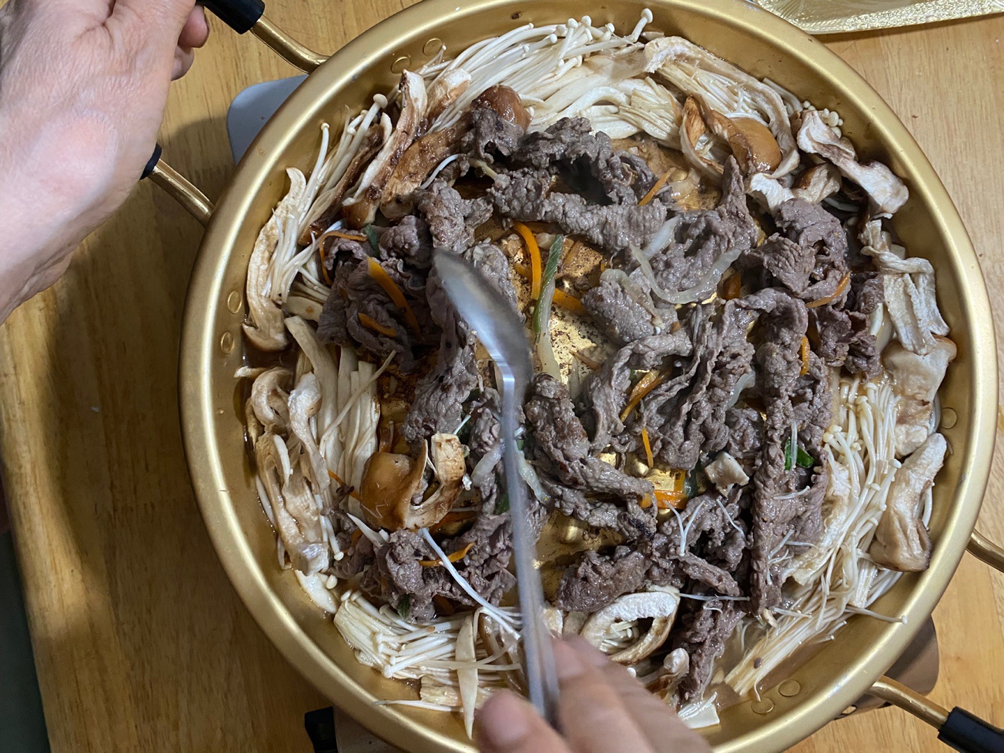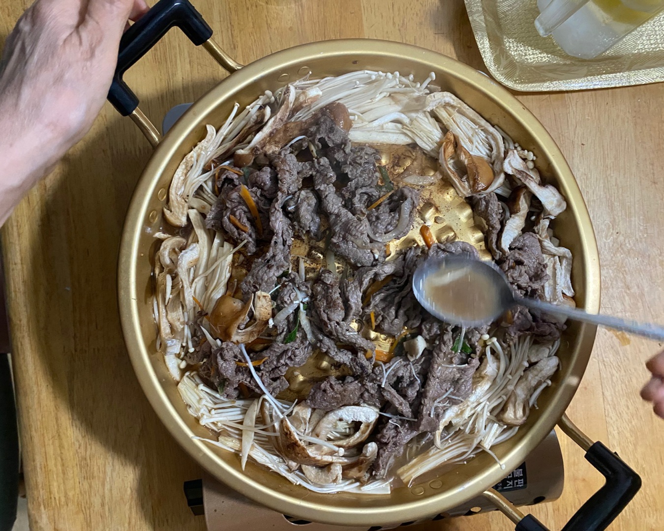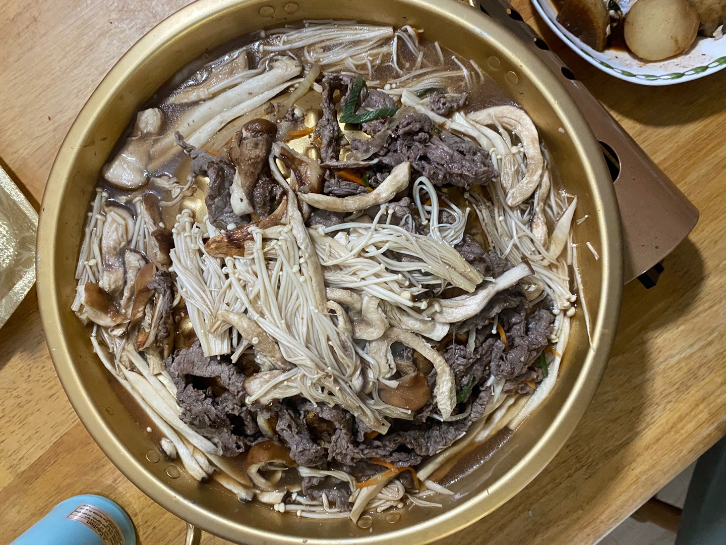 고기는 한우. 대파도 넉넉히 버섯 3종 까지 넣었으니 맛있다