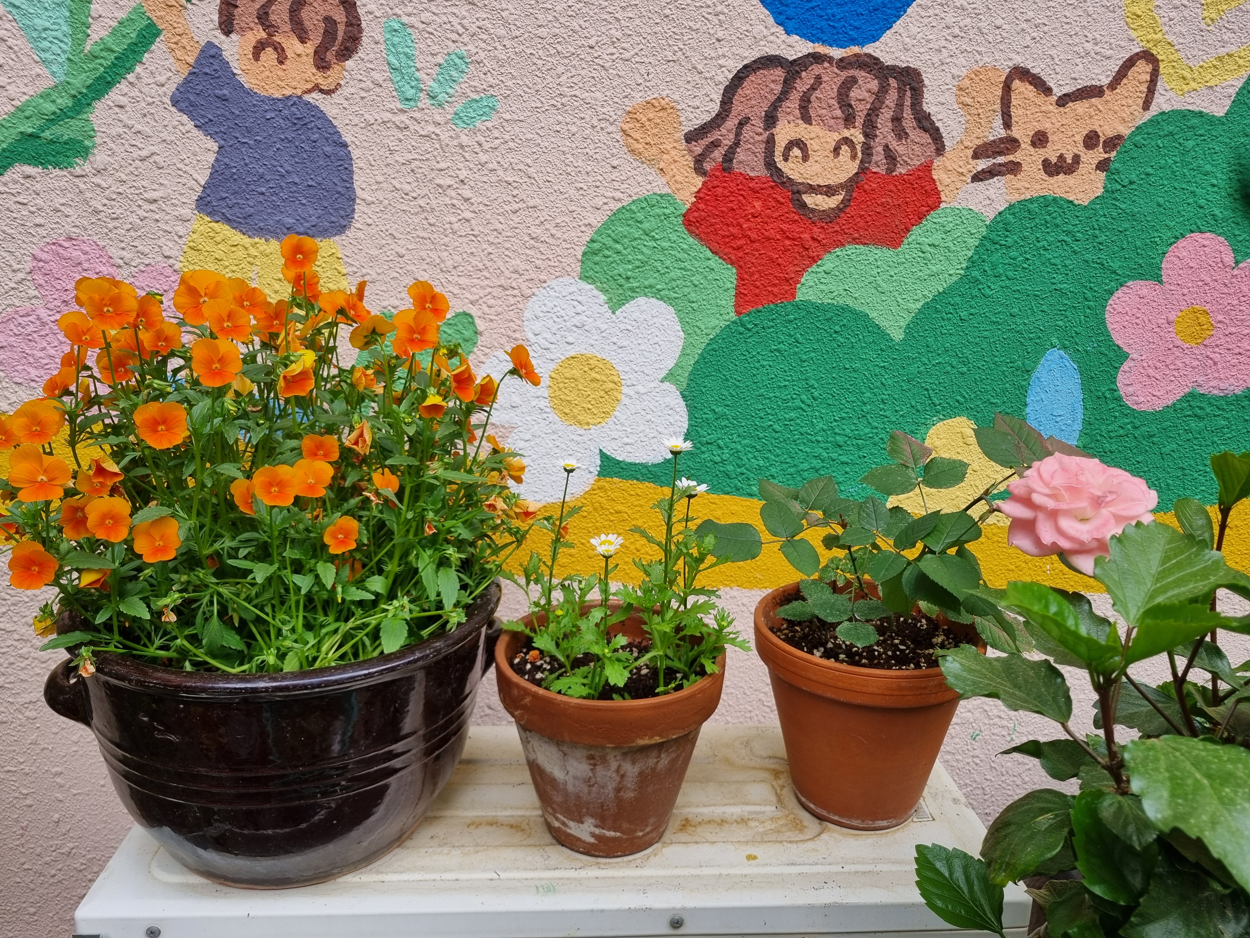 아주 큰  대형 화분  3개와 항아리 3개 들어다 놓았다
