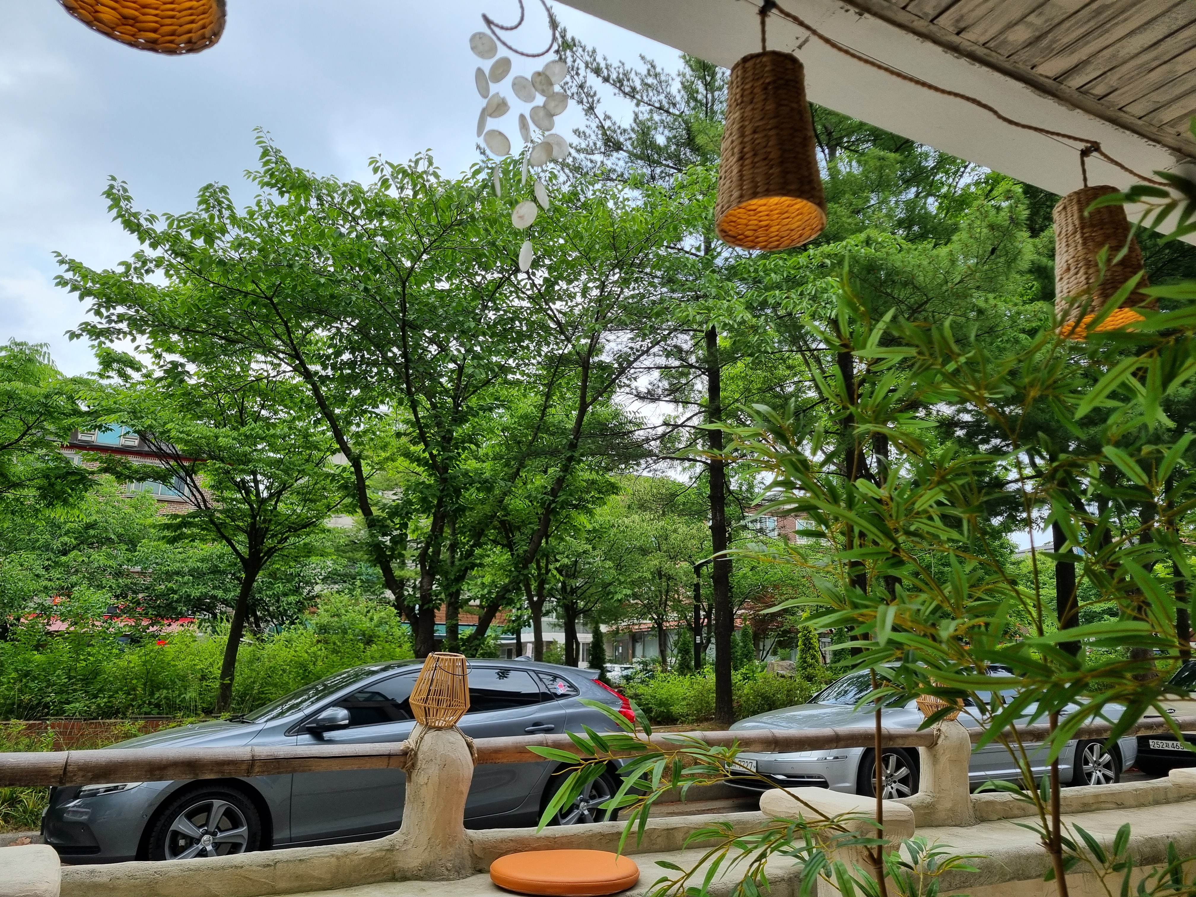 카페 공간에서 시원한 자연 바람을 맞으며 보낸 시간이 좋다
