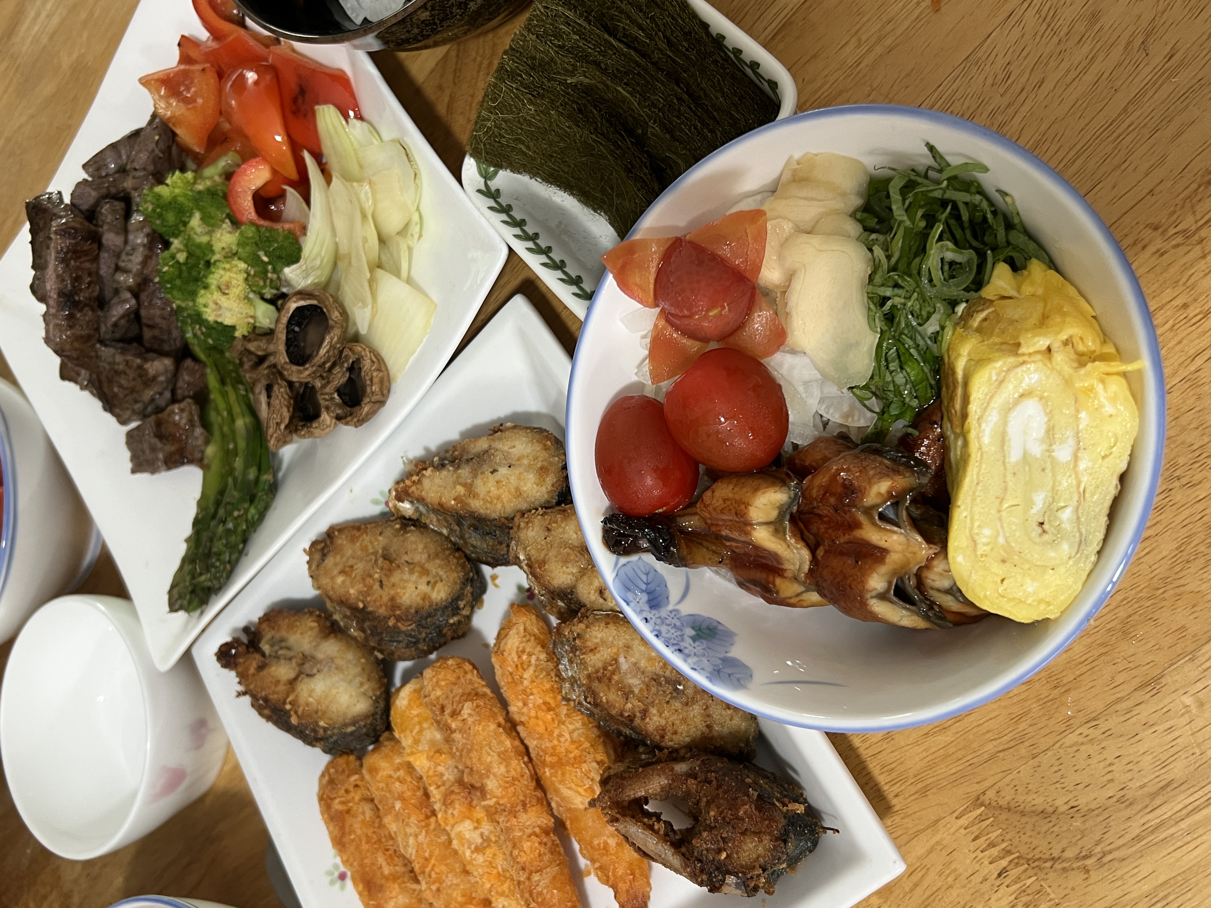 아들의 생일날엔 장어 밥. 양식 소고기 구이. 새우. 삼치를 튀겼다