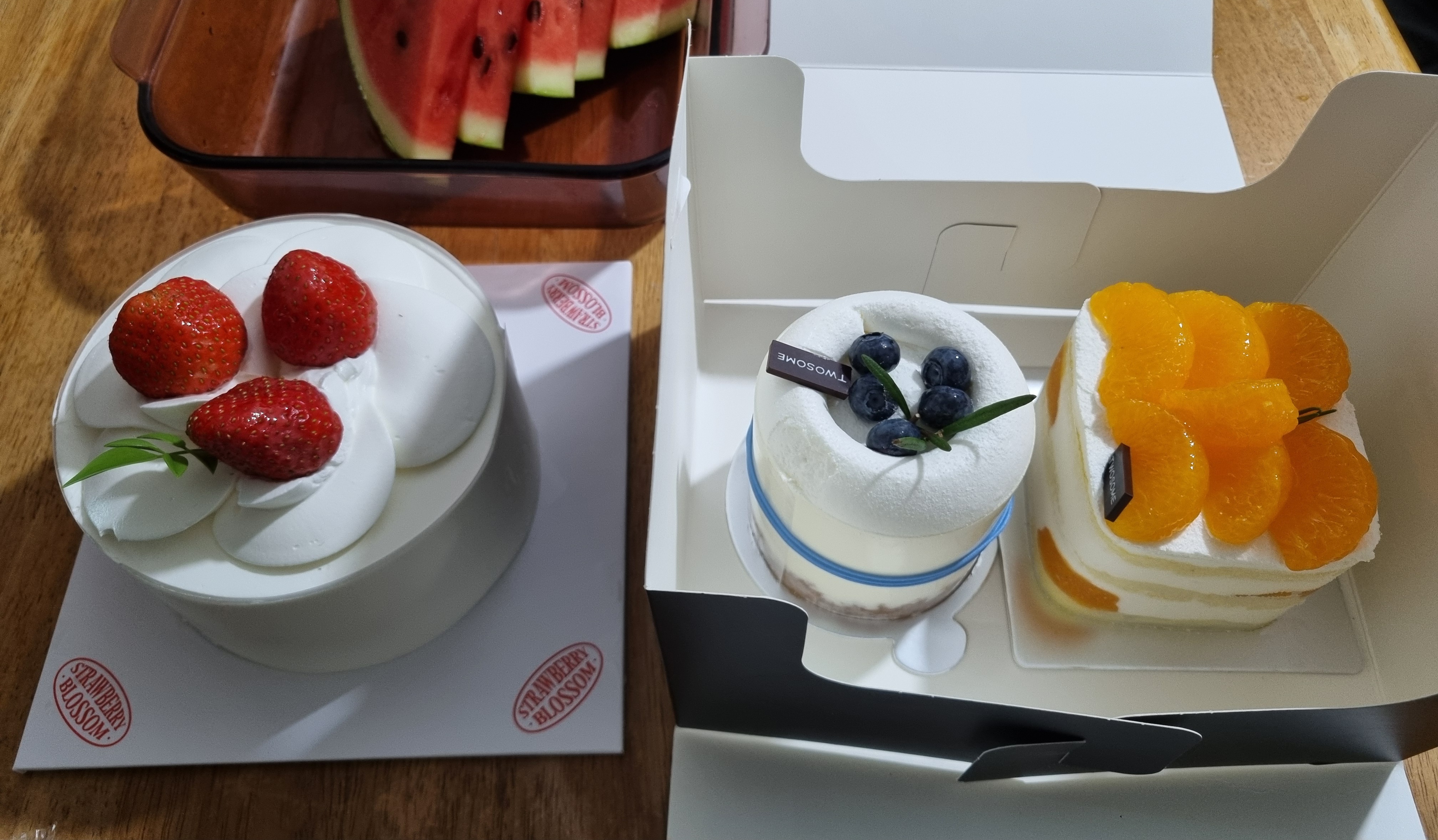 케이크는 작지만 남편이 사 오고 아들도 사 오니 3개나 됐다