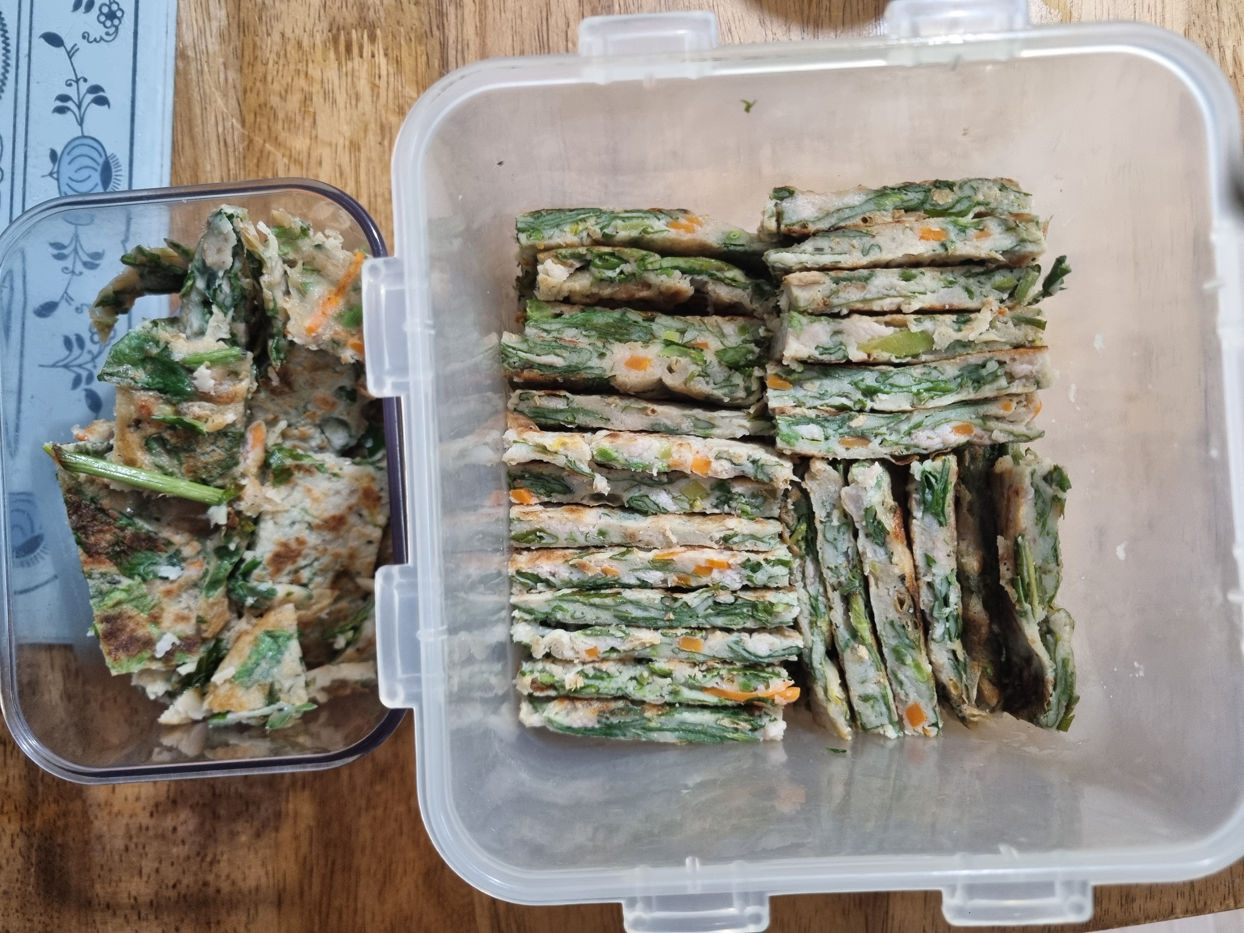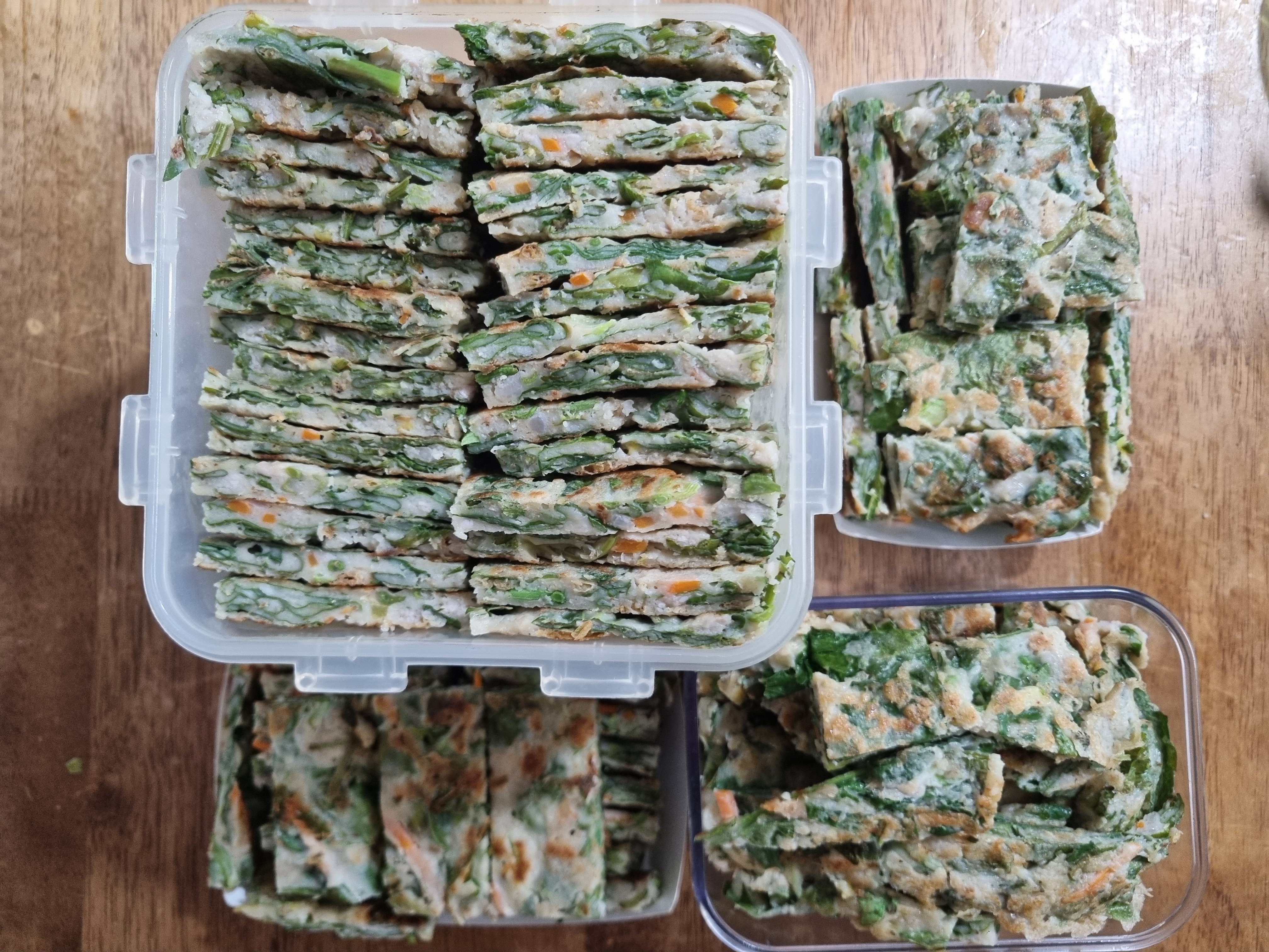 (10장 나온 전은 썰어 큰통에 담긴 것은 아침에 조금씩 나누어 데워 아침 식사용이고