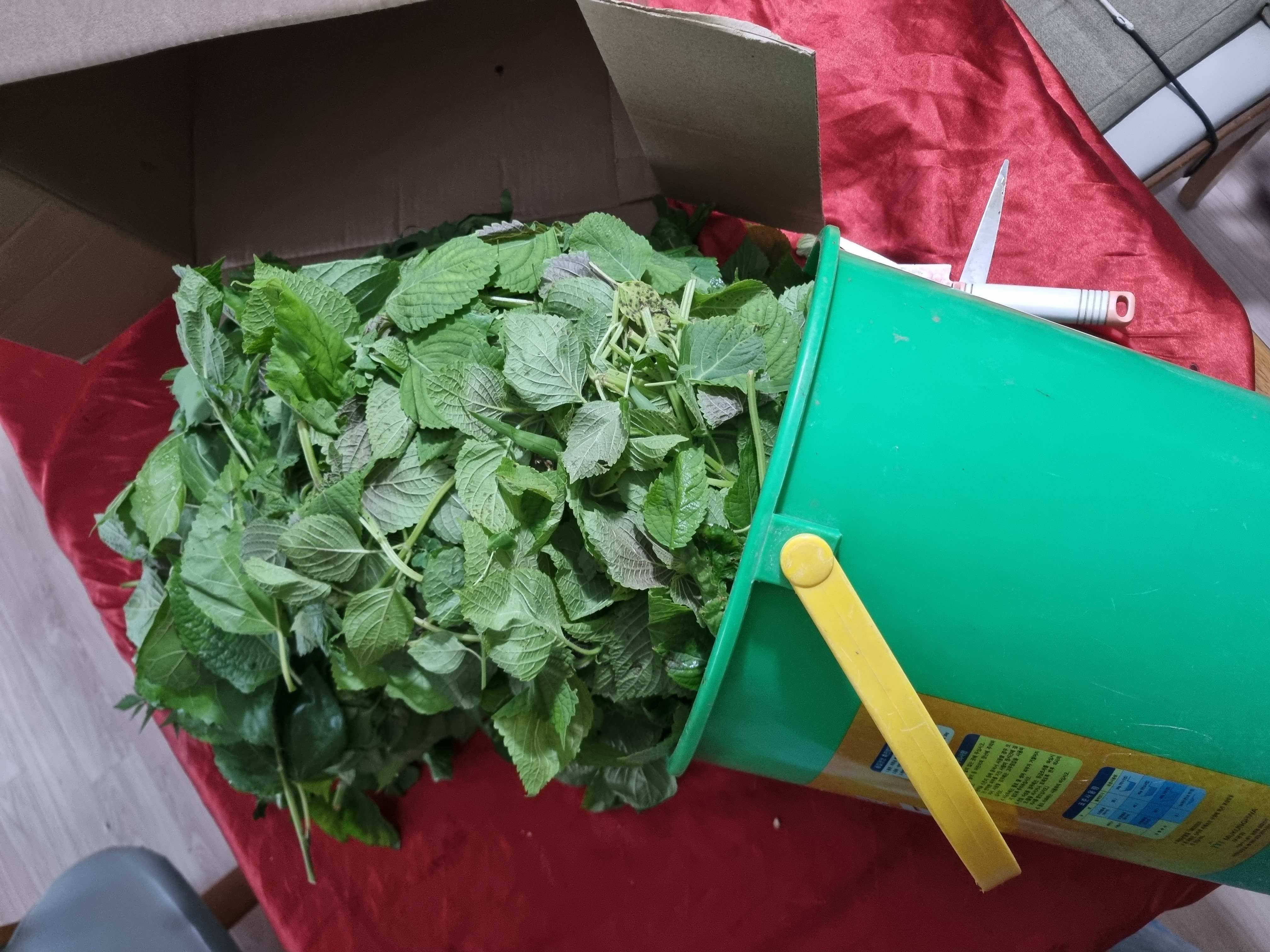 (수확물은 적지 않아 노란 손잡이 통에 담았던 것을 쏟아 내니