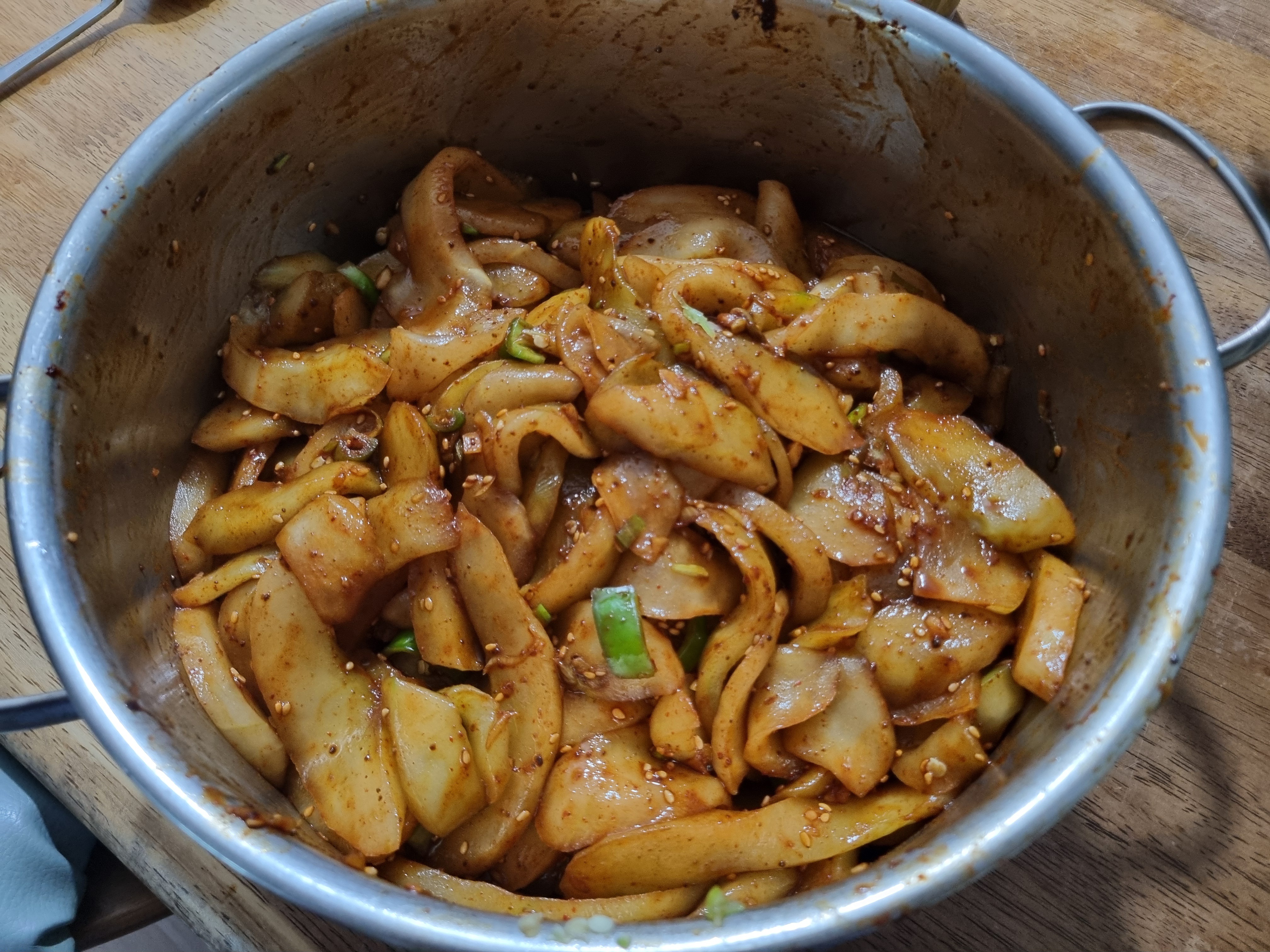 오이 썰어 절여 오이 생재 무침 하고 나니
