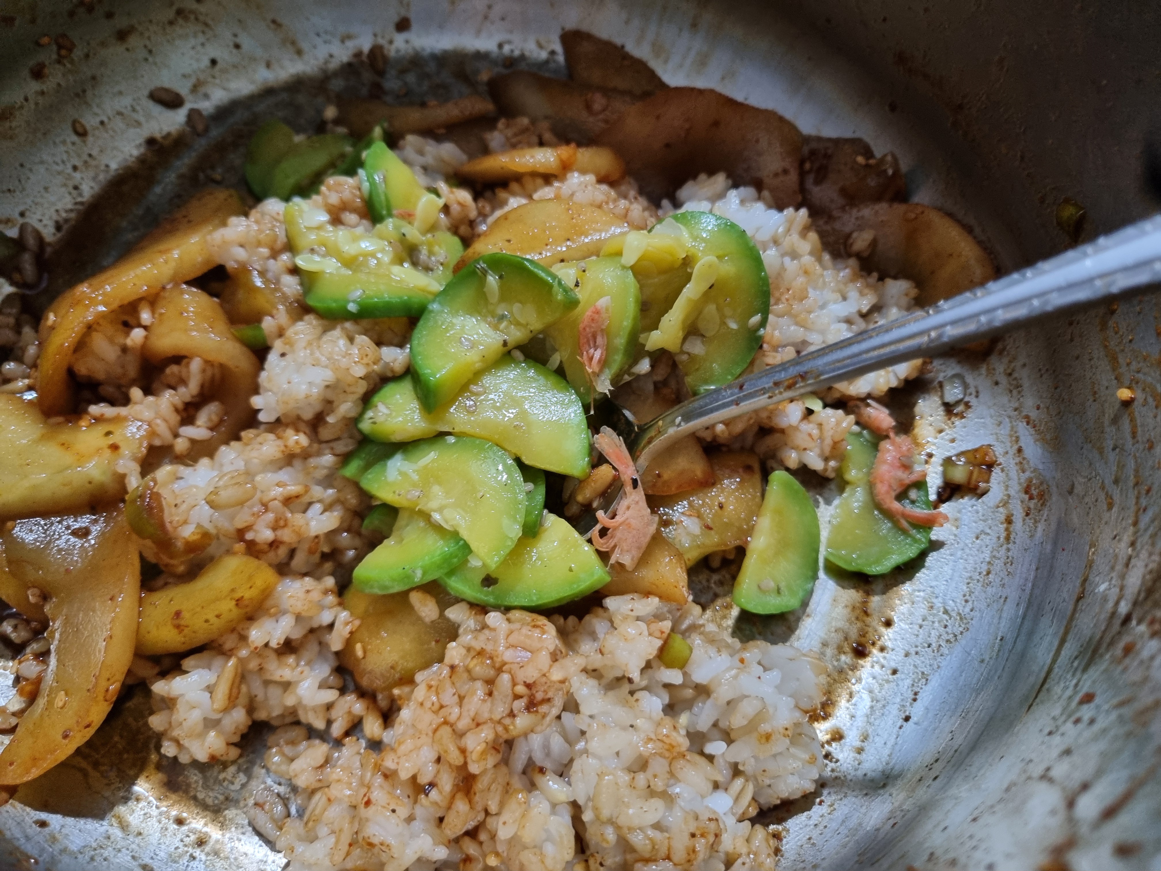 호박. 오이 잔뜩 넣고 무침 솥단지에 밥 넉넉히 넣어