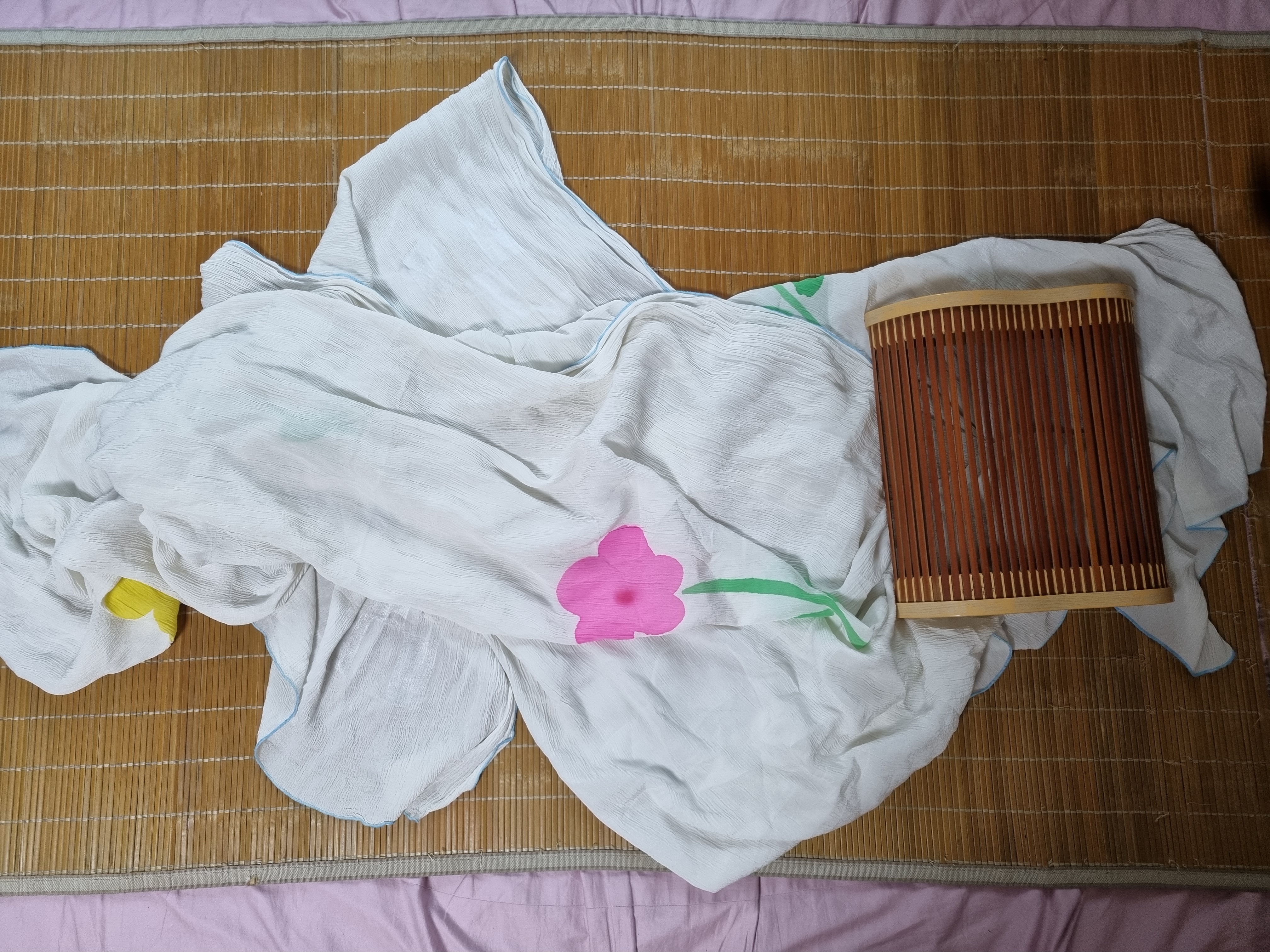 대자리. 대나무 베개. 인견 이불 덕분에 한밤 몆번 깨긴 했지만