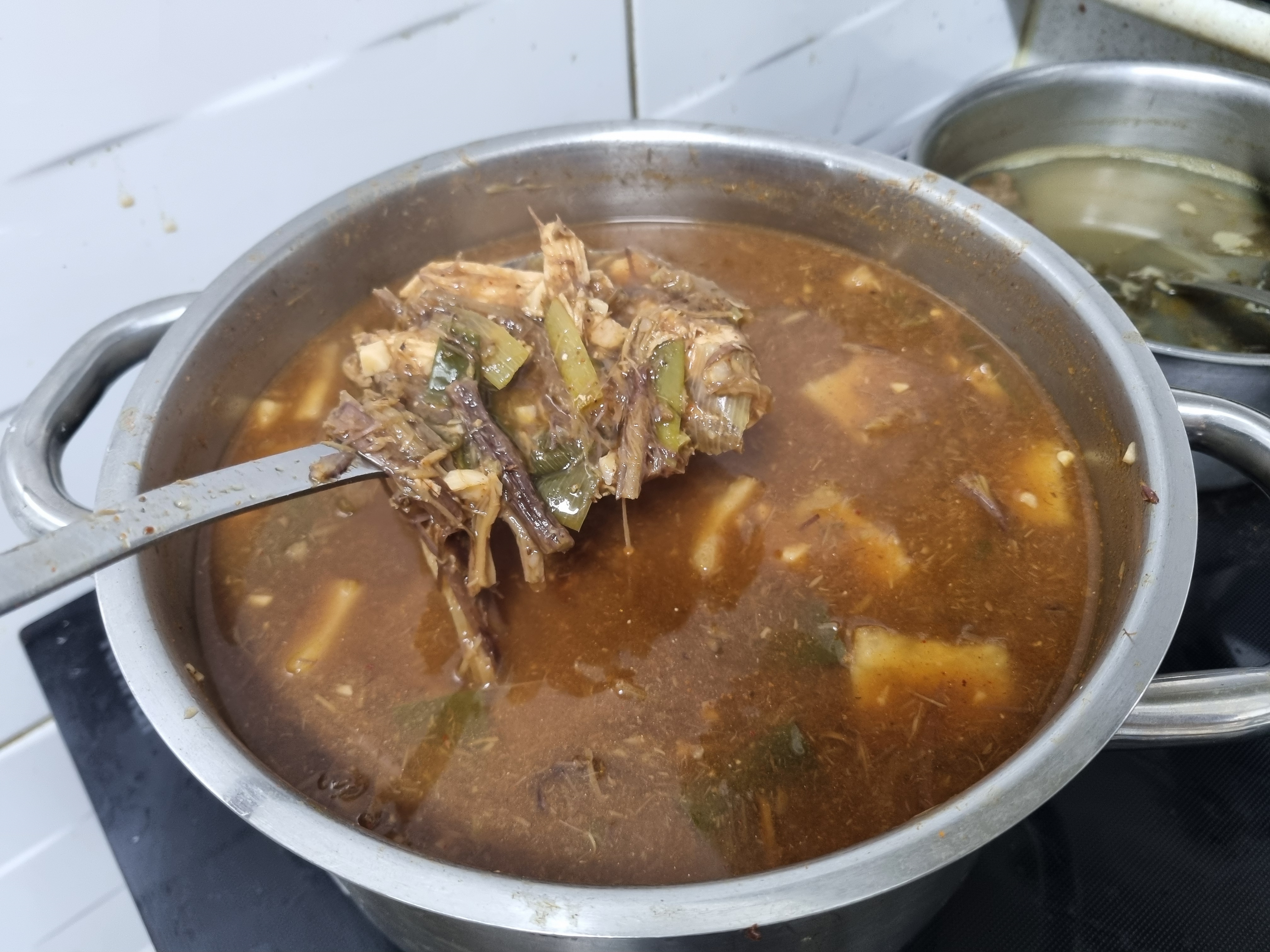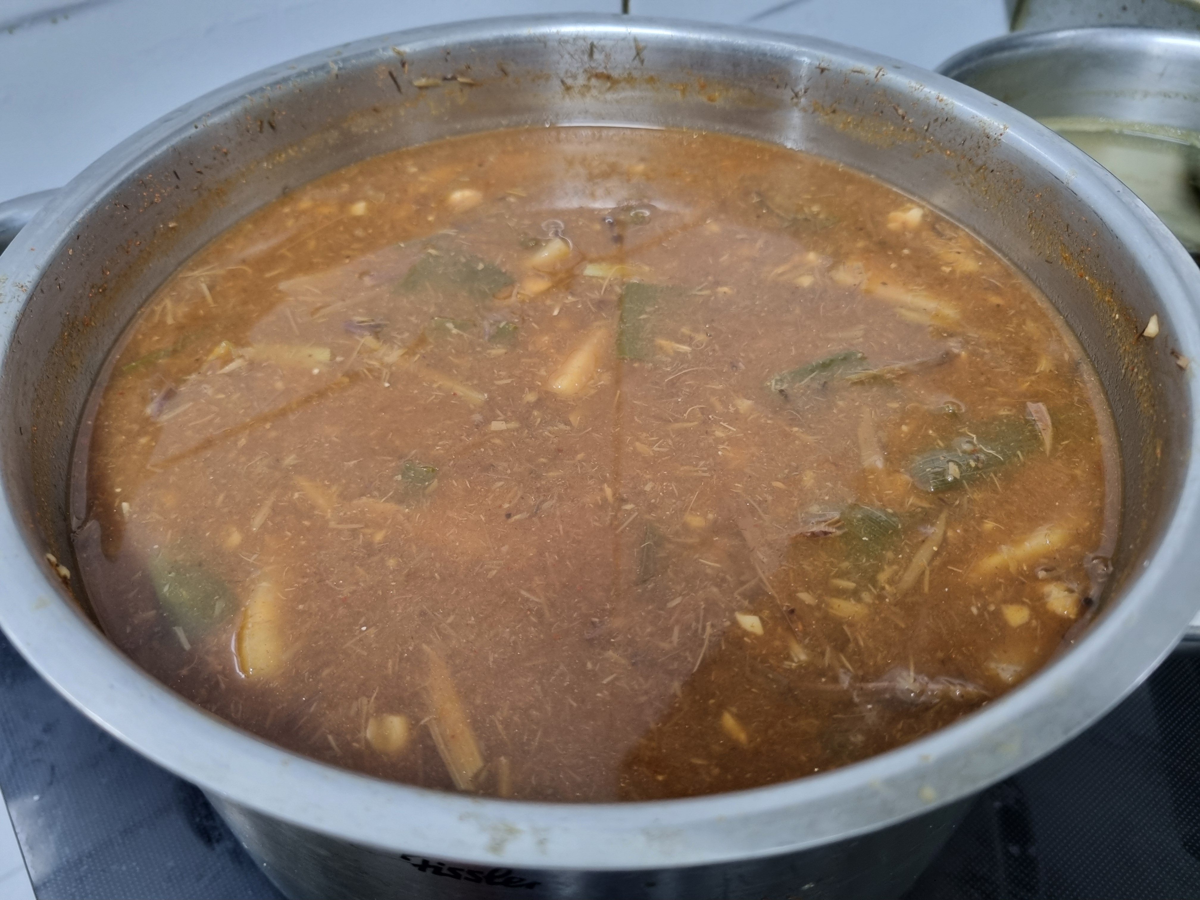 국간장. 미림. 분말 조미료. 고추장. 고춧가루. 청양고추 넣고 푹 끓였다