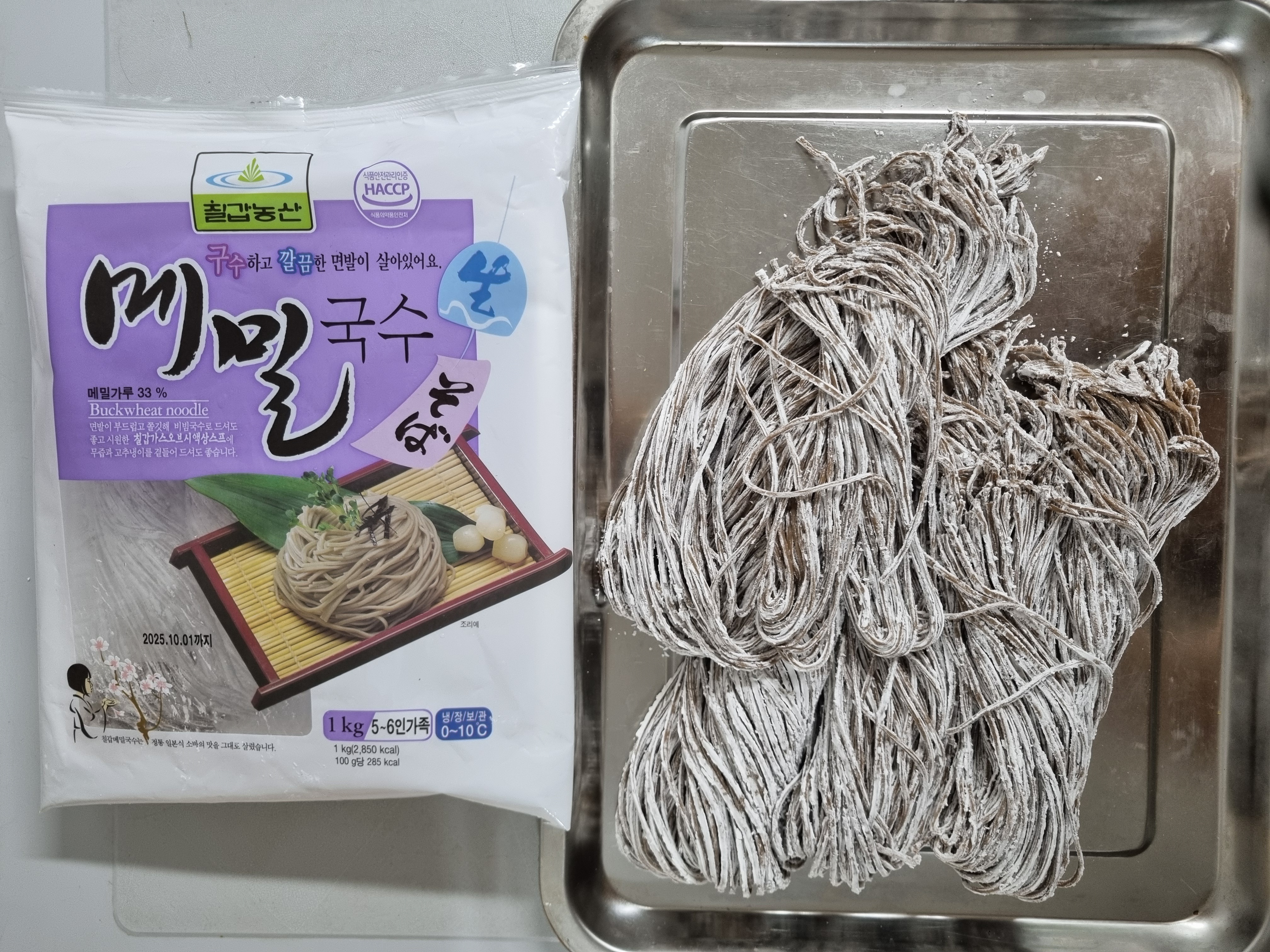 (하나로 마트에서 장 보던 중 메밀면을 사 오늘의 점심 메뉴는