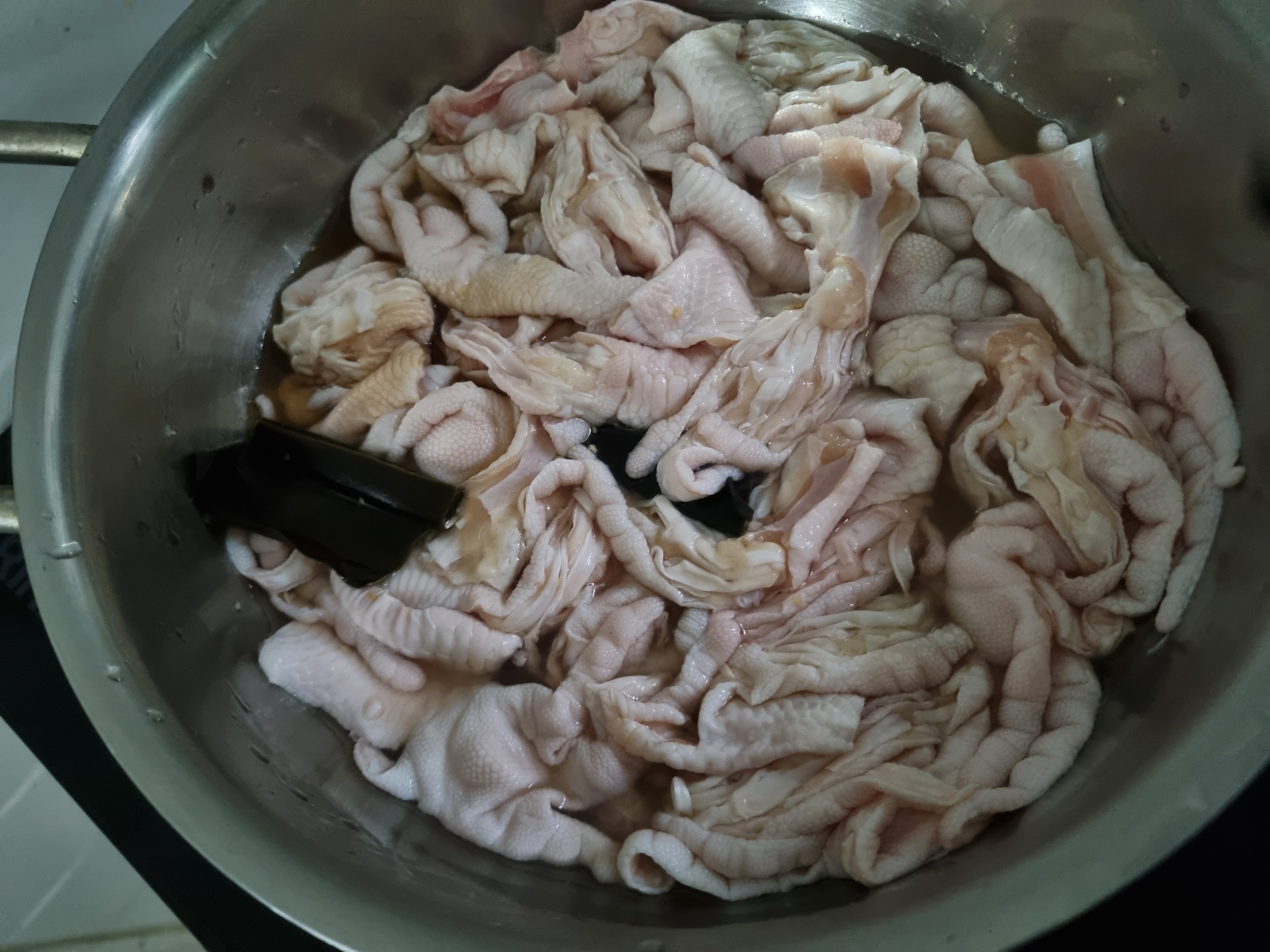 찬물에 헹궈 잡내 제거를 위해 다시마. 우스타소스. 생강. 액젓 소금 넣고 잠깐 끓여 물 따라내 버리고