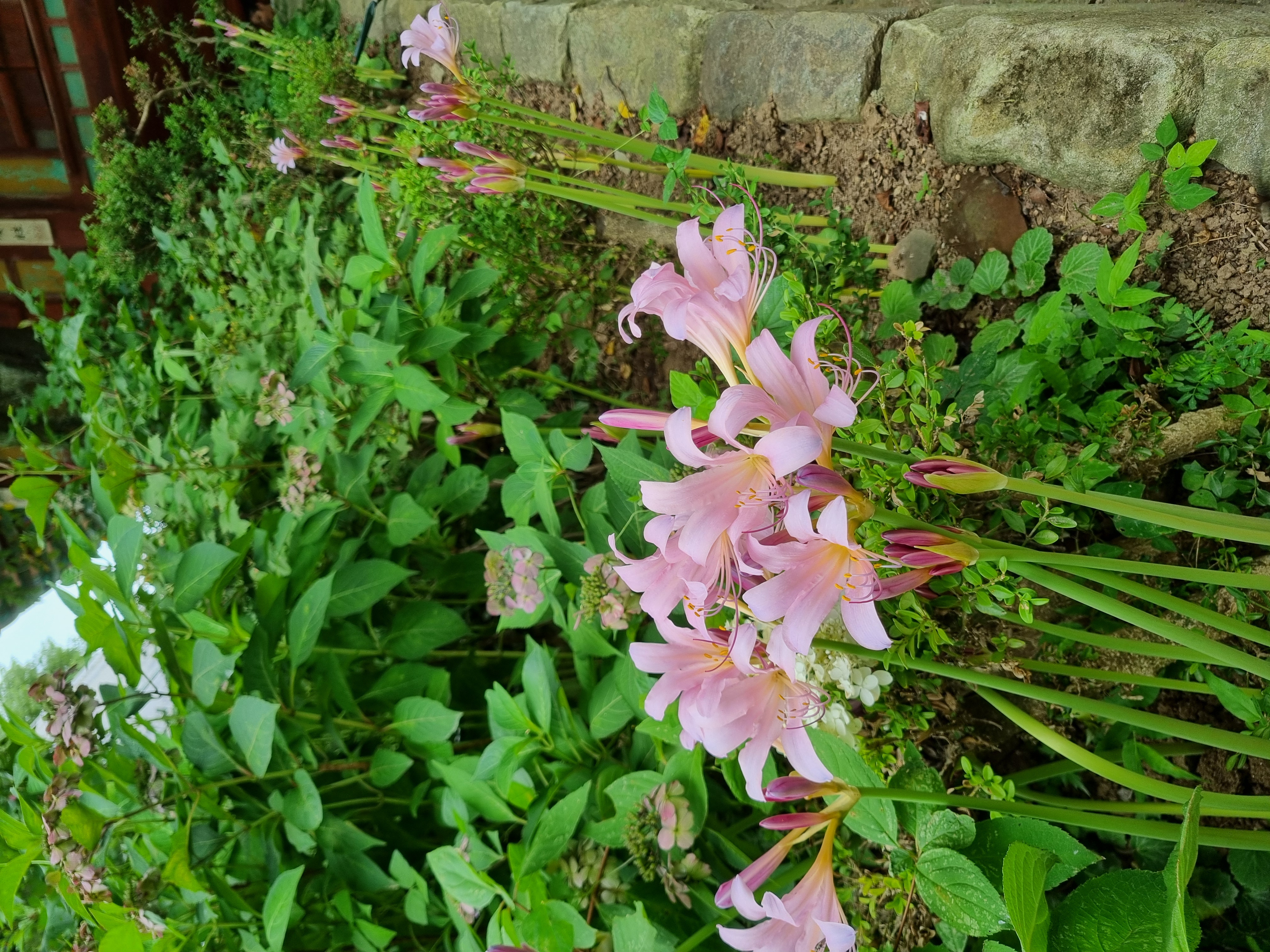 (초입에서 만난 꽃과 복숭아. 누리장나무가 줄지어있다)