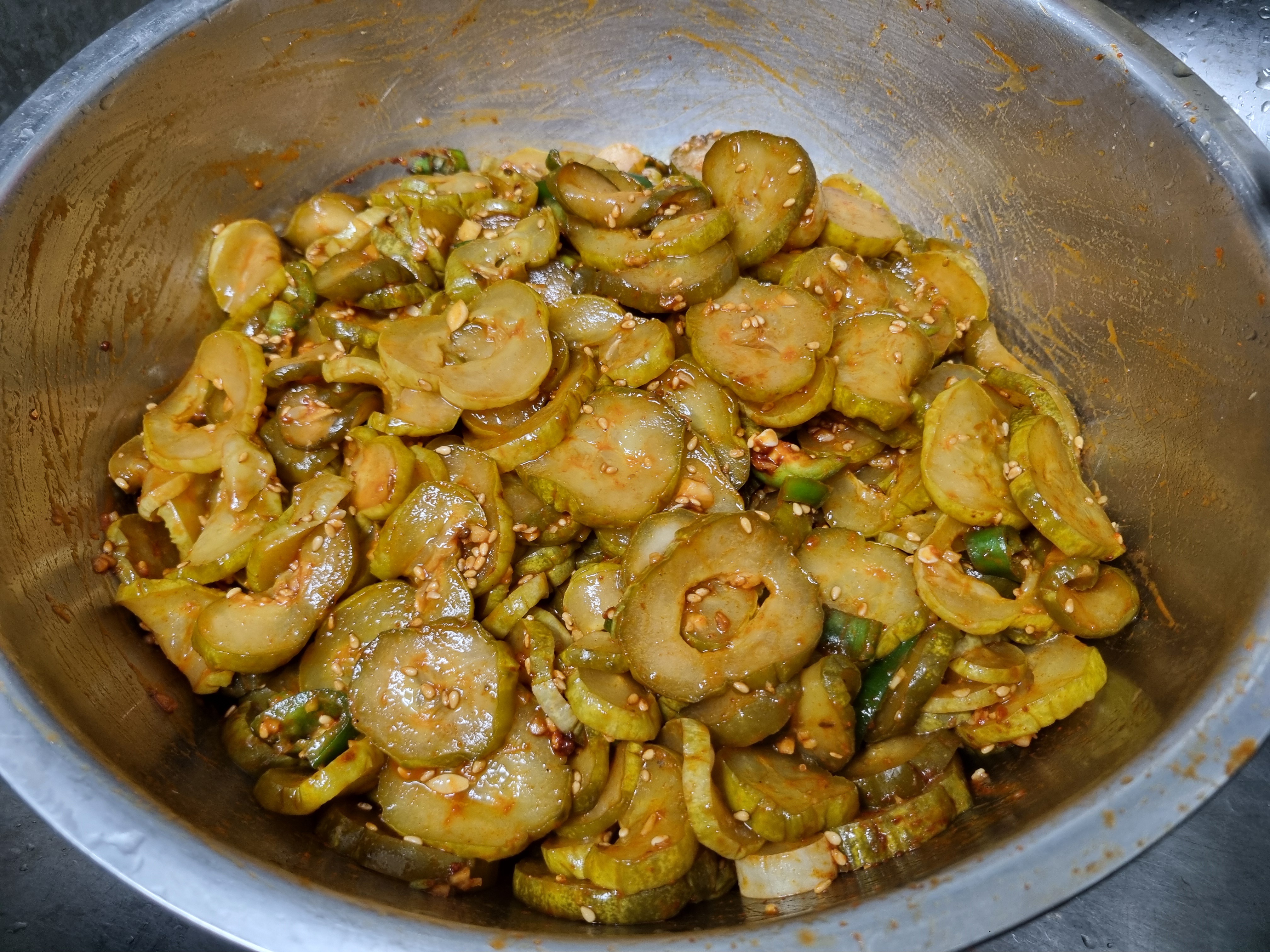 여름내 고온과 습도로 인해 간을 세게 담글 수밖에 없었던 오이지 여러 번 우려내 무쳐야 하니 맛이 영 시원치 않았다