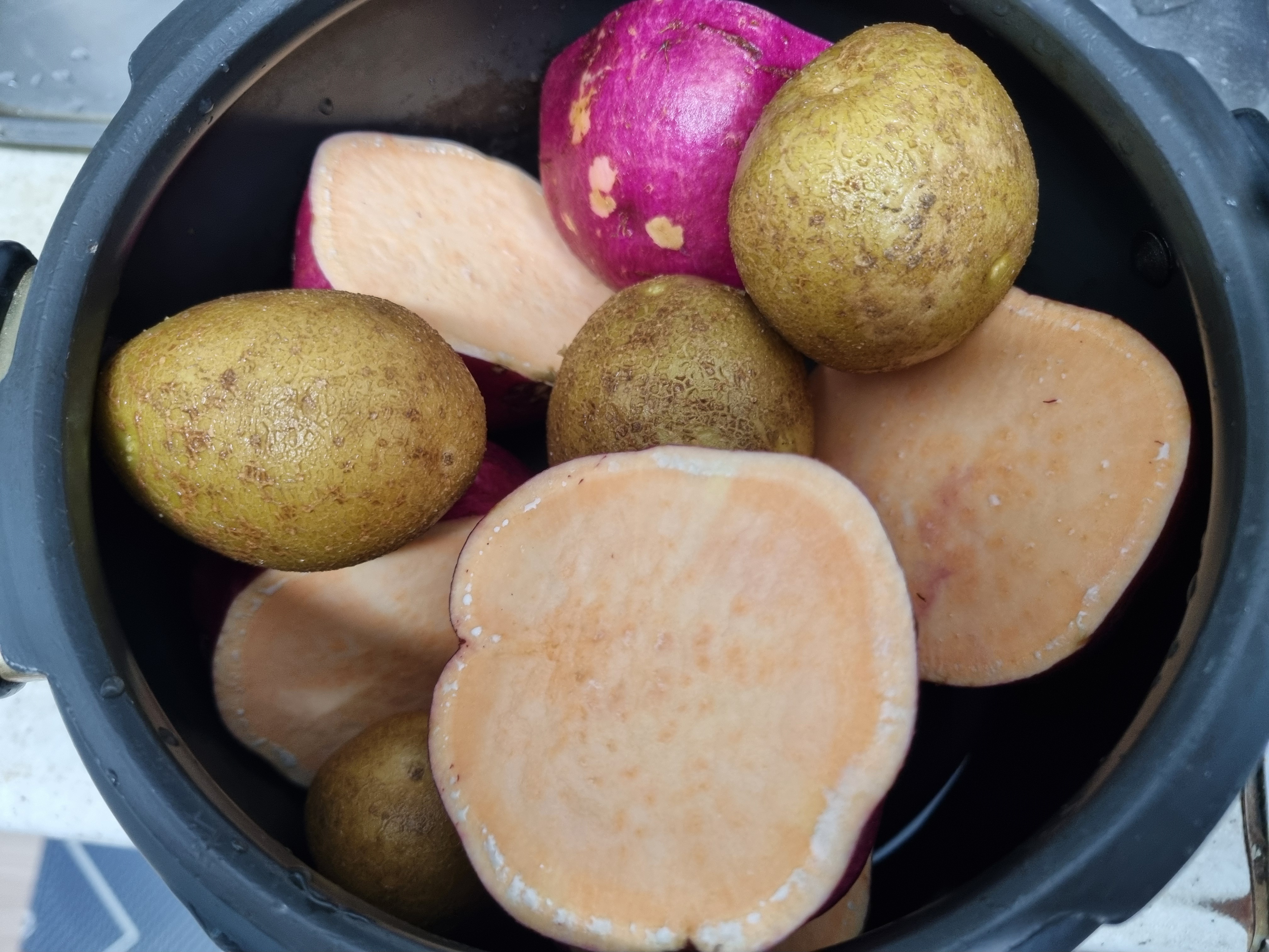 소고기 간 것 200g 찐 감자. 당근. 양파. 양배추. 쪽파 으깨고. 다졌다