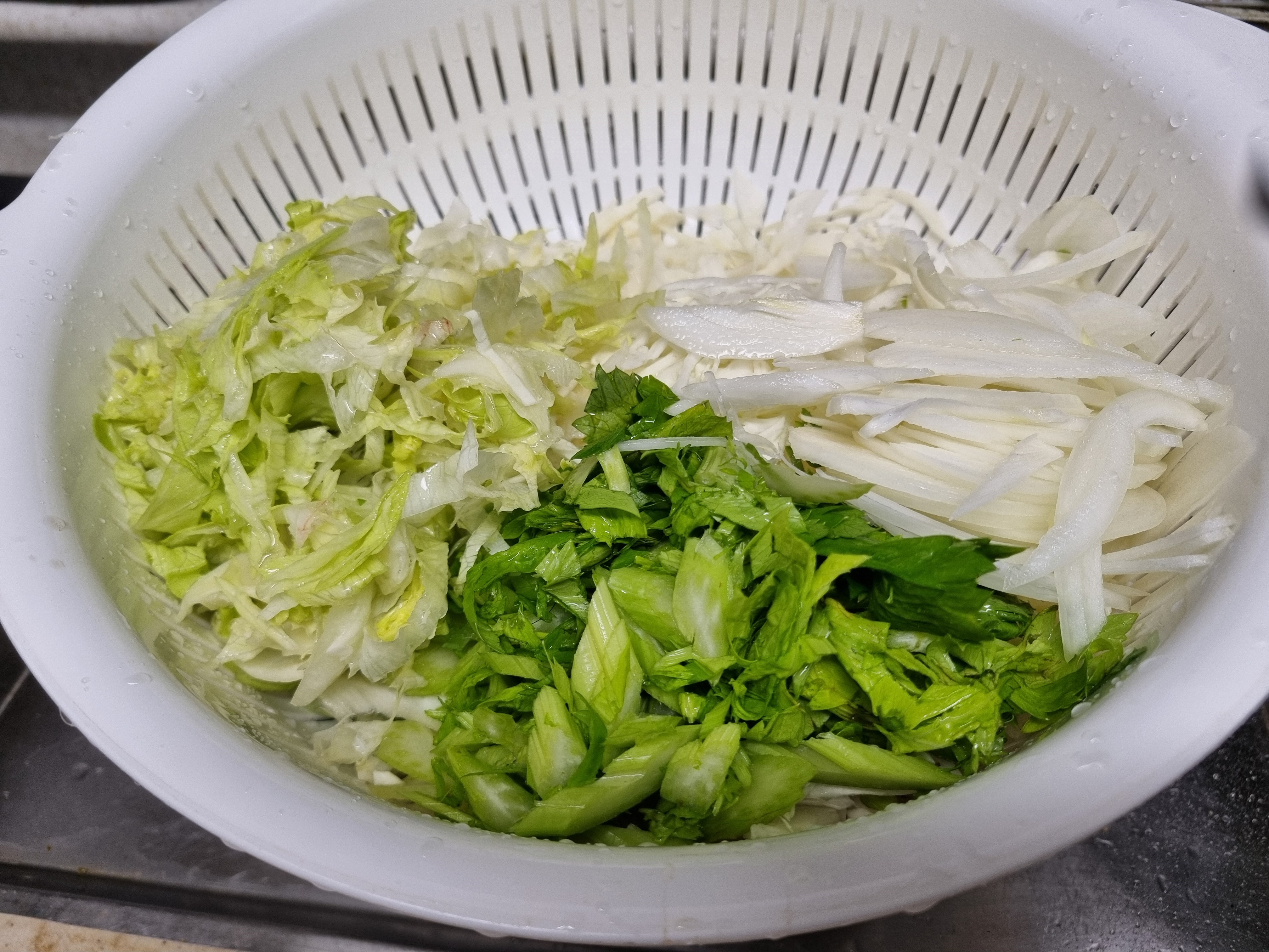 (양배추. 샐러리. 양파. 양상추를 최대한 곱게 썰어 물 담금