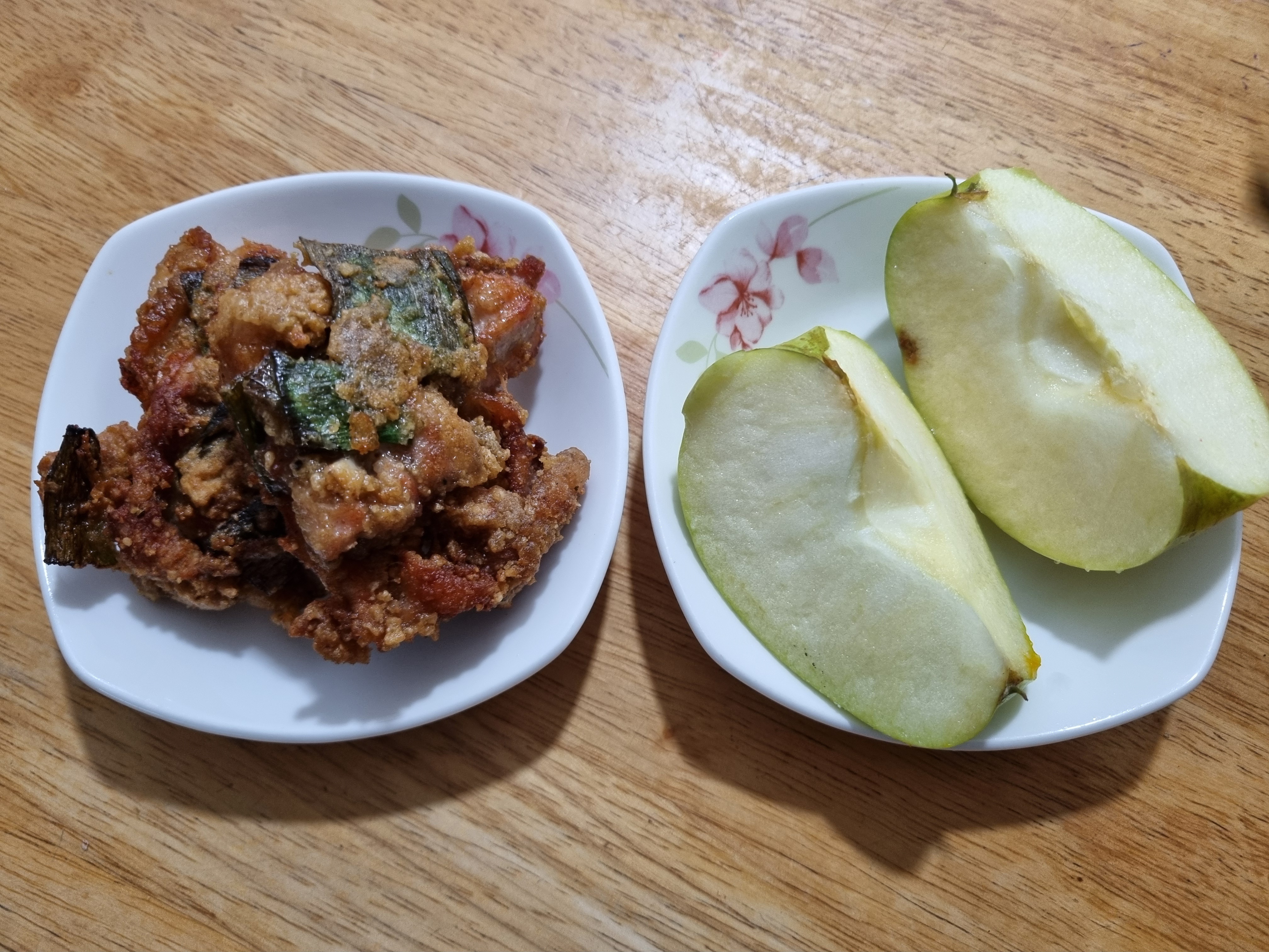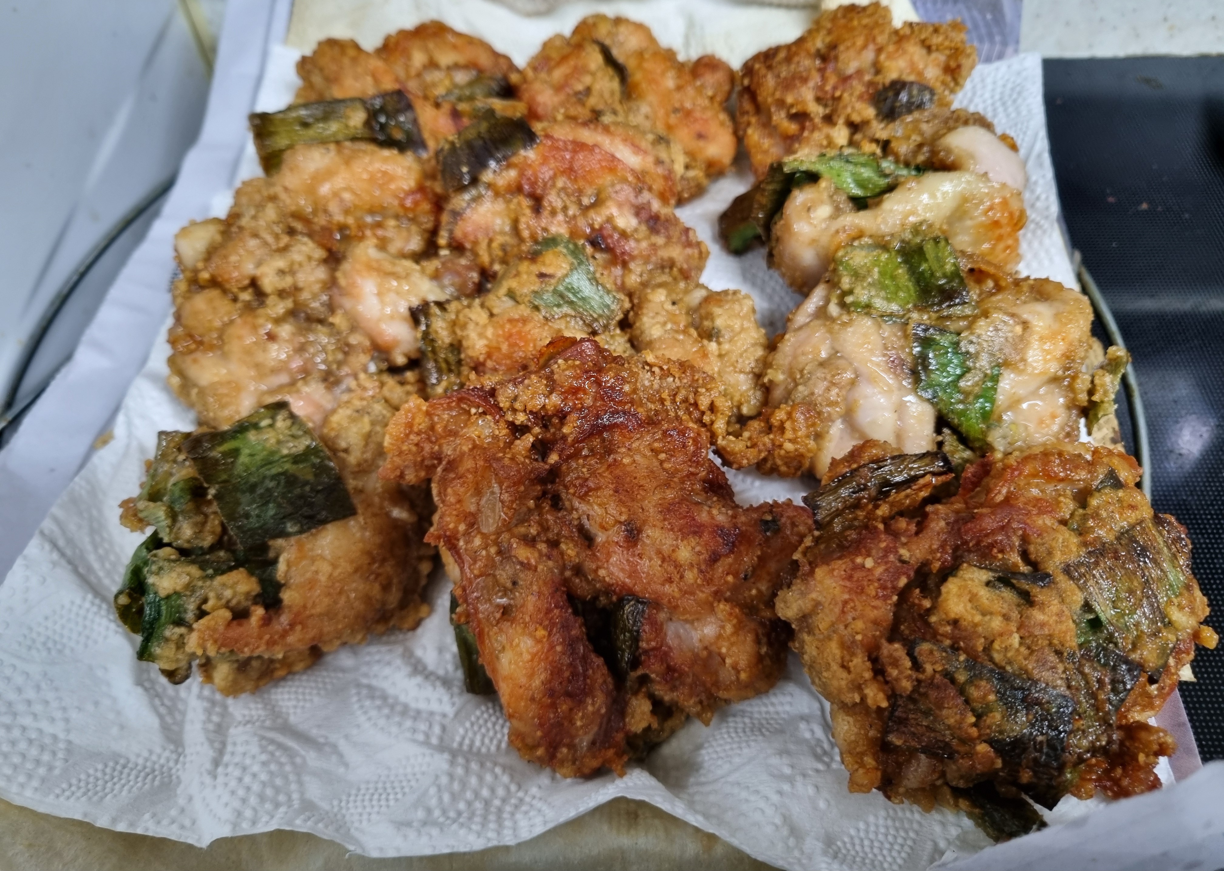 도토리 가루. 대파. 귀리 첨가 튀김옷을 만들면 좀 나을까